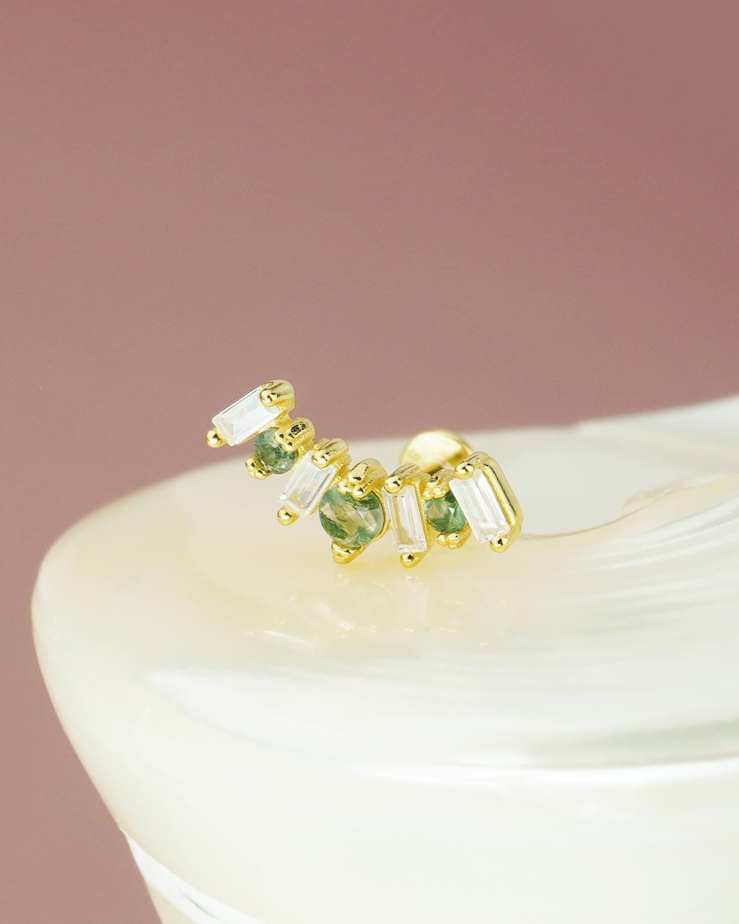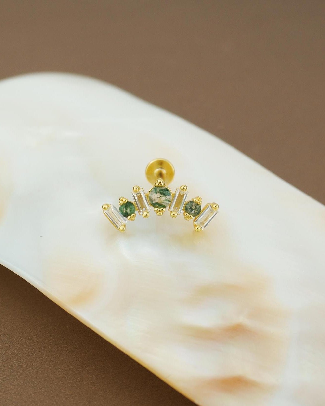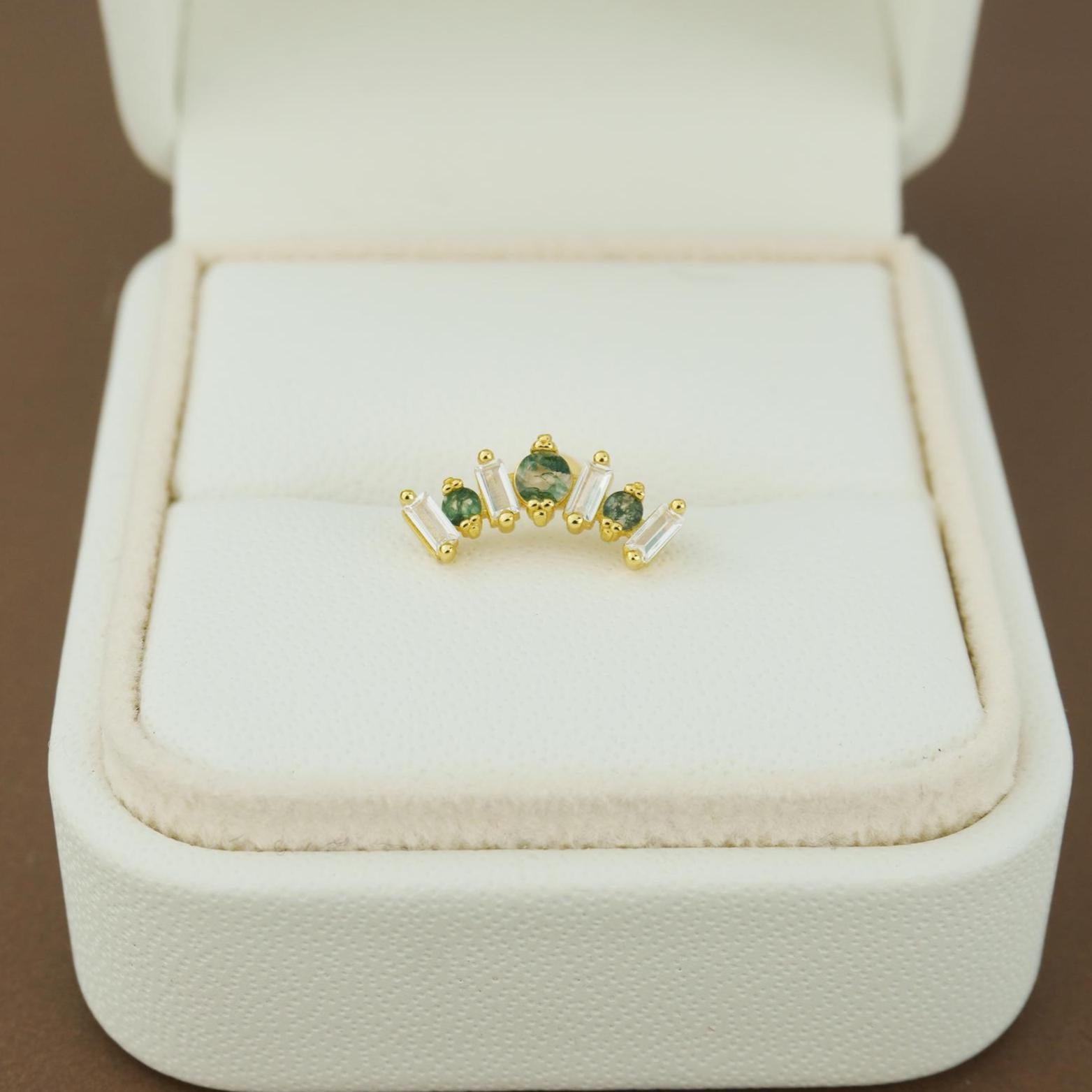 1 pc of Natural Green Moss Agate Crown Shape Flat Back Stud Earring in Gold Plated over Sterling Silver