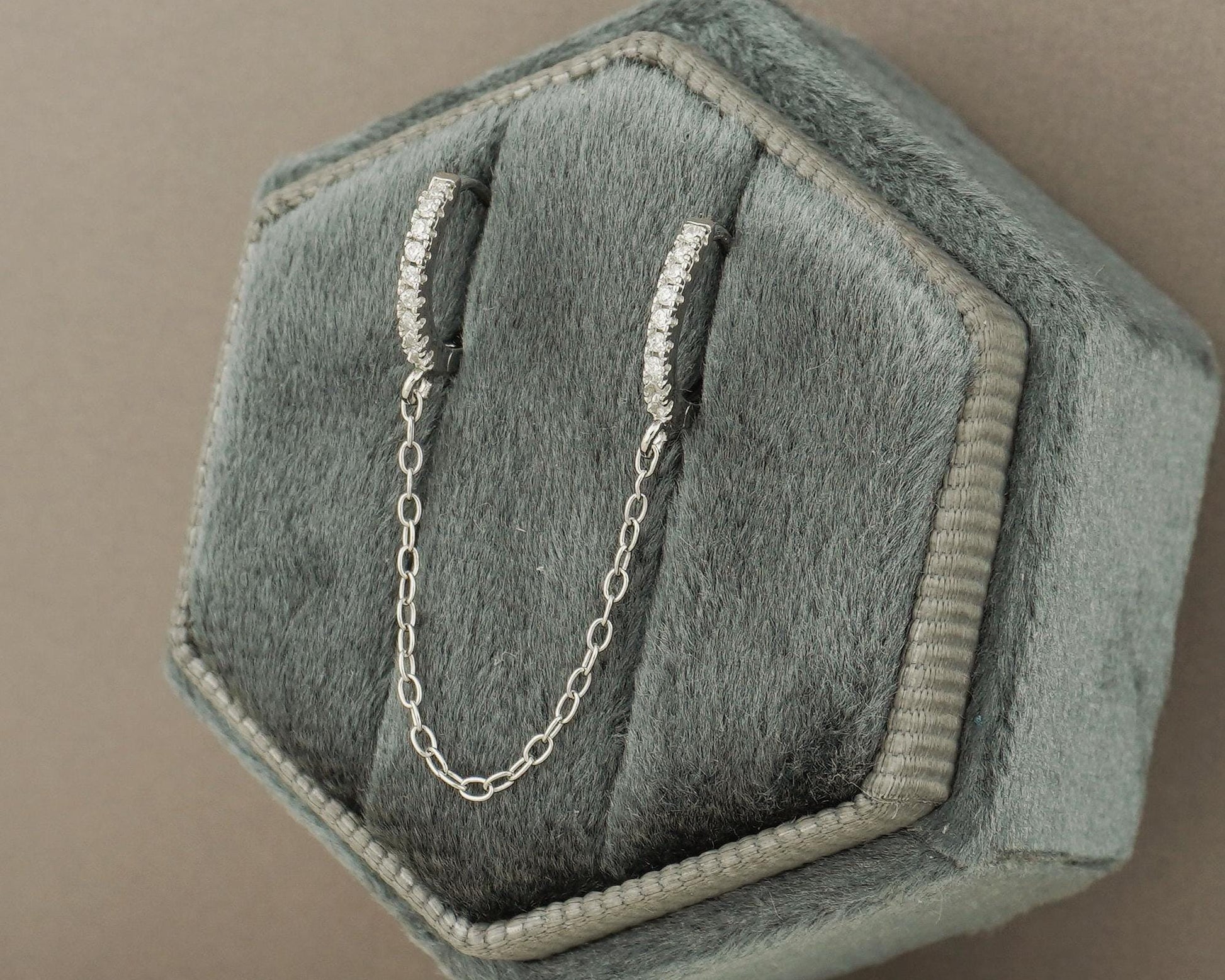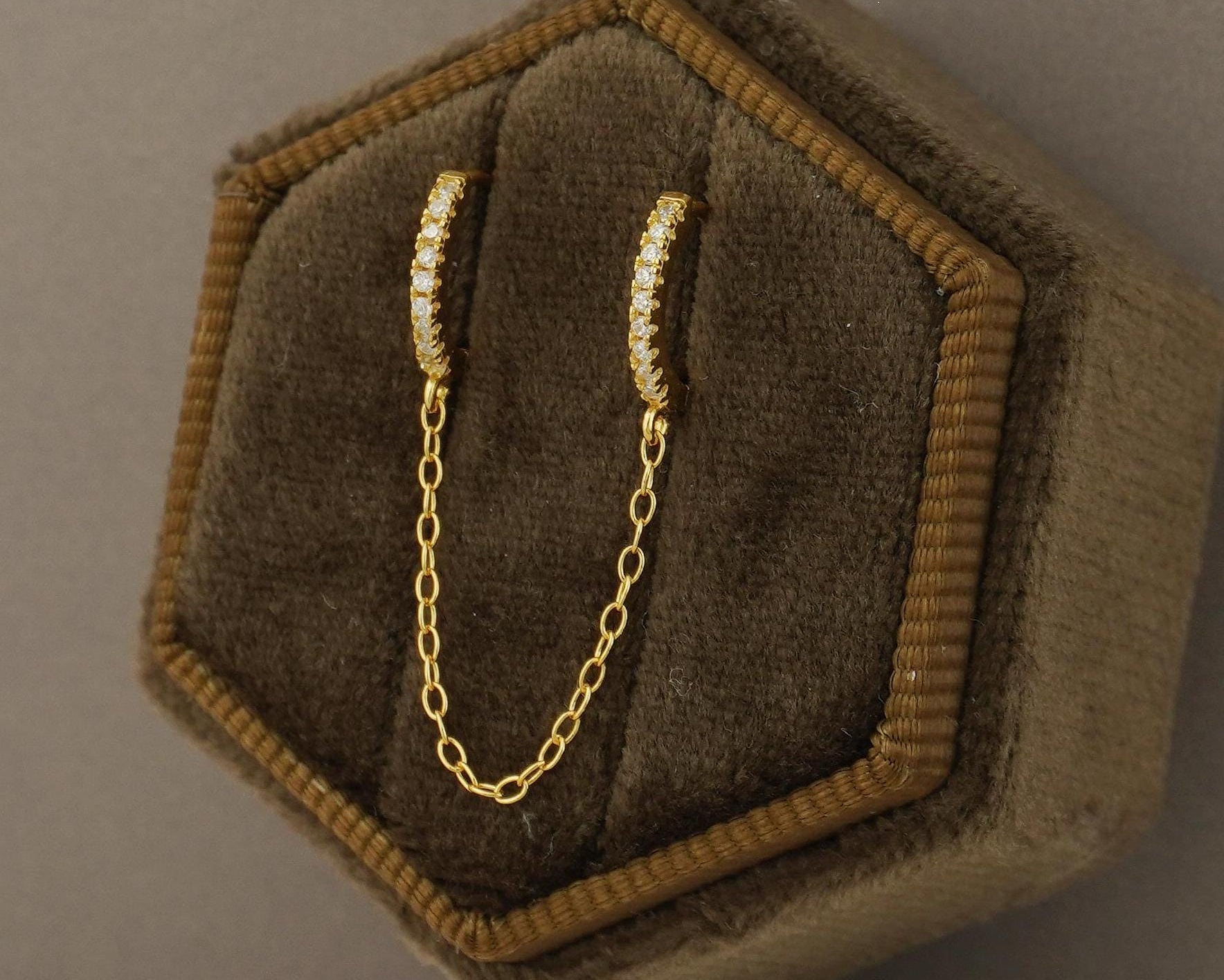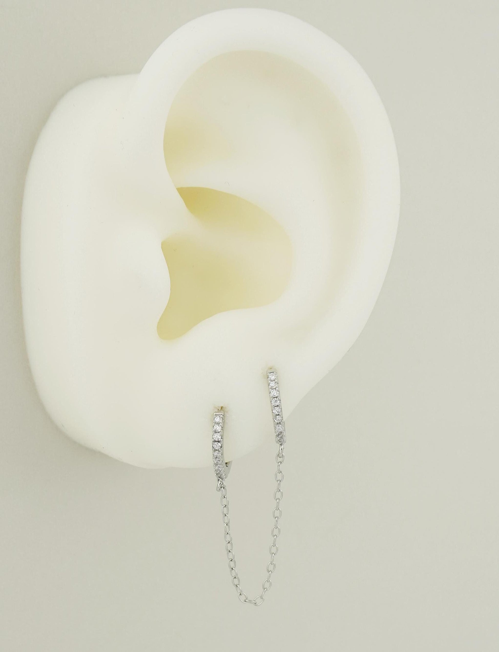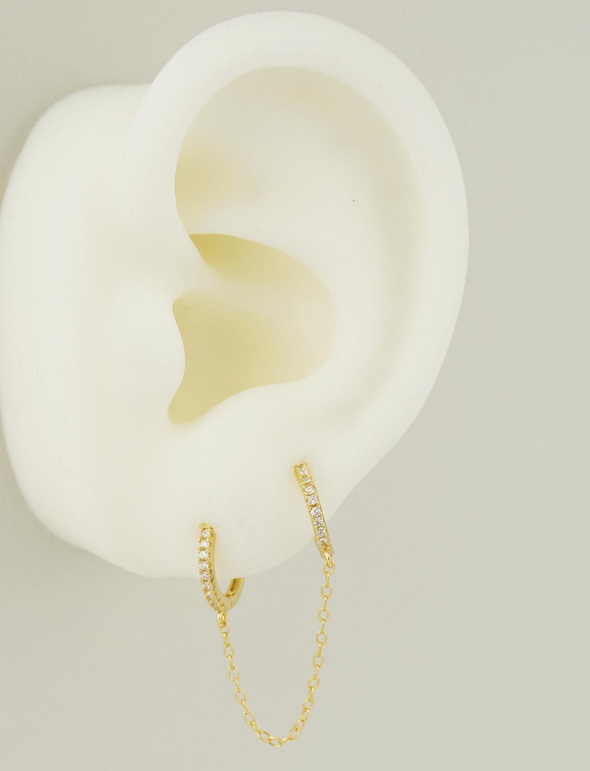 1 pc of Duo Hoop Earring with Dangly Link Chain in Sterling Silver or 18ct Gold Plated, Dainty CZ Crystal Paved Jewelry