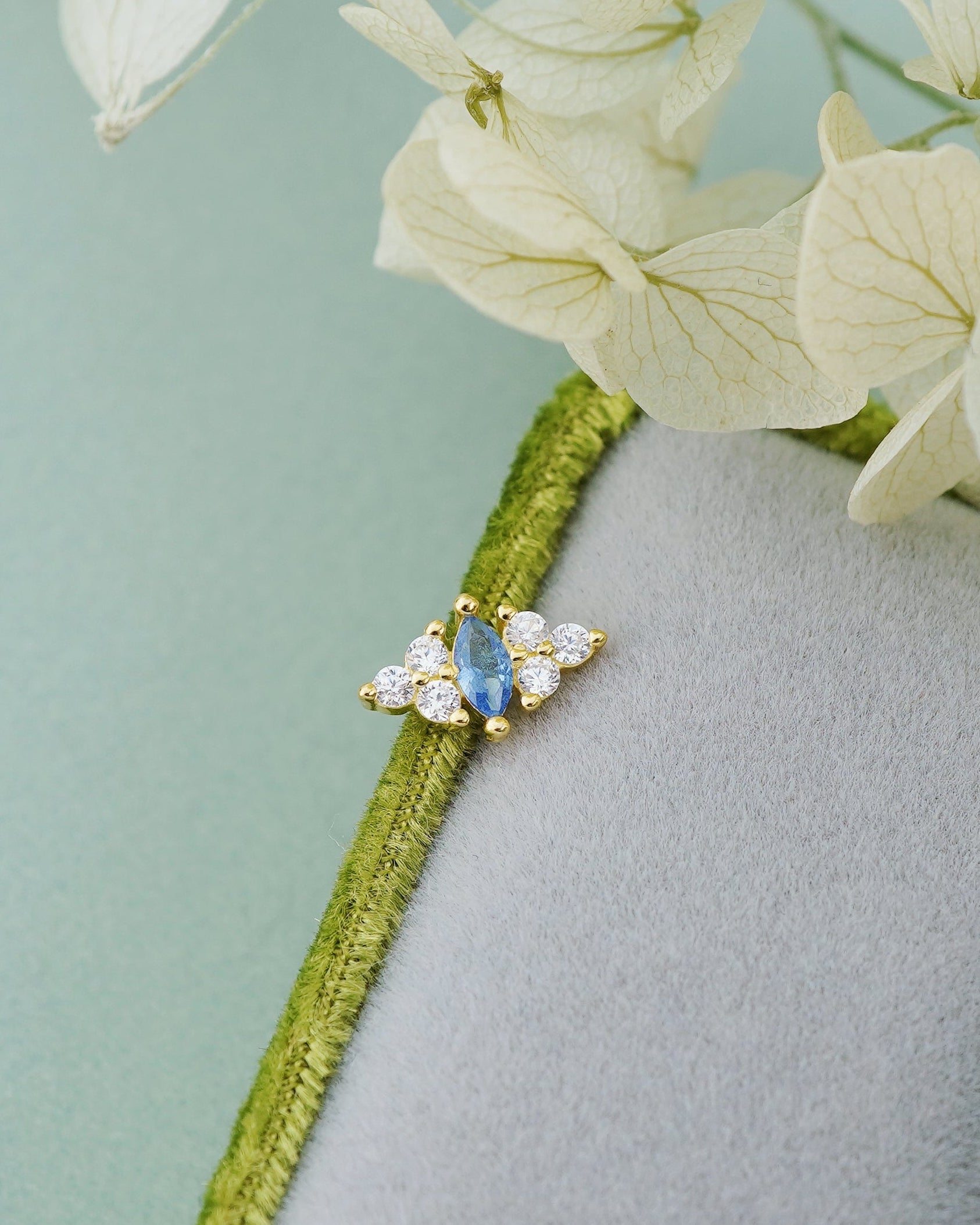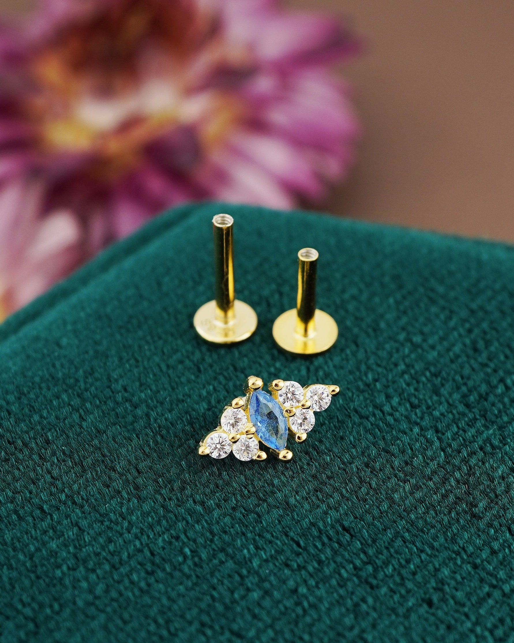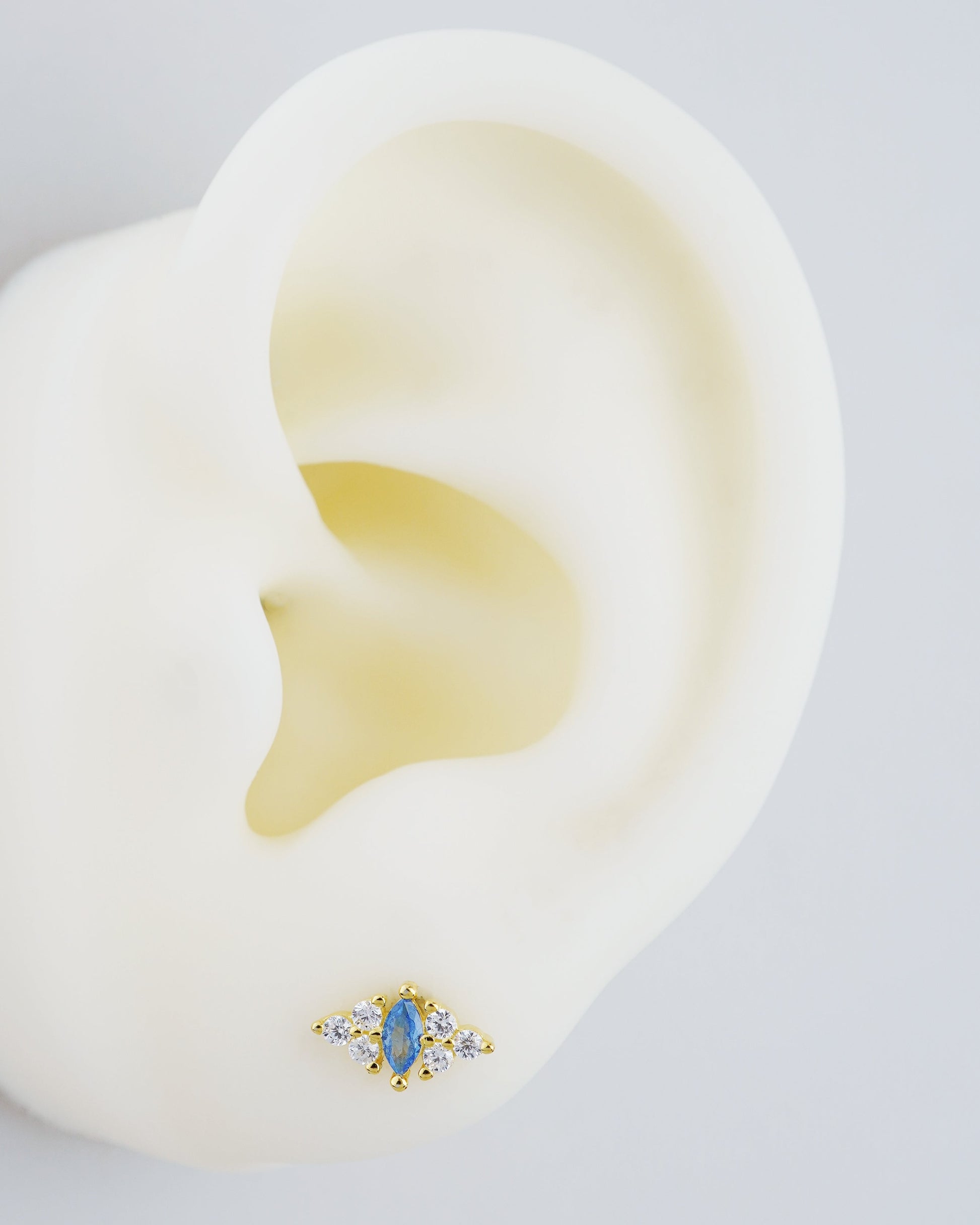 1 pc of Blue Marquise CZ Sterling Silver Stud Earring in 18ct Gold Plated, Lobe Tragus Cartilage Piercing Jewelry