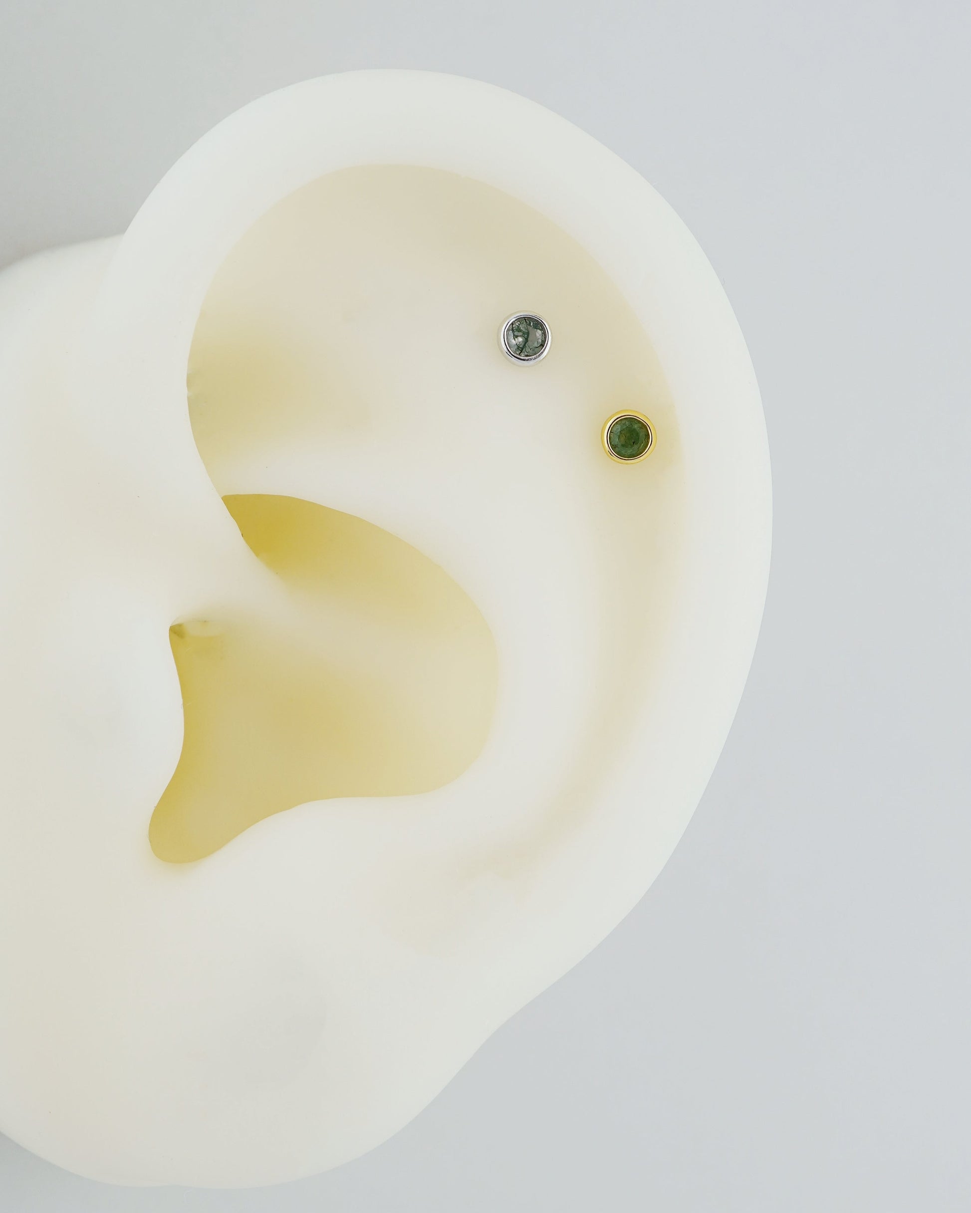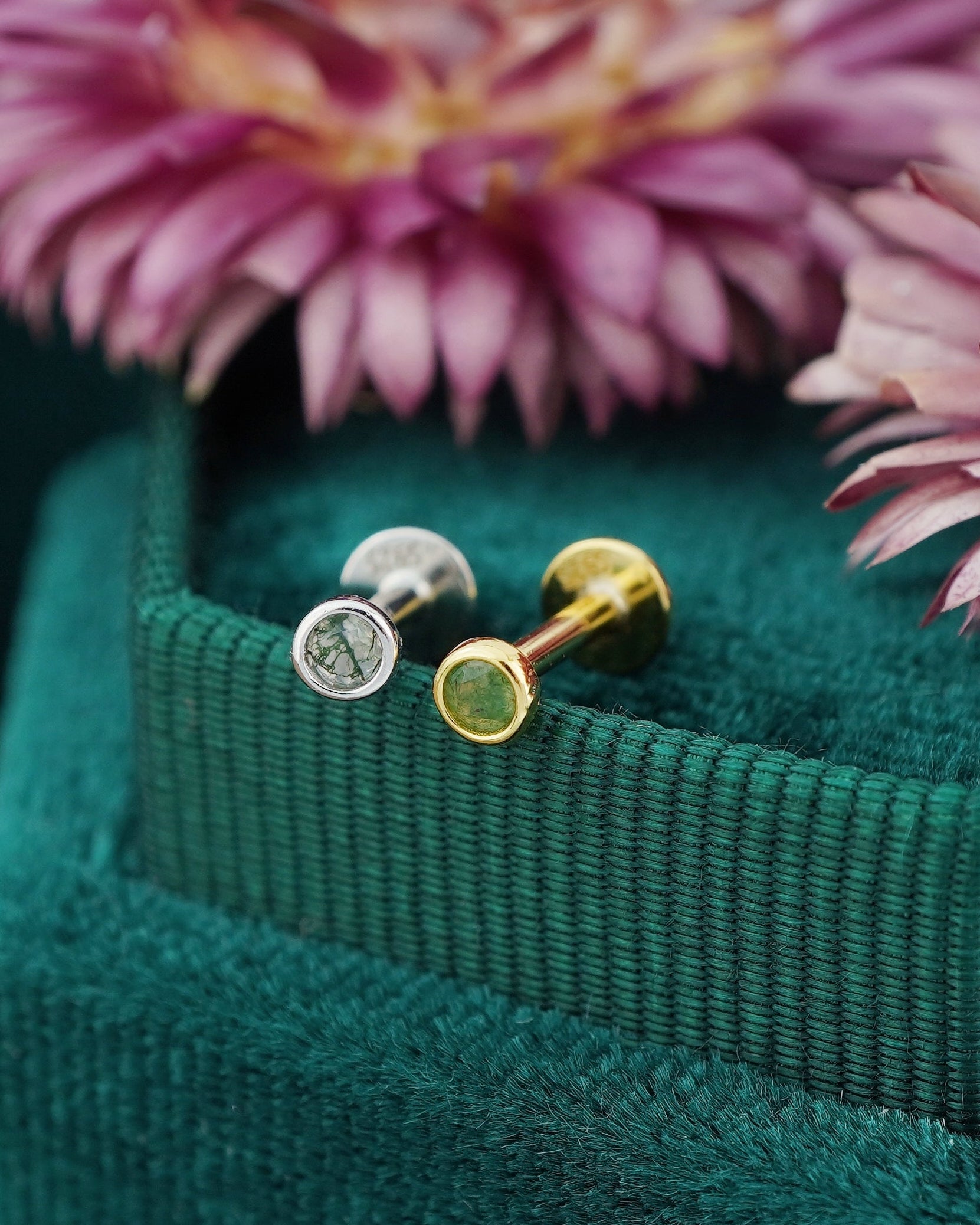 1 pc of VERY TINY 3mm Bezel Natural Green Moss Agate Sterling Silver Stud Earring in Rhodium or 18ct Gold Plated, Cartilage Helix Lobe Piercing