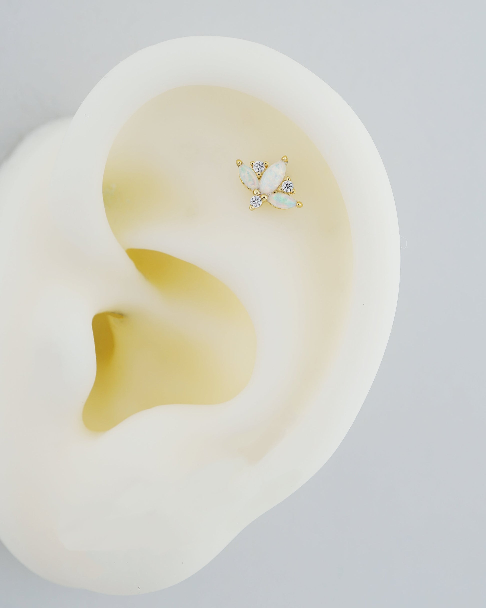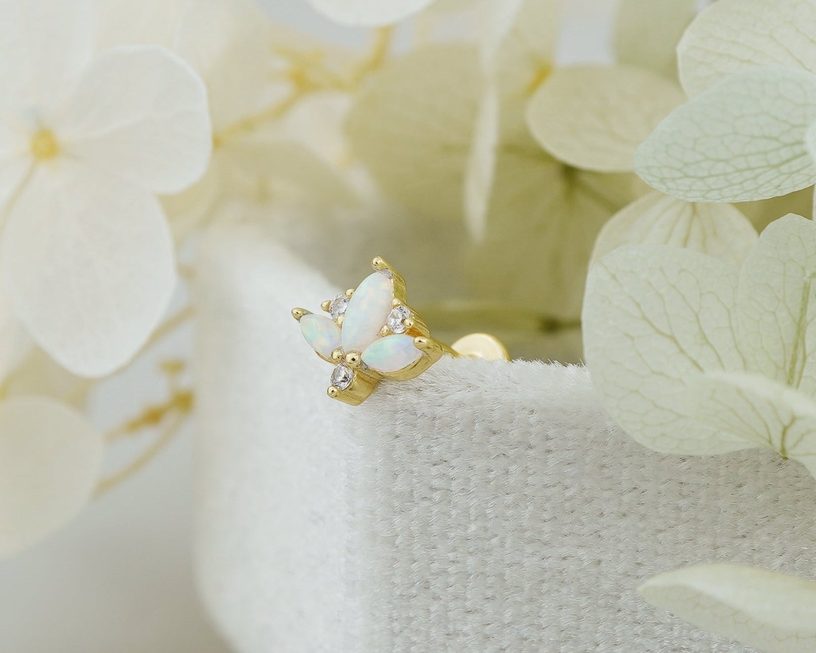 1 pc of Marquise Fire Opal & CZ Sterling Silver Stud Earring in 18ct Gold Plated, 16G 6mm or 8mm Post