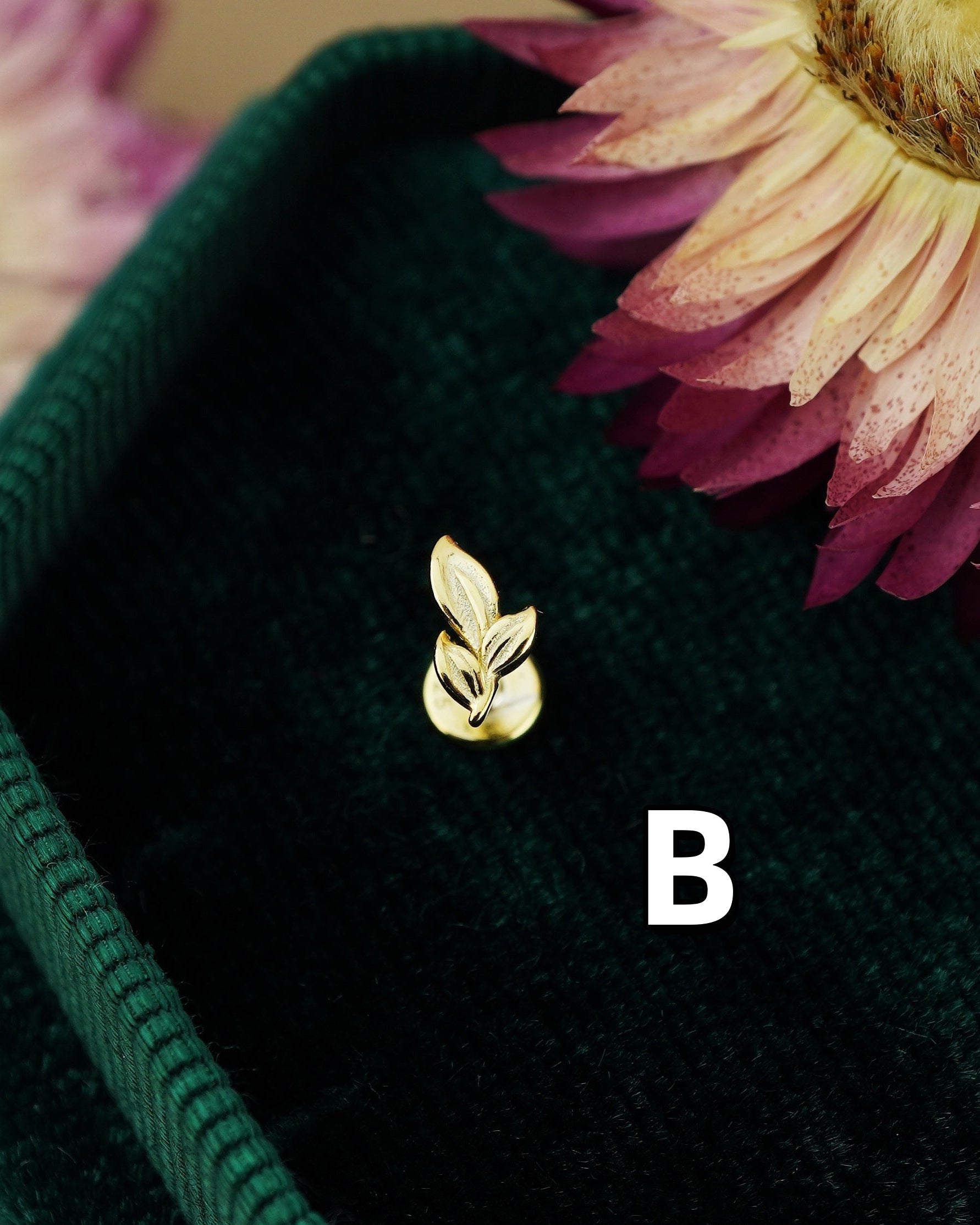 1 pc of Sterling Silver Leaf Stud Earring in 18ct Gold Plated, Tiny Delicate Nature Inspired Earlobe Cartilage Tragus Piercing Jewelry