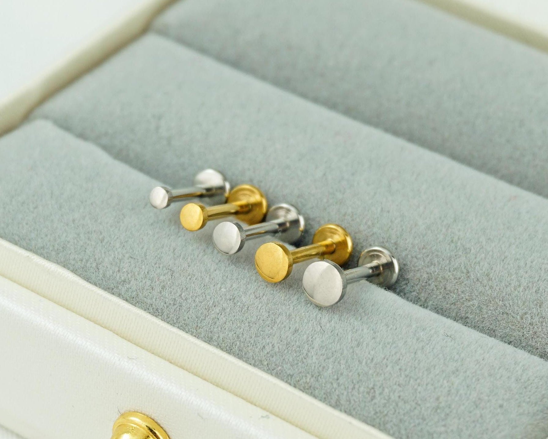 1 pc of Tiny Stainless Steel Round Disc Stud Earring in Steel or Golden Finish, Simple Geometric Push Pin Piercing, 5 Sizes