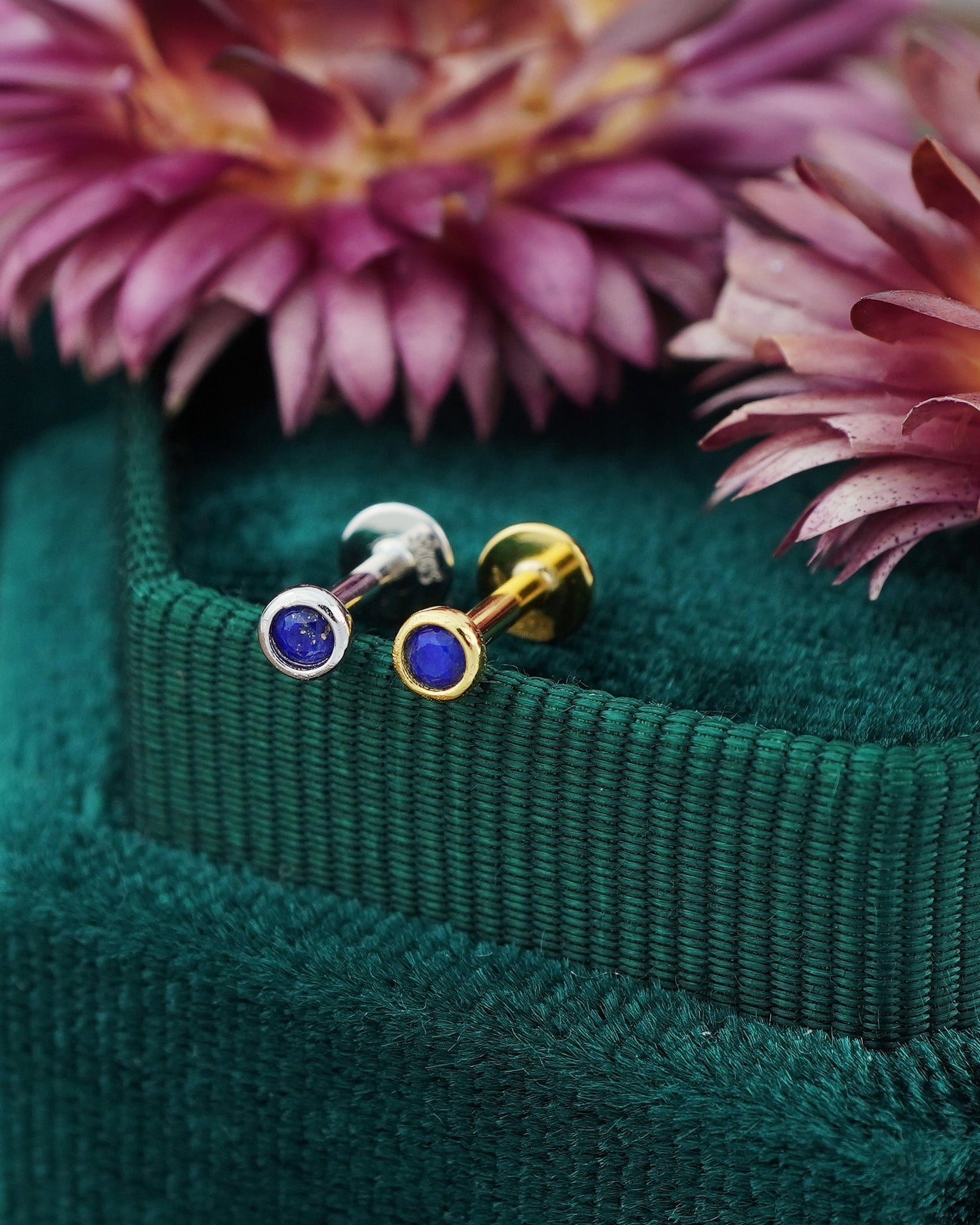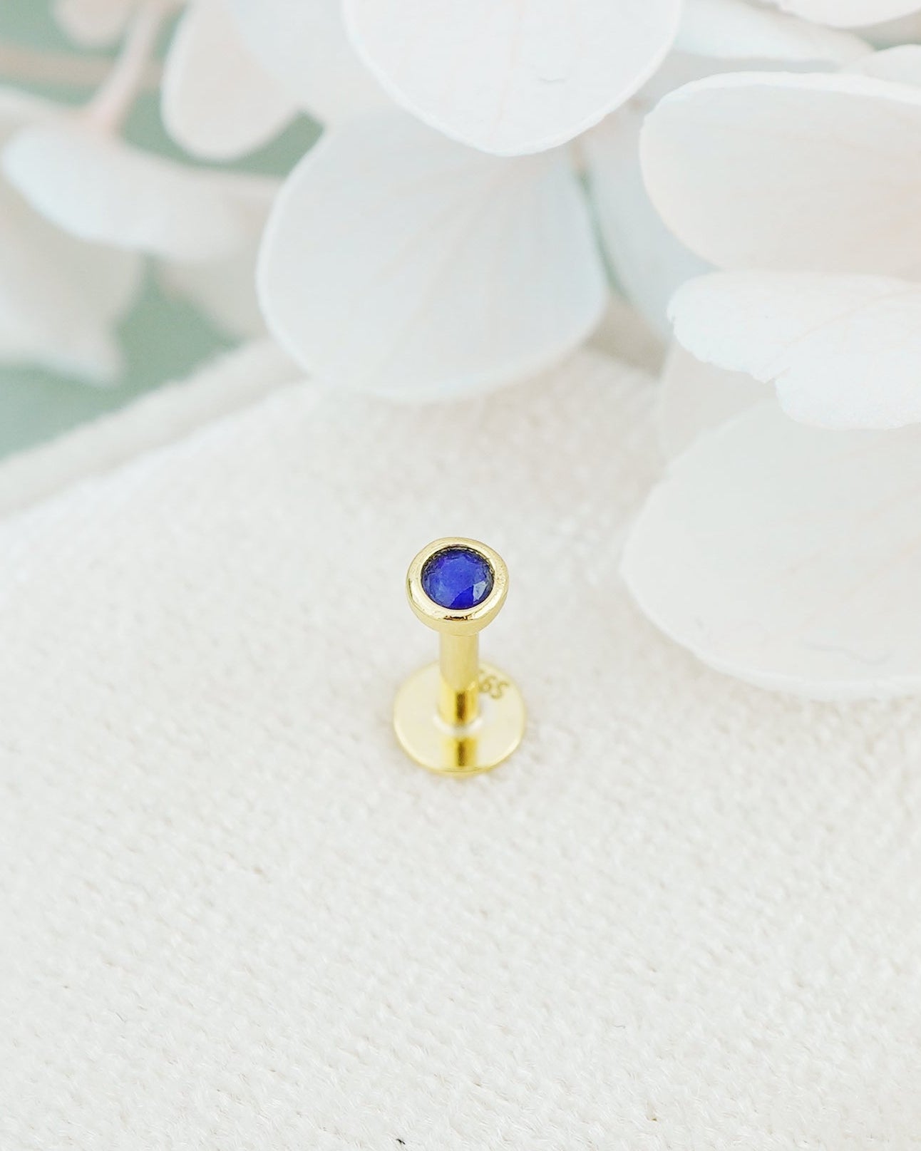 1 pc of VERY TINY 3mm Bezel Natural Lapis Lazuli Sterling Silver Stud Earring in Rhodium or 18ct Gold Plated, Cartilage Helix Lobe Piercing