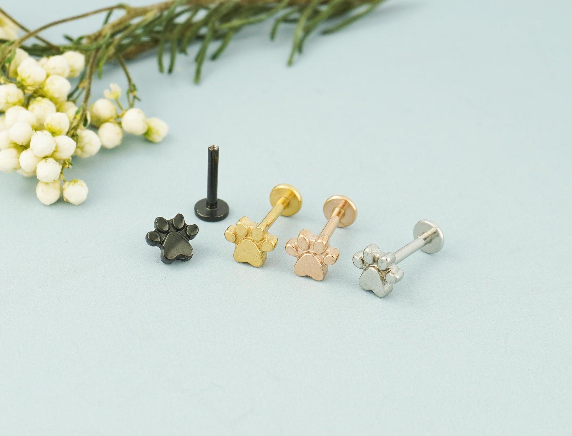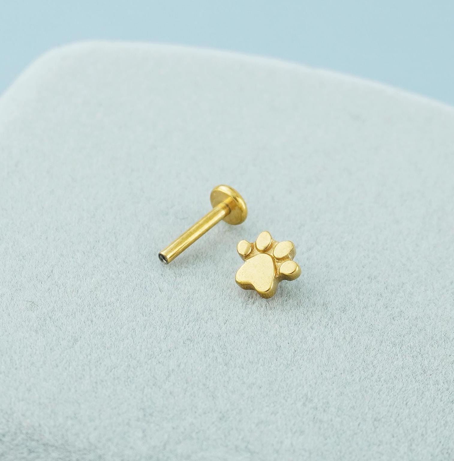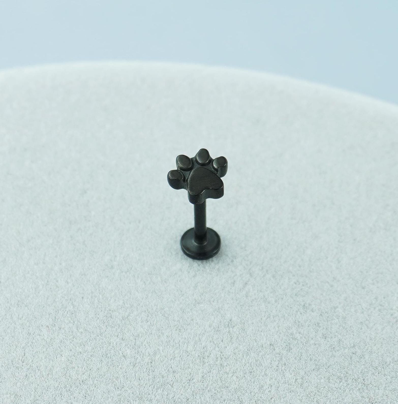 1 pc of Paw Print Stainless Steel Flat Screw Back Stud Earring in Steel, Gold, Black or Rose Gold, 16Gauge 6mm/8mm Post