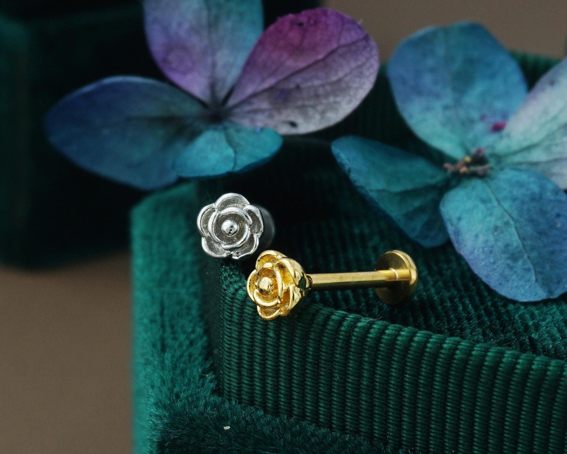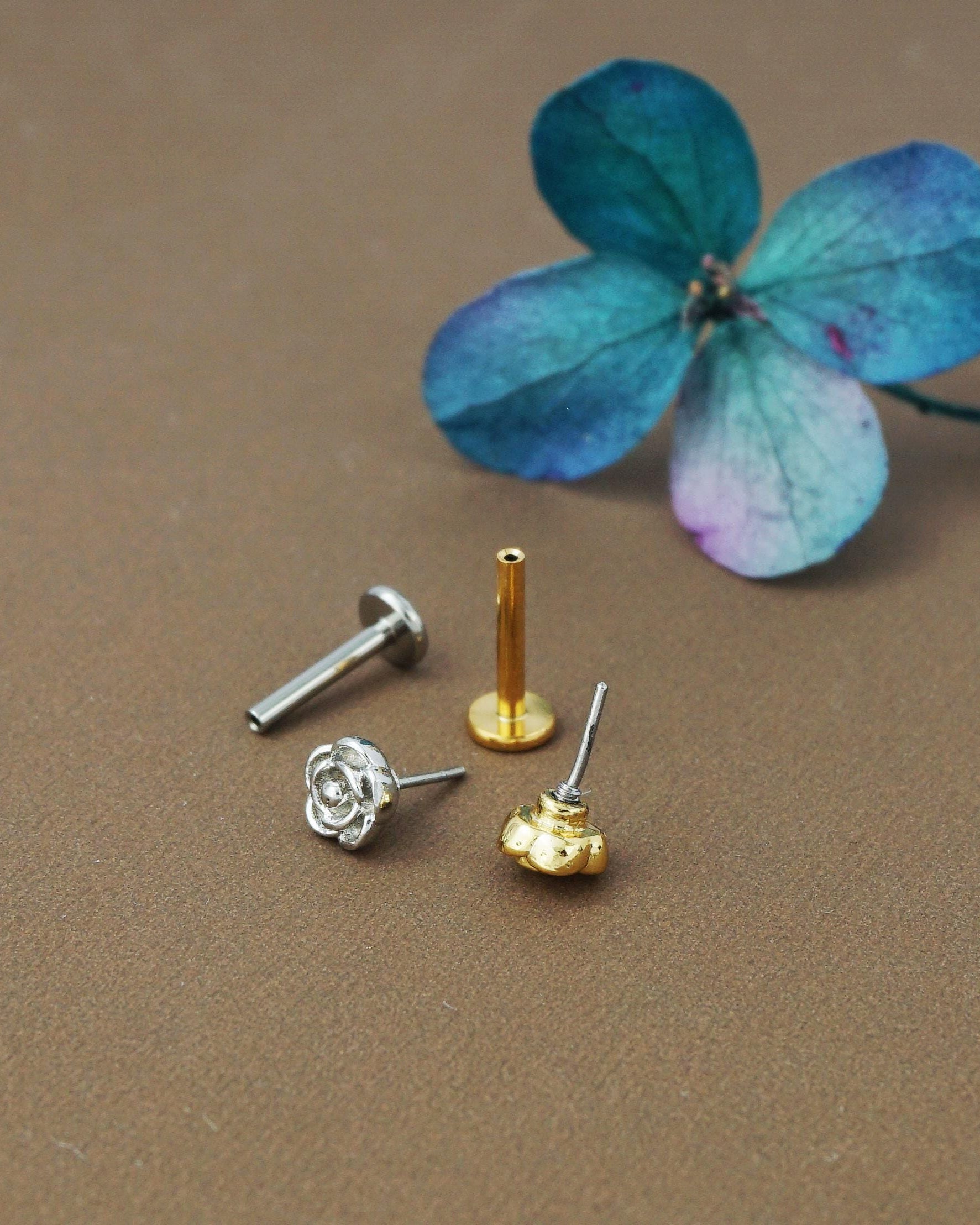 1 pc of Push Pin Flat Back Romantic Rose Floral Blossom Stud Earring in Stainless Steel or Golden Finish