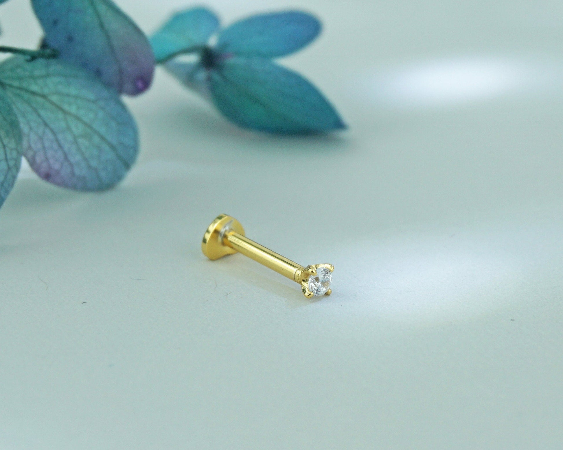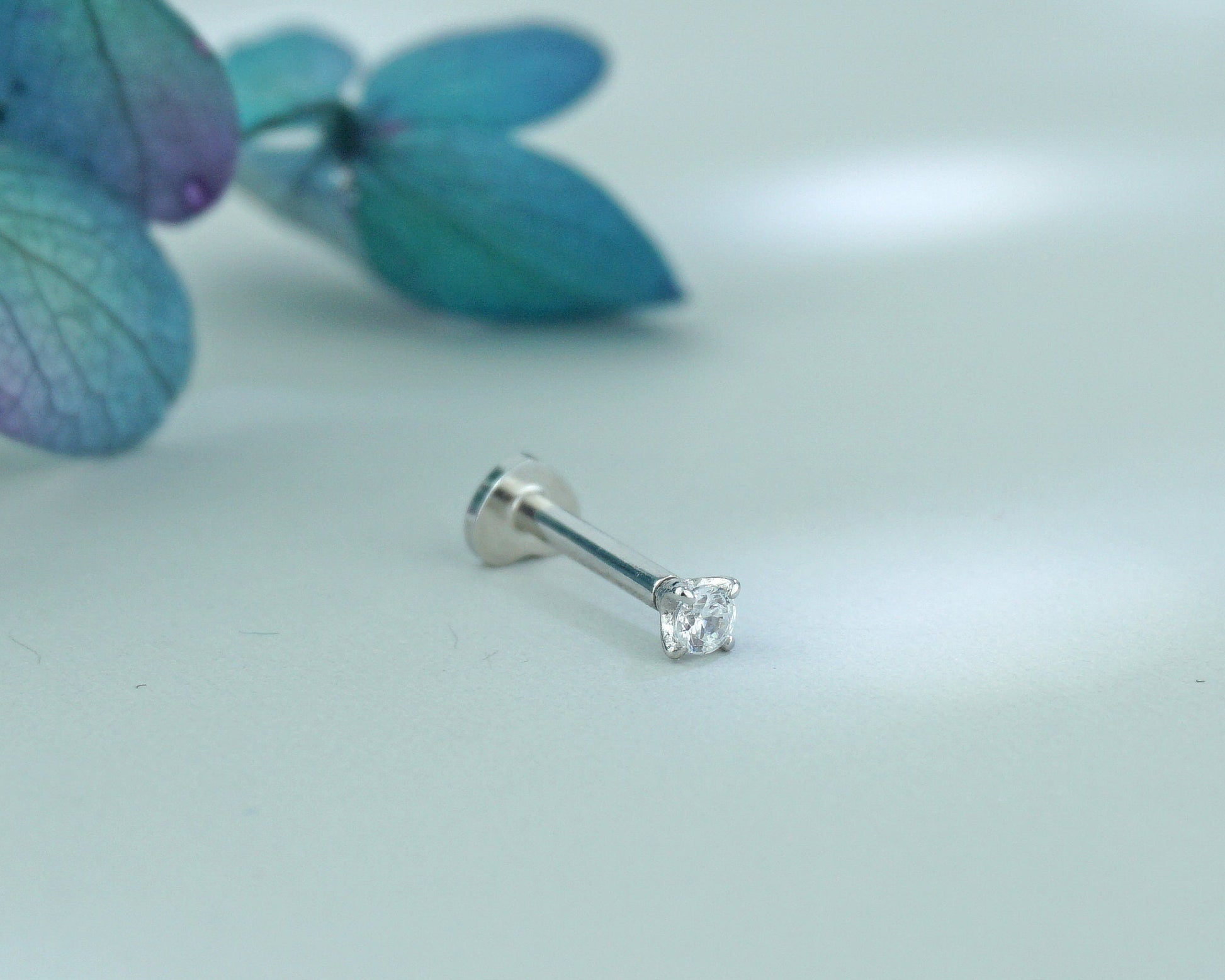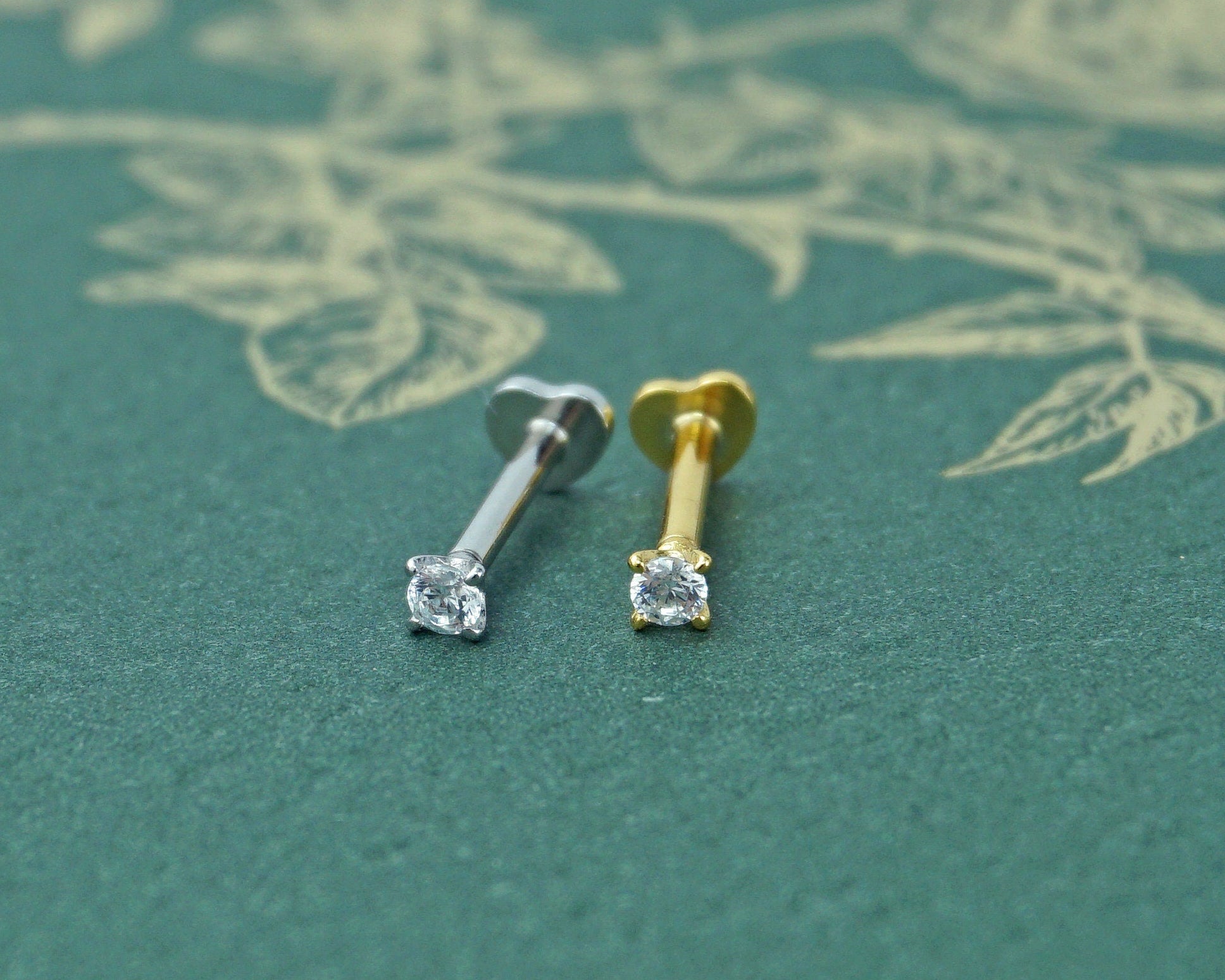 1 pc of Tiny 2mm CZ Crystal Dot Stud Earring with Heart Shape Flat Back in Sterling Silver or Plated Gold