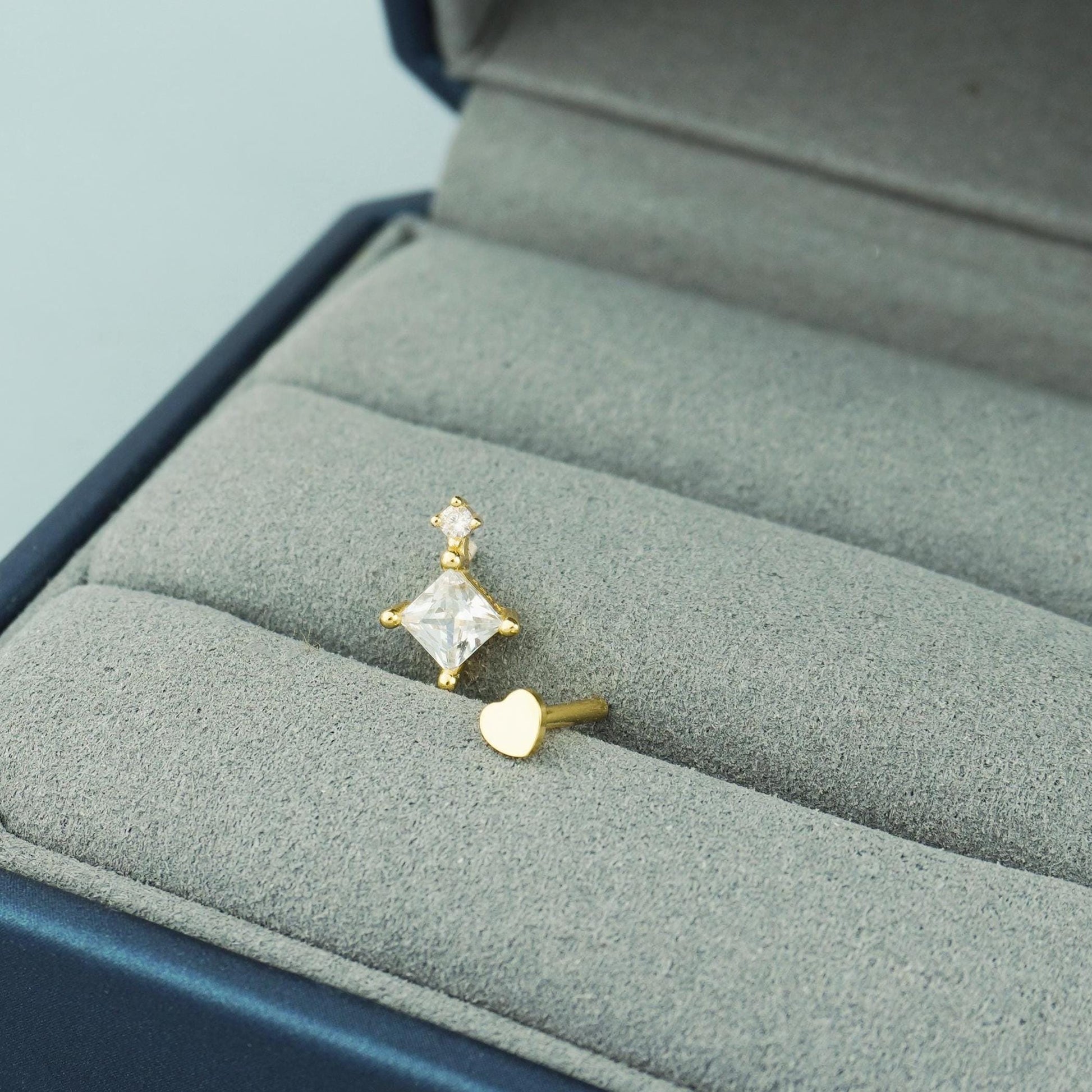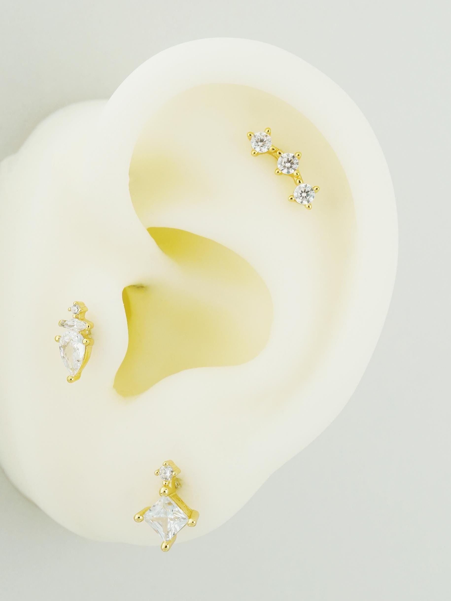 1 pc of CZ Stud Earring in 18k Gold Plated over Sterling Silver, Mini Trio Star/ Princess Cut/ Pear Cut Tragus Cartilage Labret
