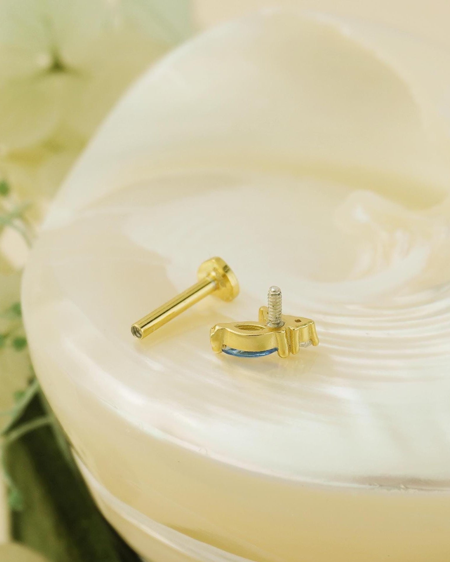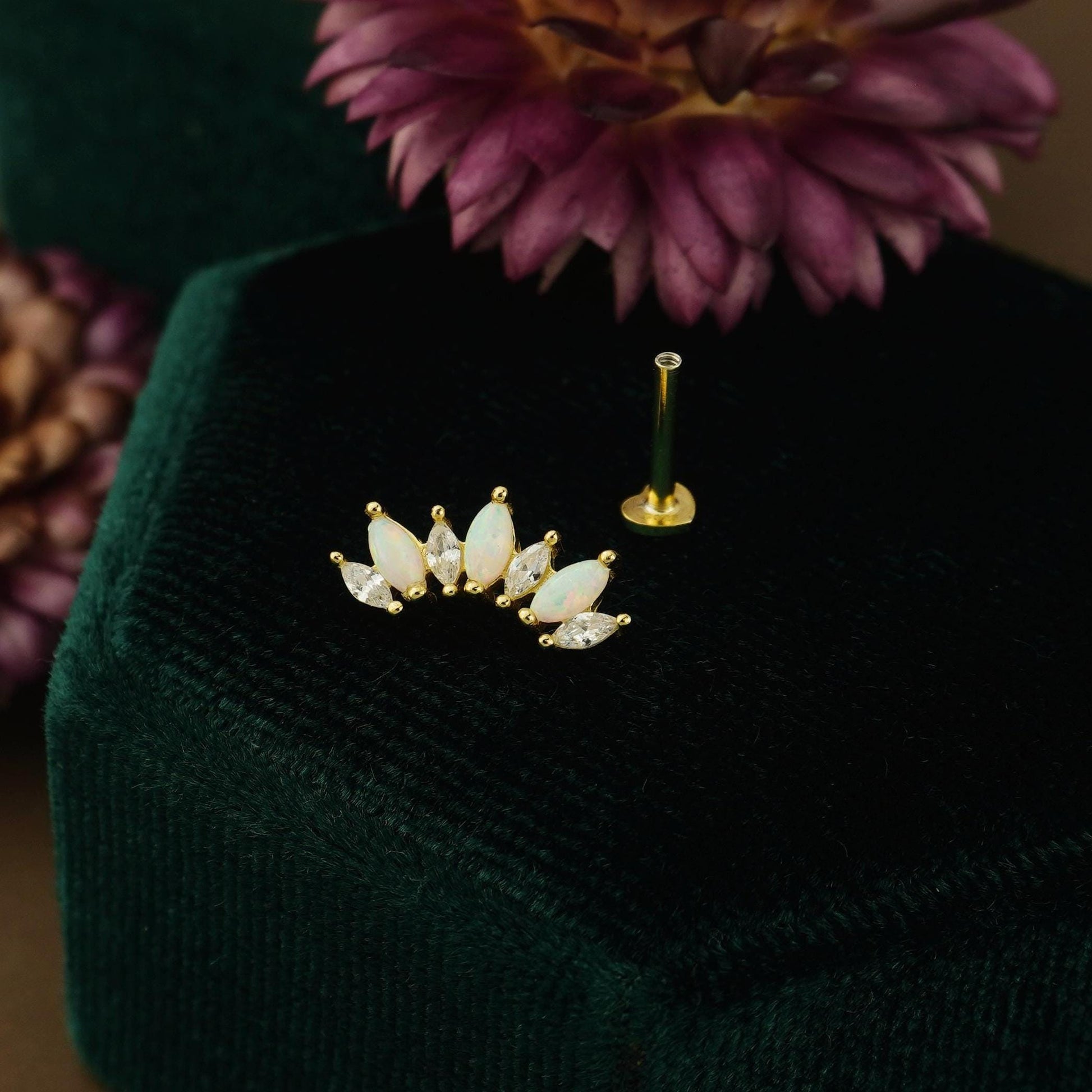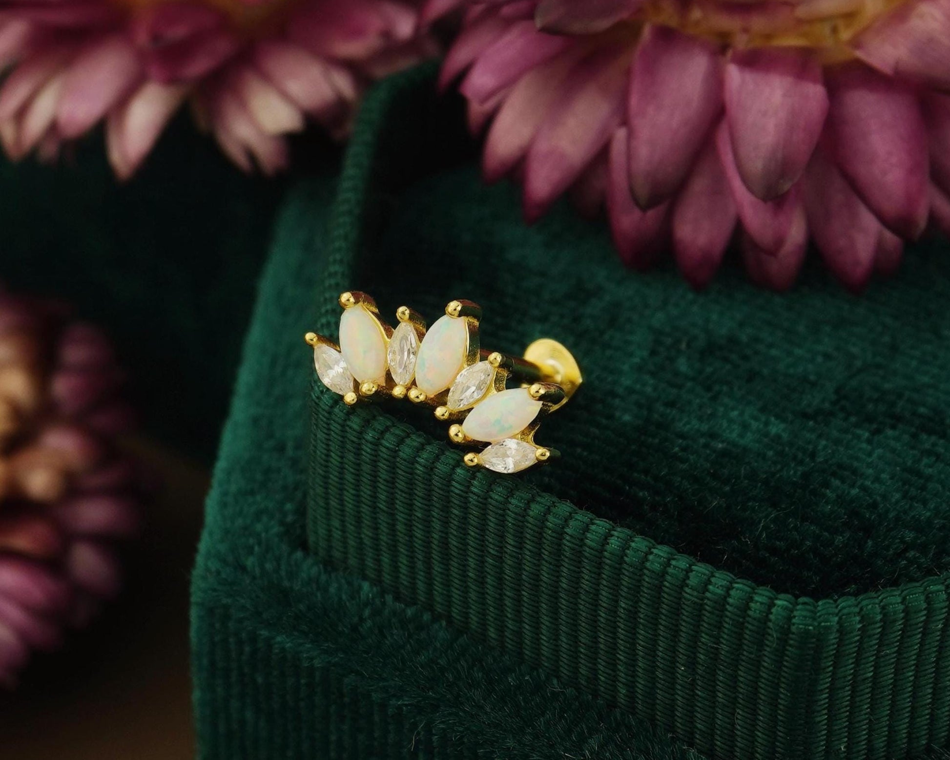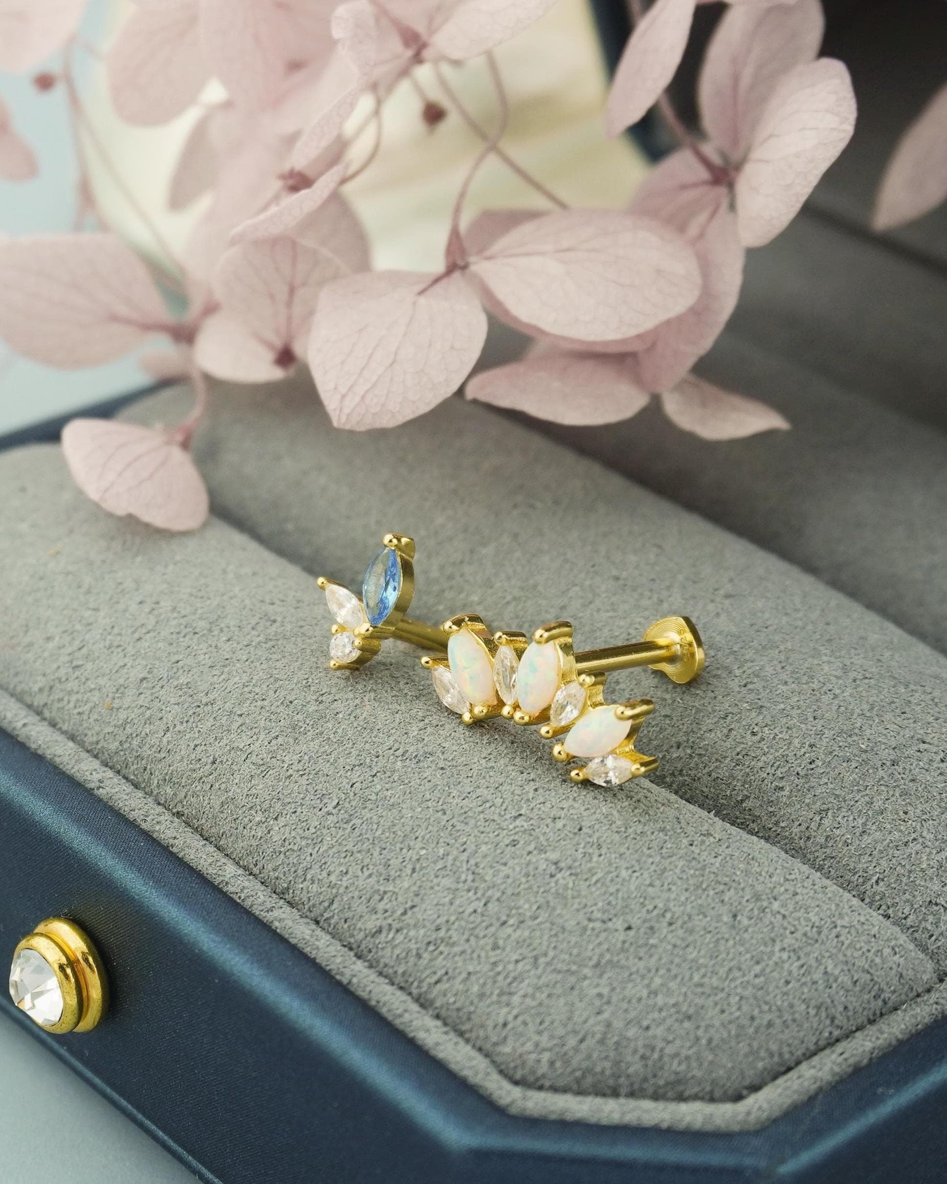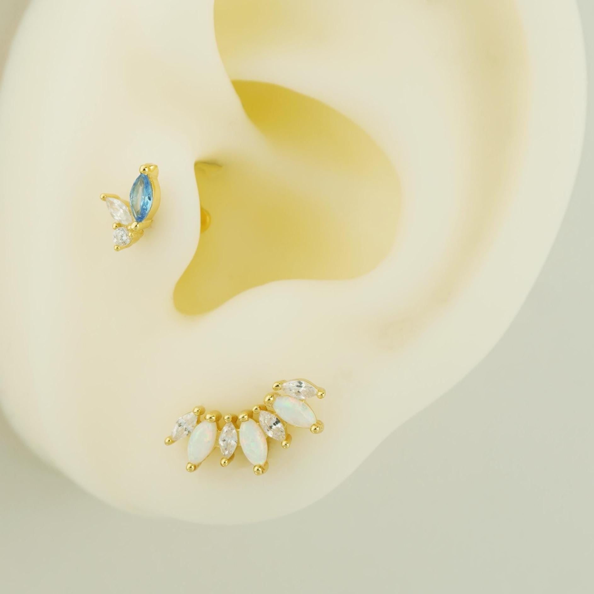 1 pc of Marquise Opal / Blue CZ Stud Earring in 18k Gold Plated over Sterling Silver, 16G Lobe Tragus Cartilage Piercing Jewelry
