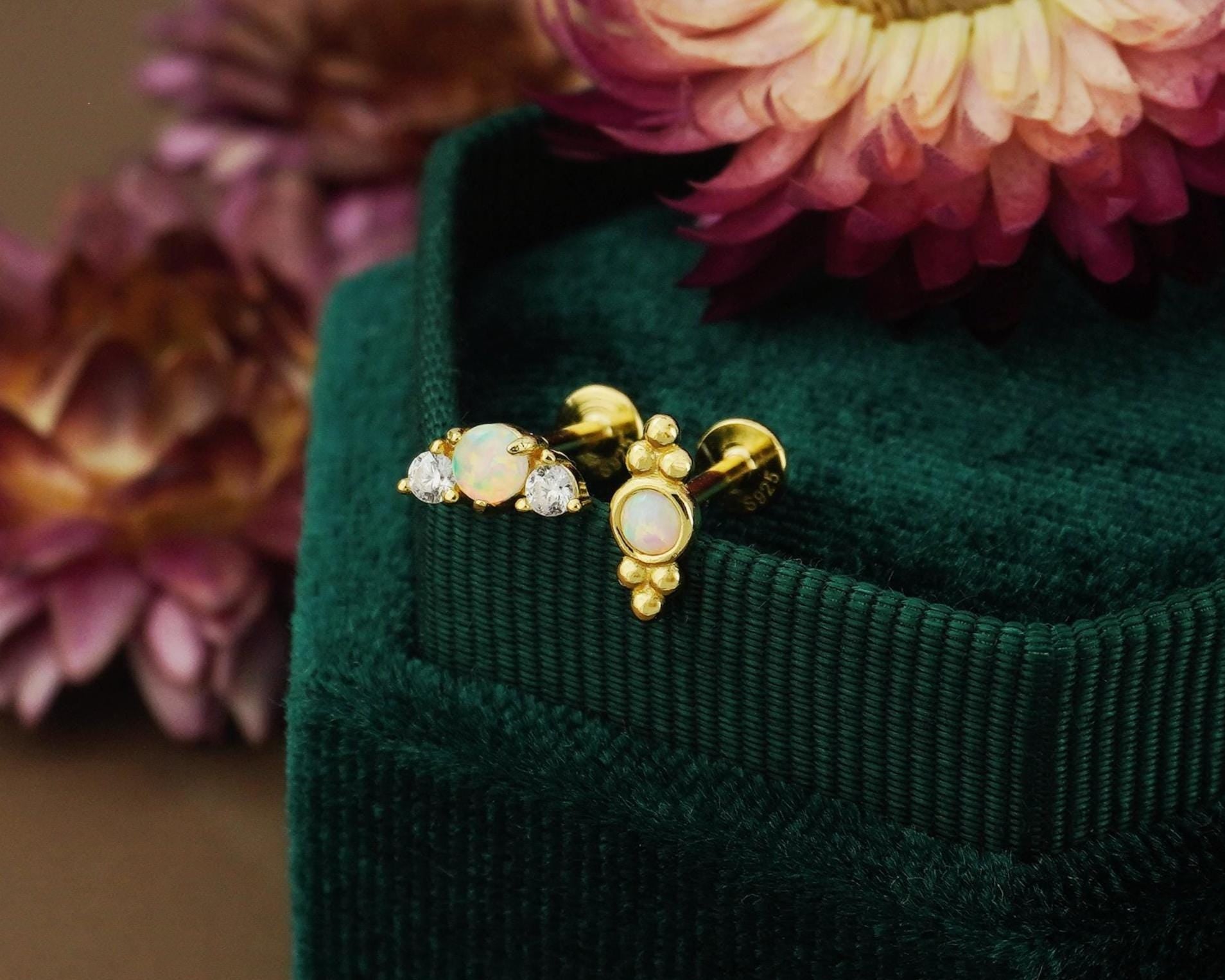 1 pc of Fire Opal Stud Earring in Gold Plated over Sterling Silver, Tiny Gem Delicate Earlobe Cartilage Tragus Piercing Jewelry