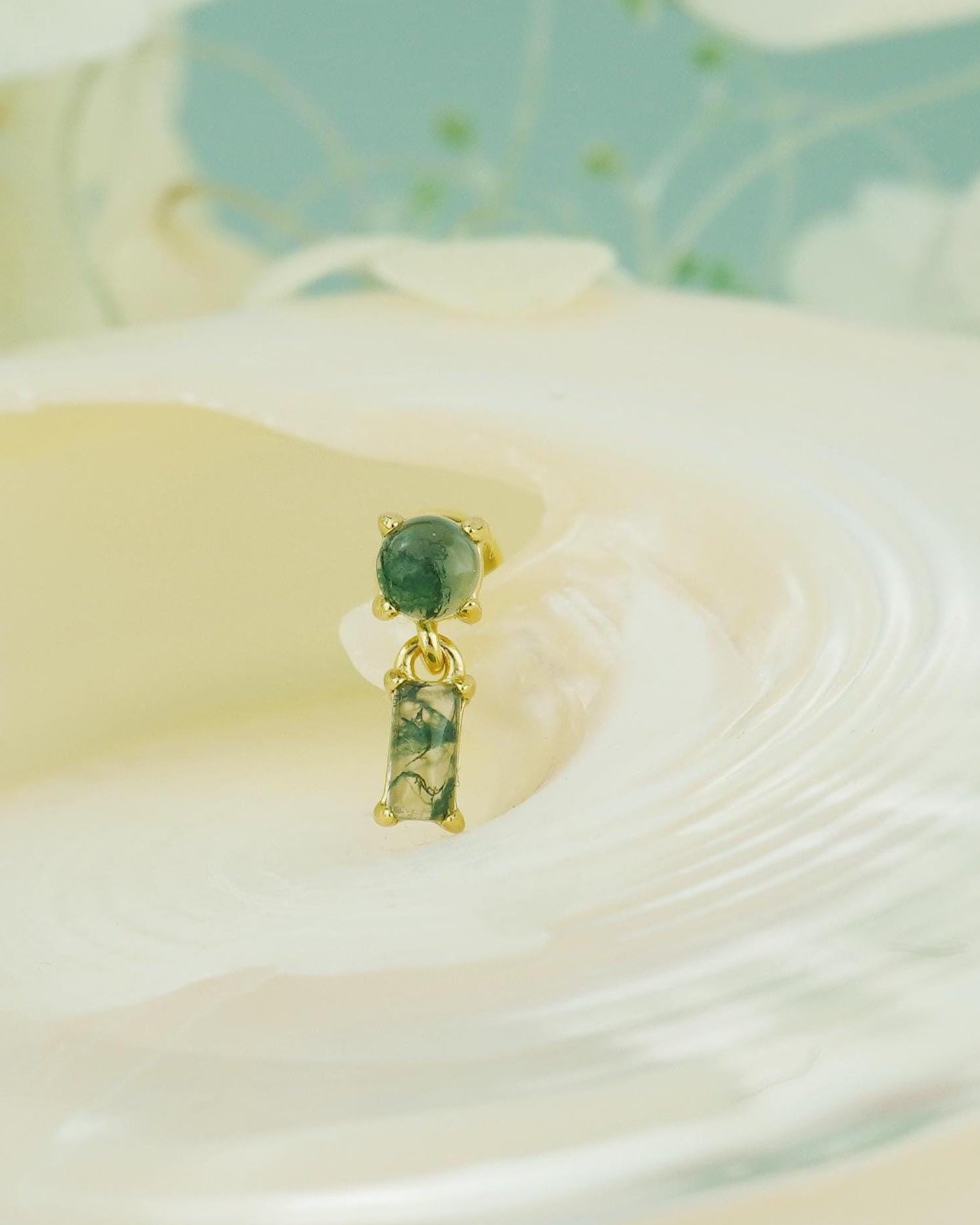★Gemstones: Natural Green Moss Agate (each stone is one of a kind)