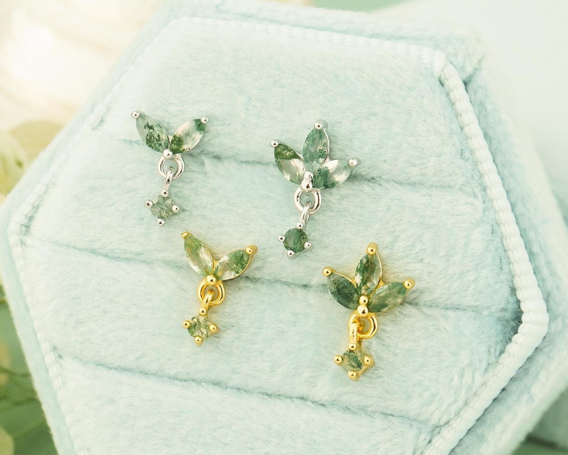 ★Gemstone: Natural Green Moss Agate (each stone is one of a kind)