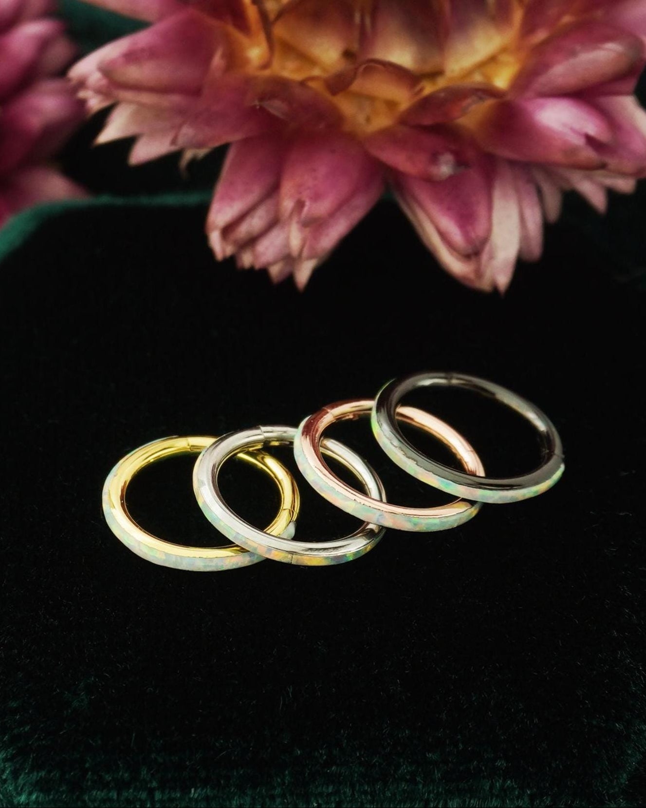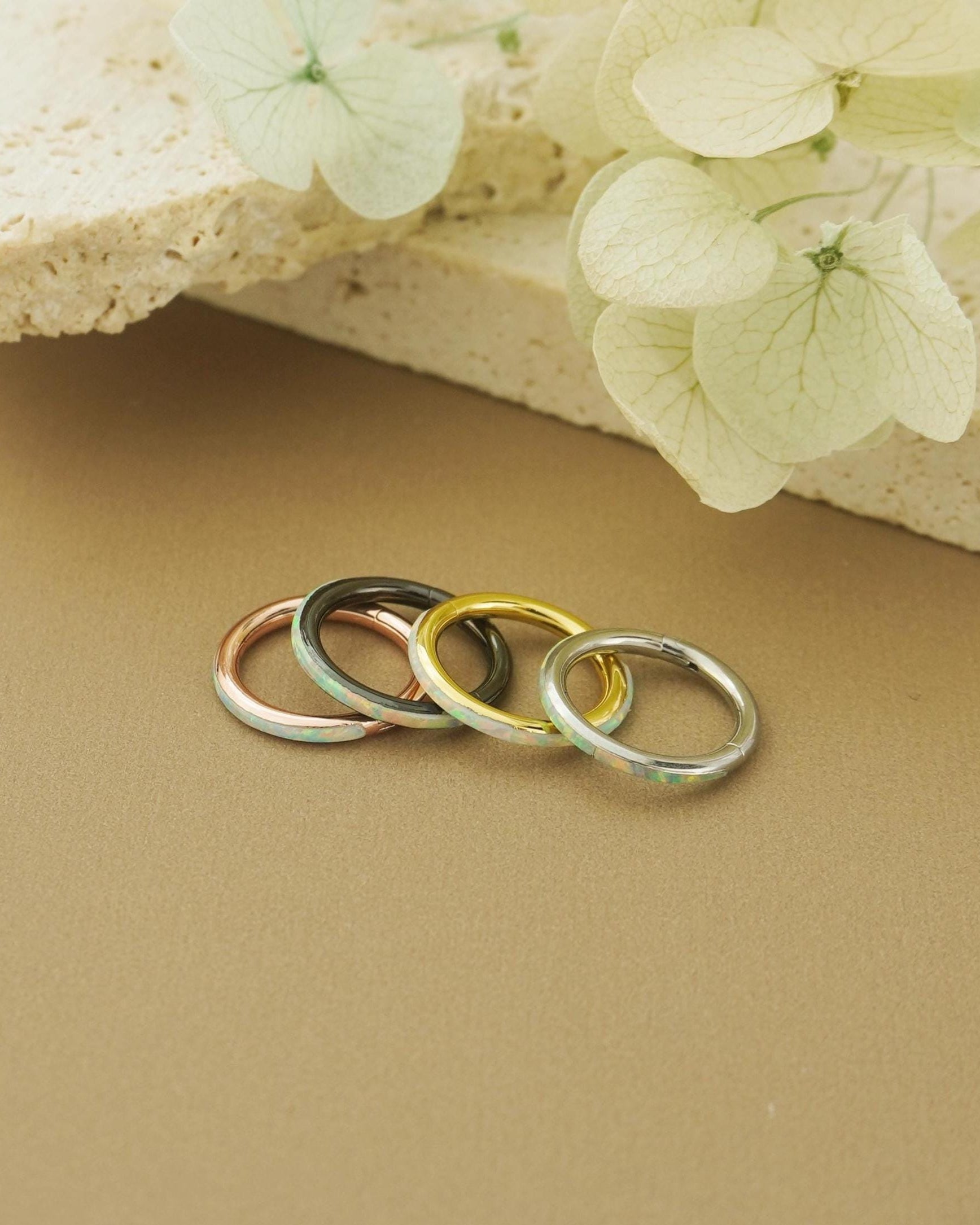 1 pc of 16G Hinged Opal Conch Ring, Stainless Steel Earring Hoop, 4 Colors, Helix Cartilage Segment Clicker, Nose Septum Piercing Jewelry