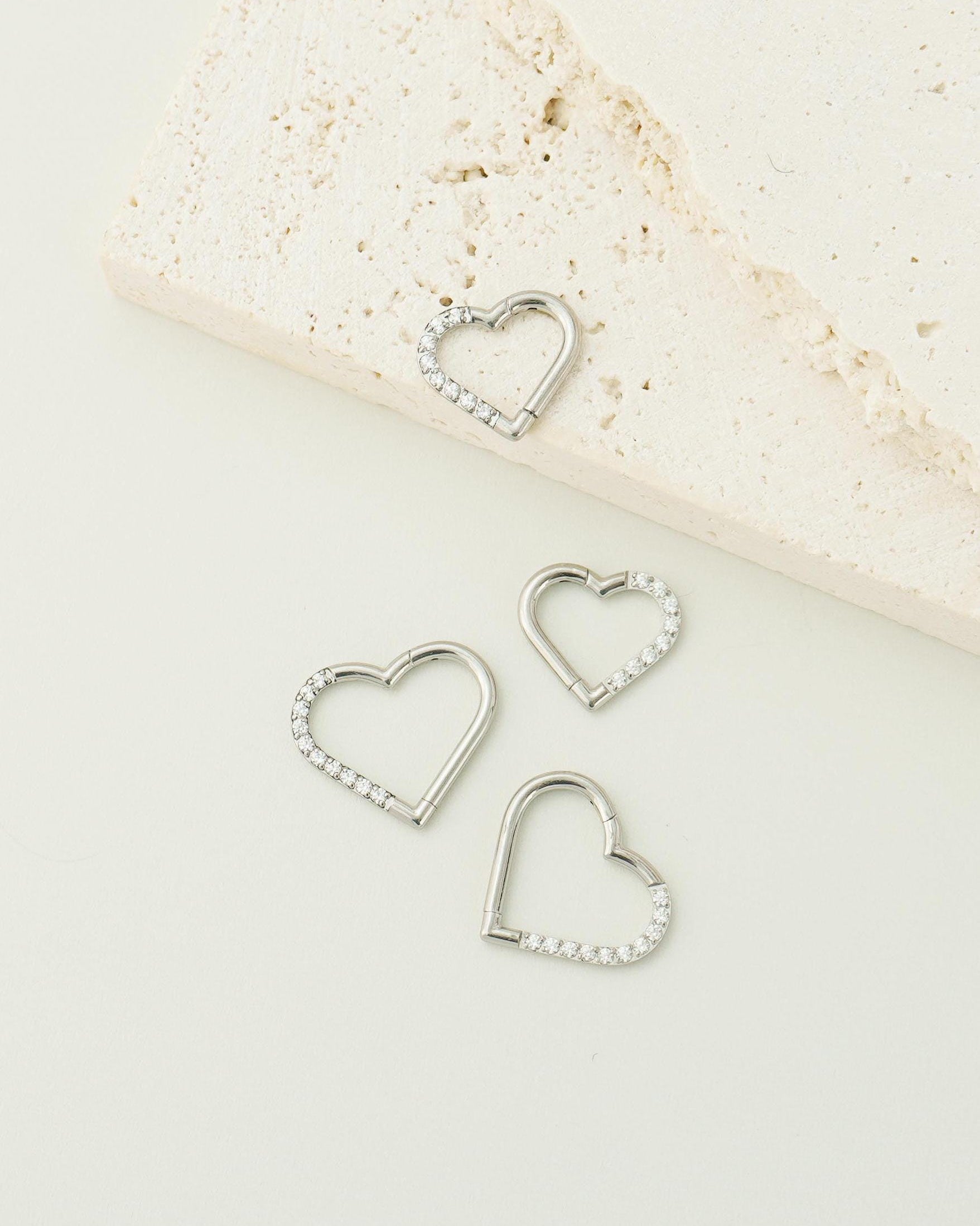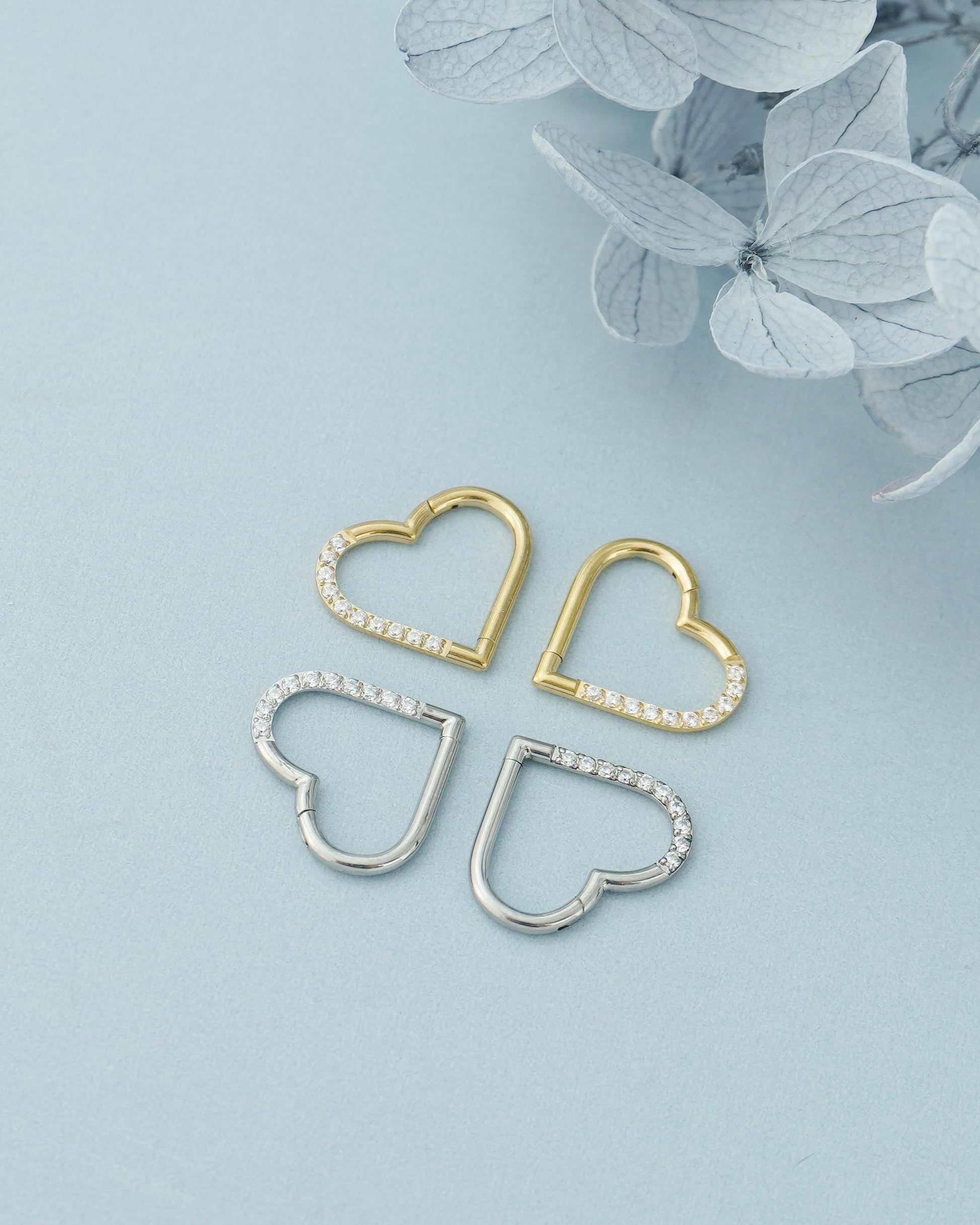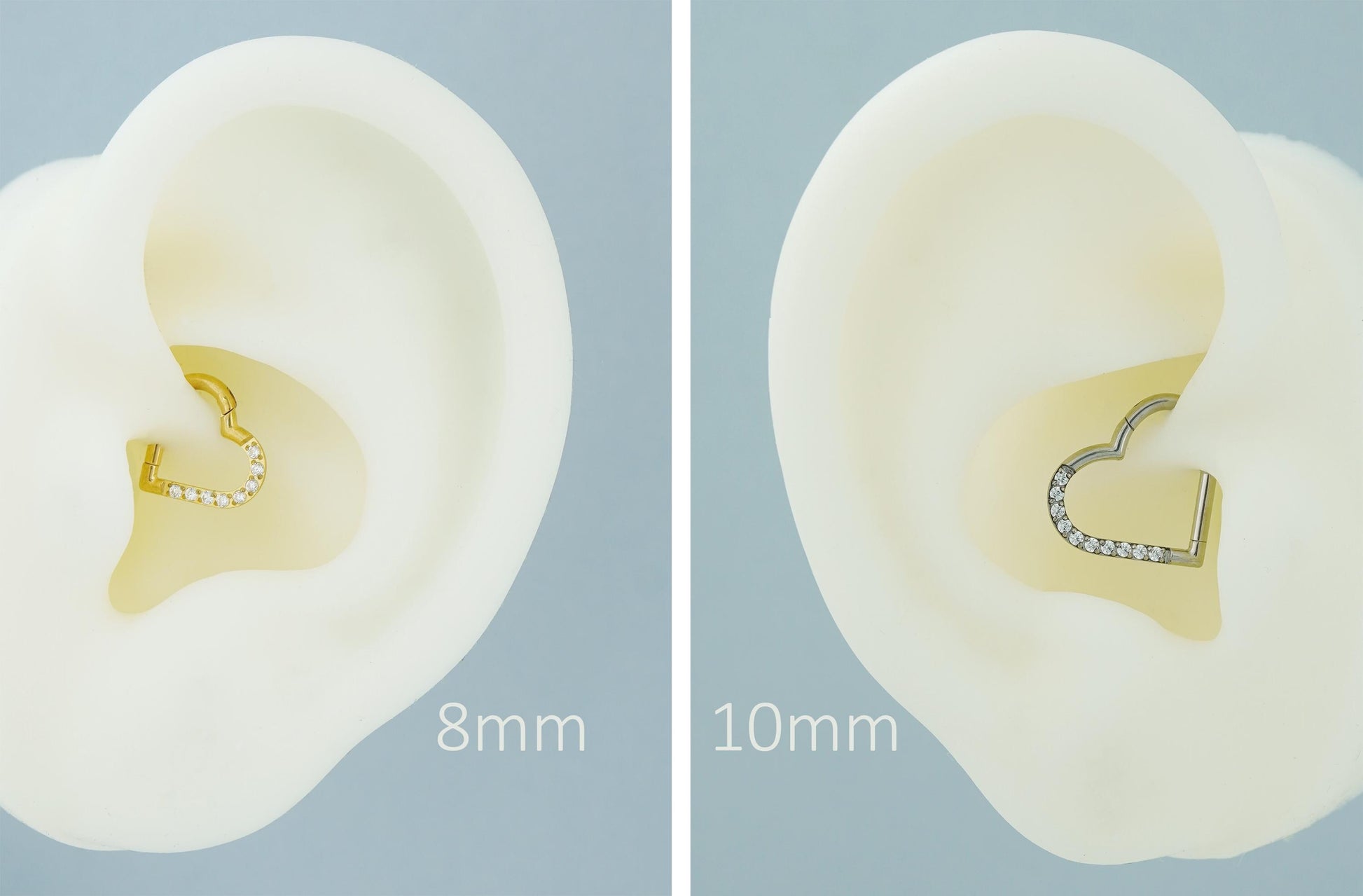 1 pc of 16G Implant Grade Titanium Hinged CZ Heart Daith Earring Hoop, Helix Clicker, Septum Nose Piercing, 1.2*8/10mm