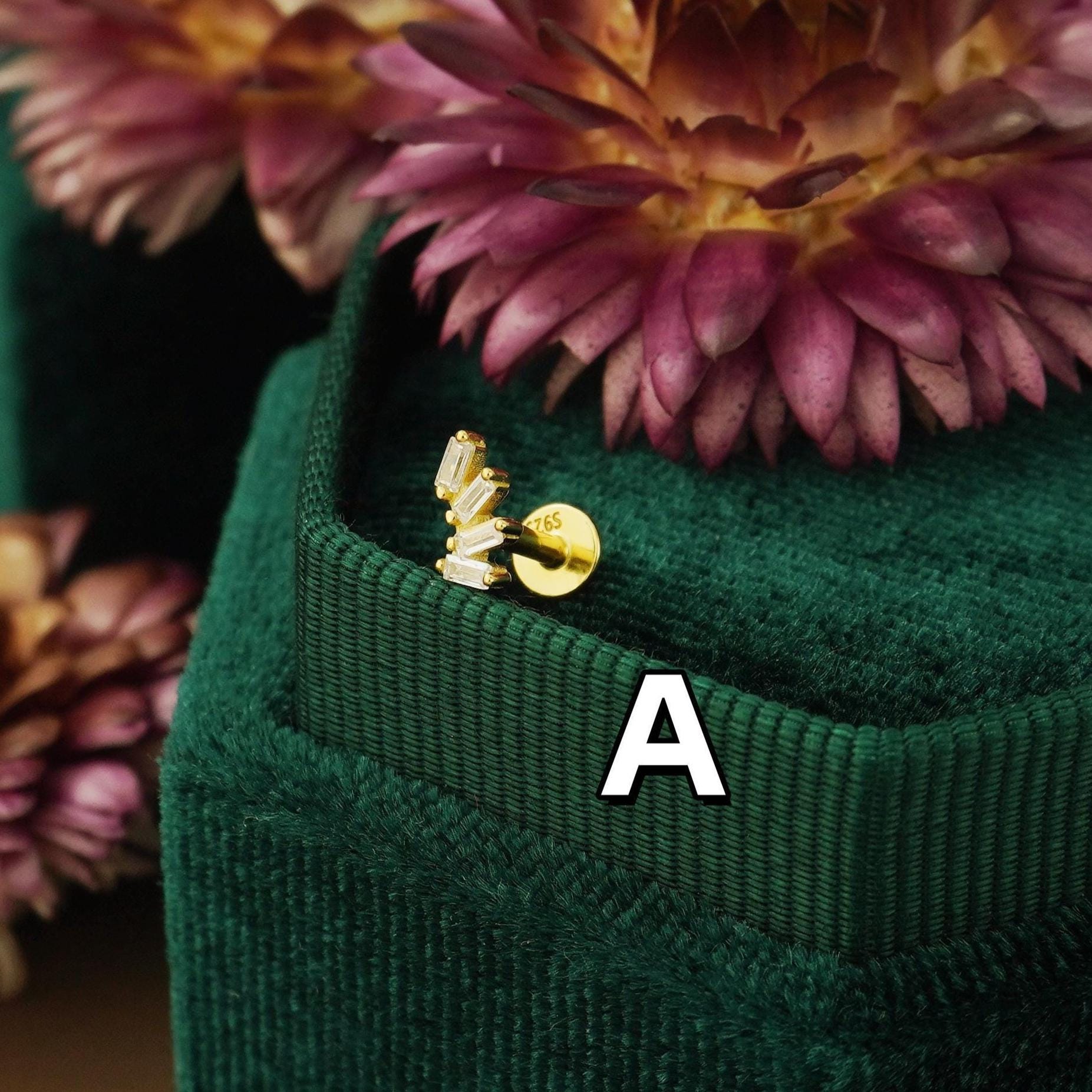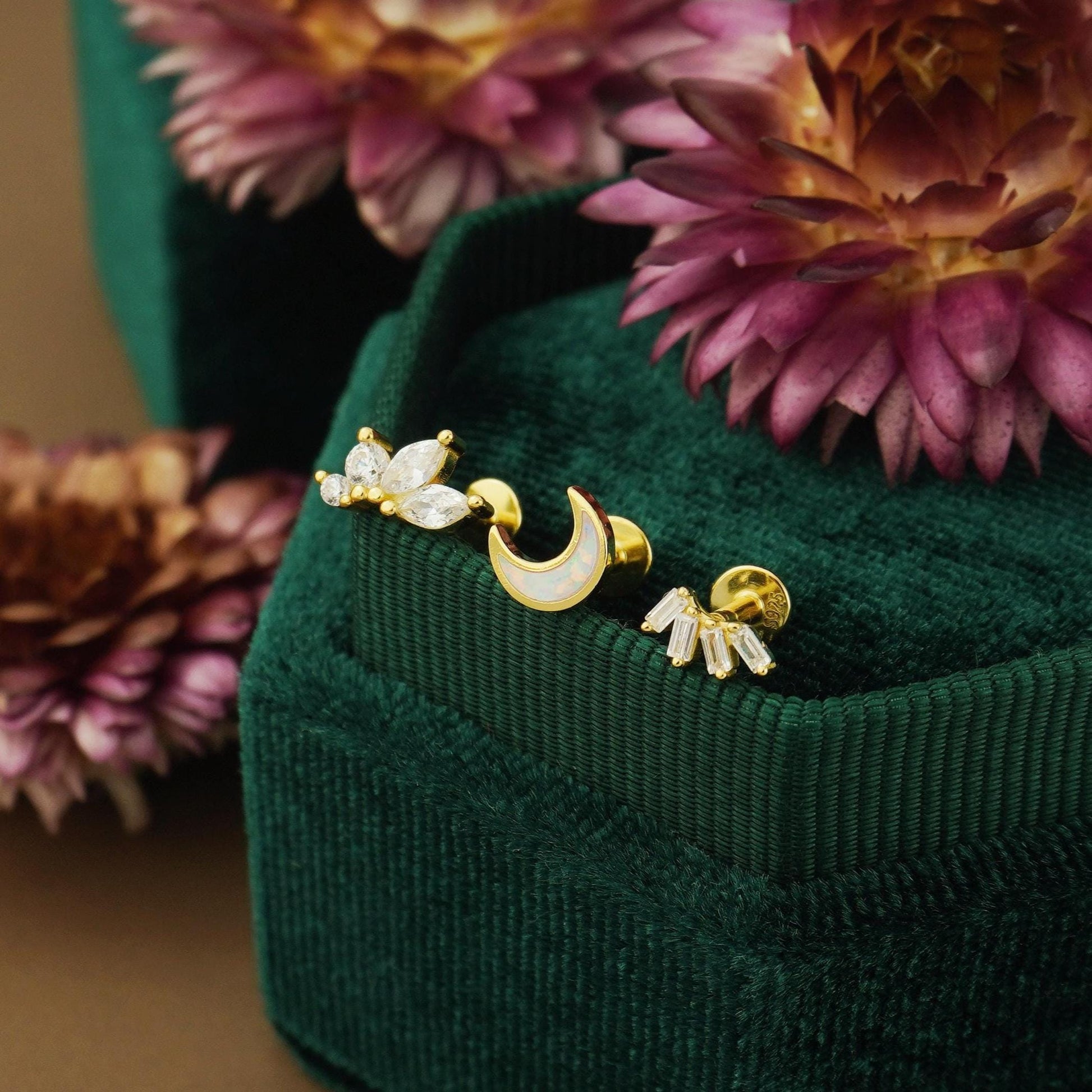 1 pc of CZ / Fire Opal Stud Earring in Gold Plated over Sterling Silver, Tiny Baguette / Marquise / Moon Design, 6mm or 8mm Post