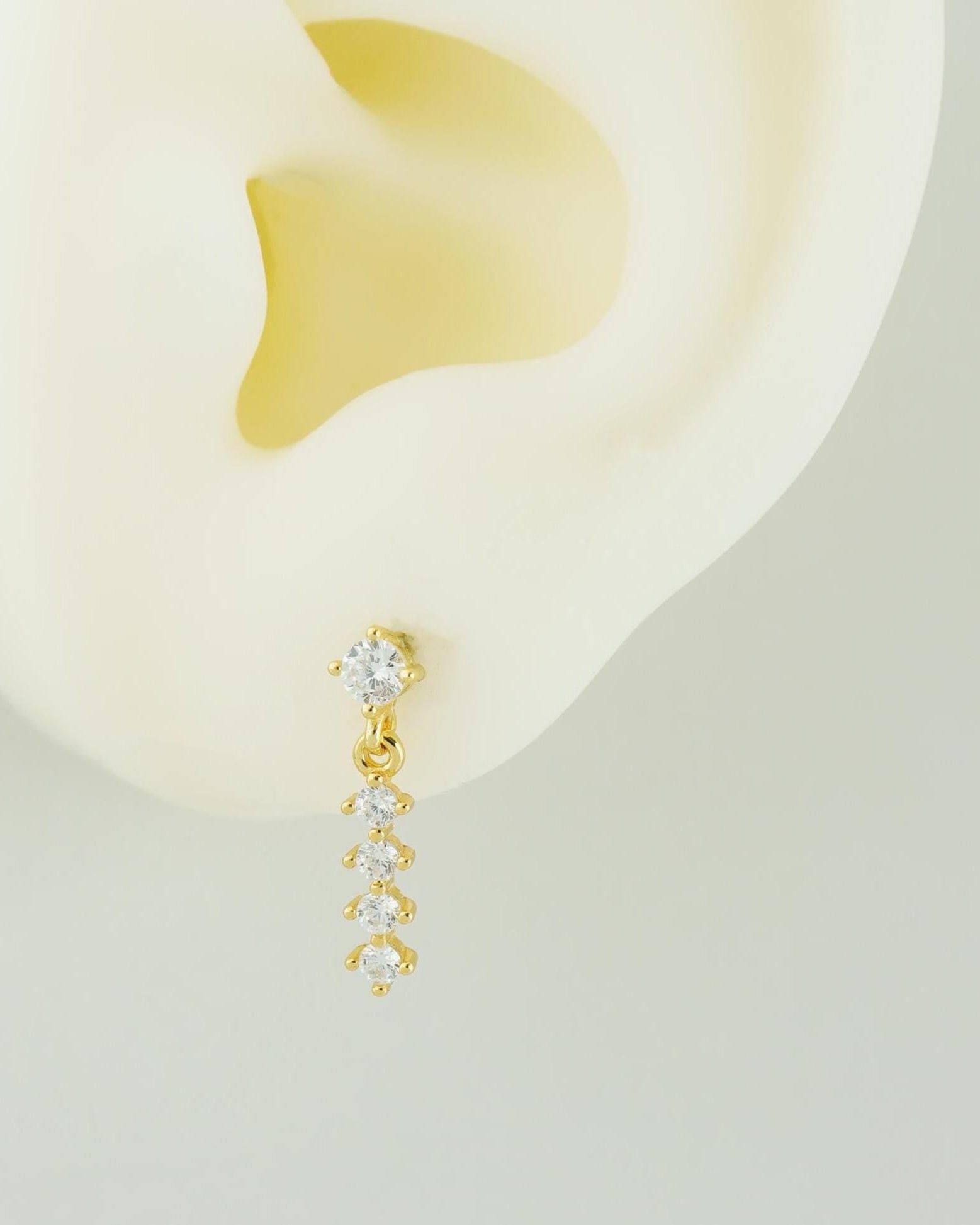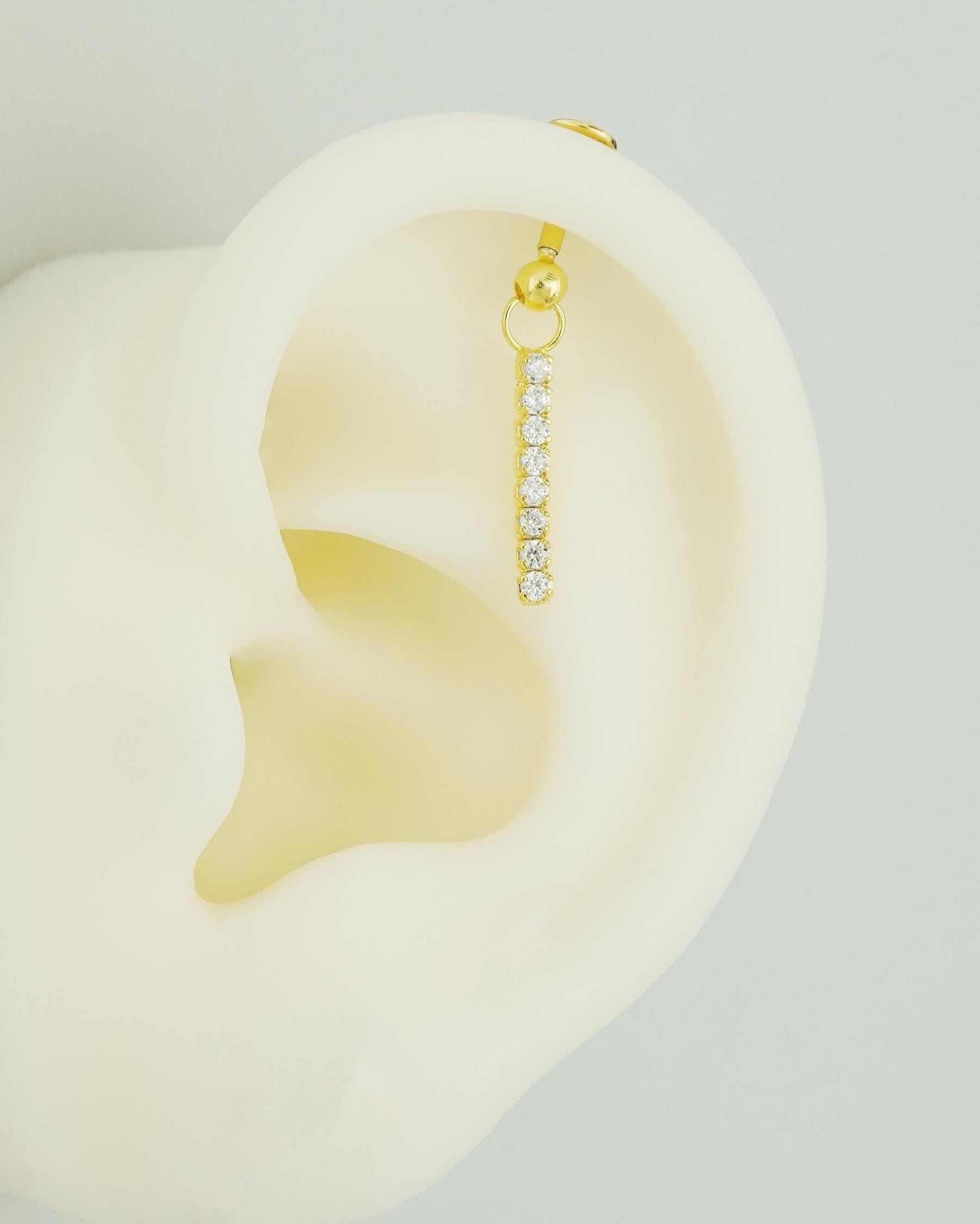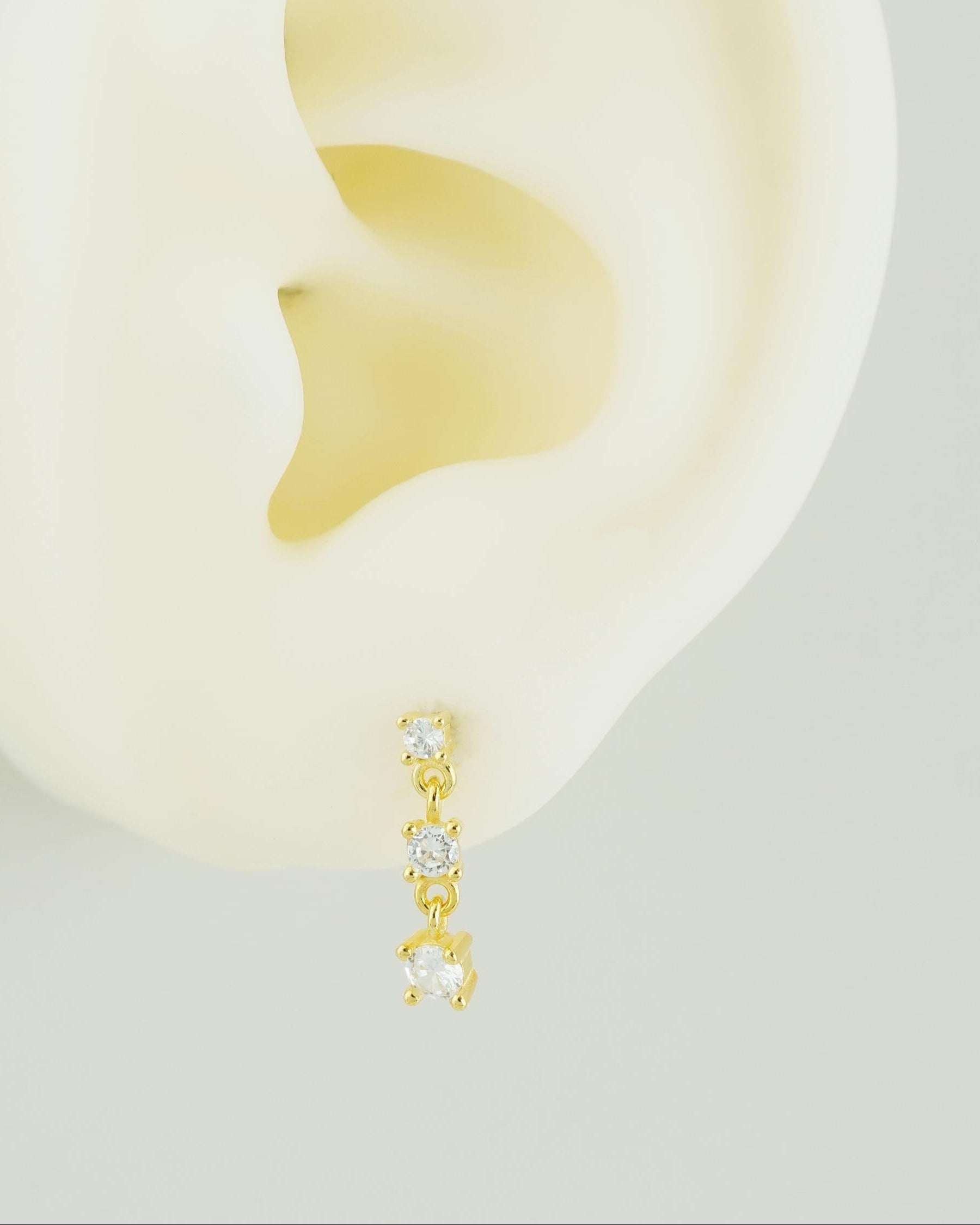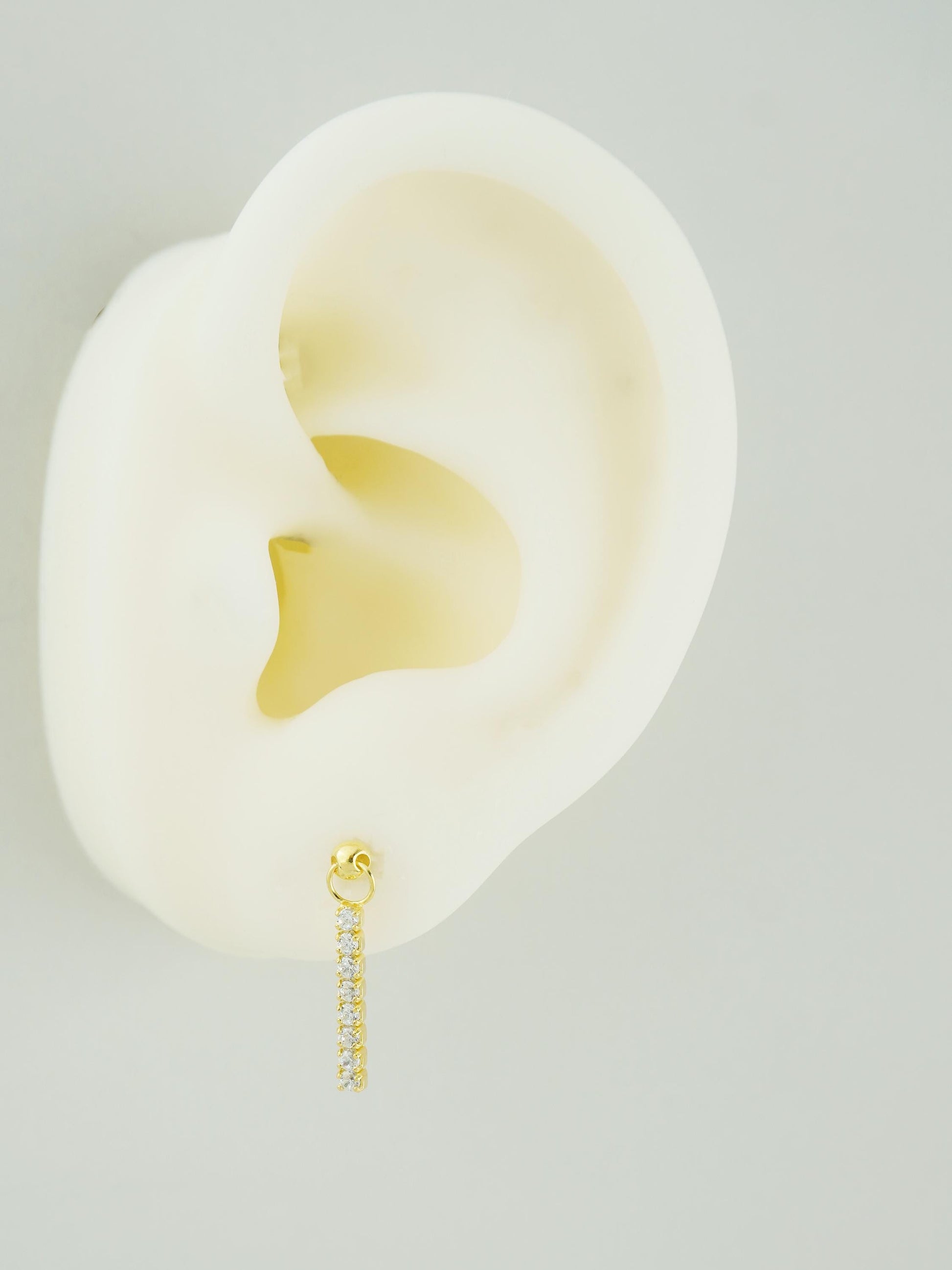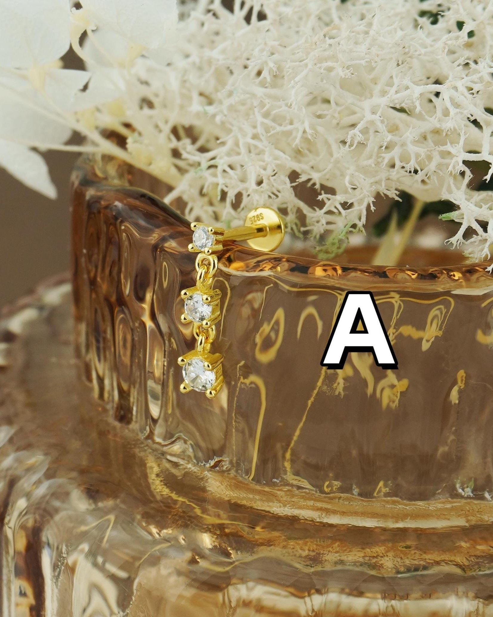 1 pc of Dangly CZ Flat Back Stud Earring in Gold Plated Sterling Silver, Drop Chain Sparkly Gem Cartilage Tragus Lobe Piercing Jewelry