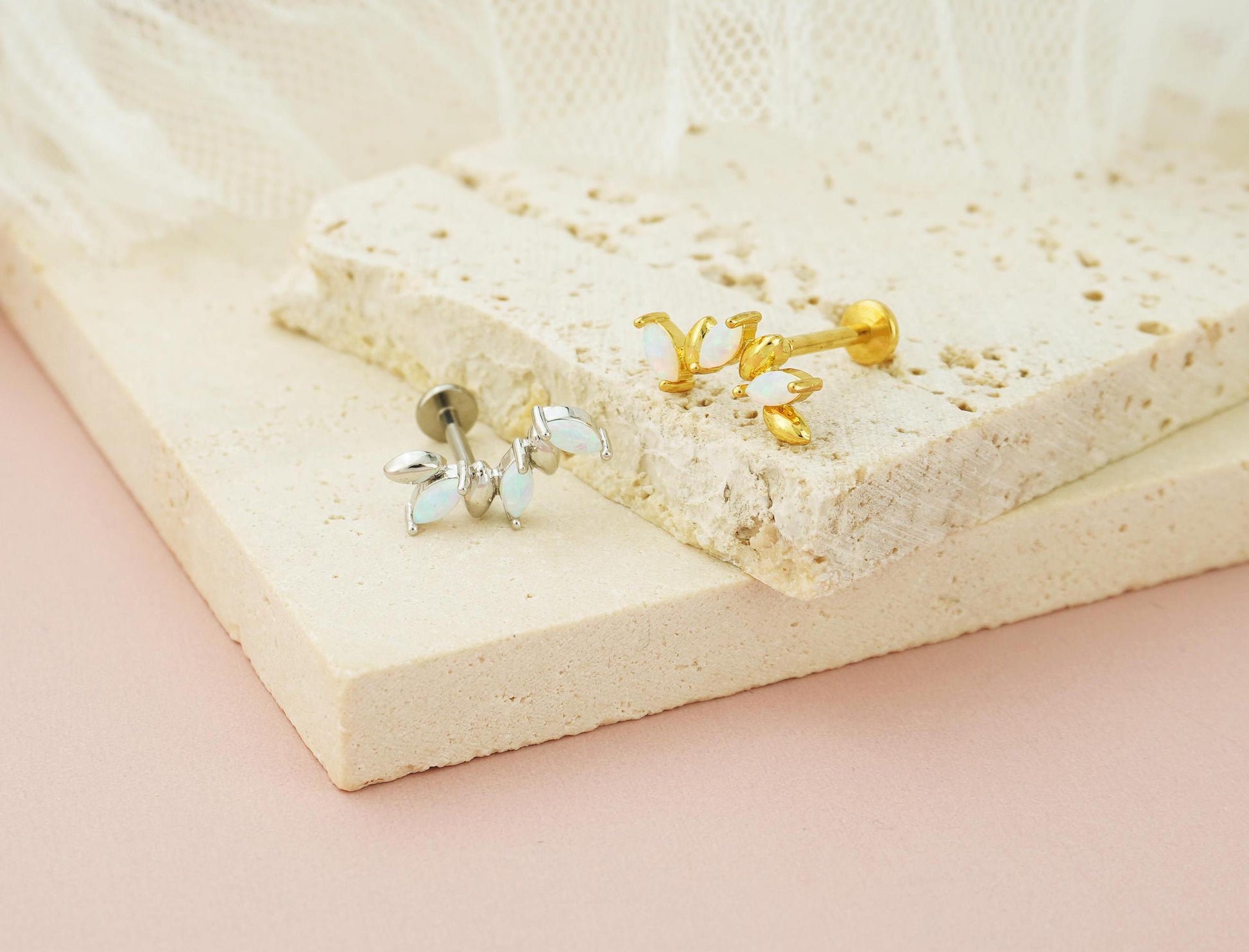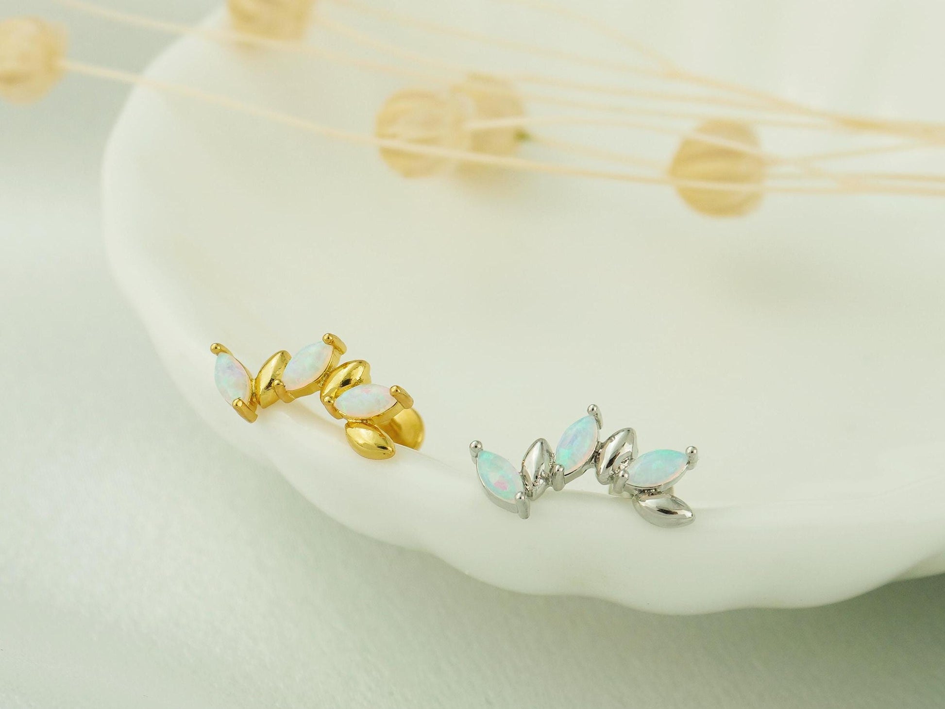 1 pc of Push Pin F136 Titanium Marquise Opal Cluster Flat Back Stud Earring, 16 Gauge 6mm/8mm Post