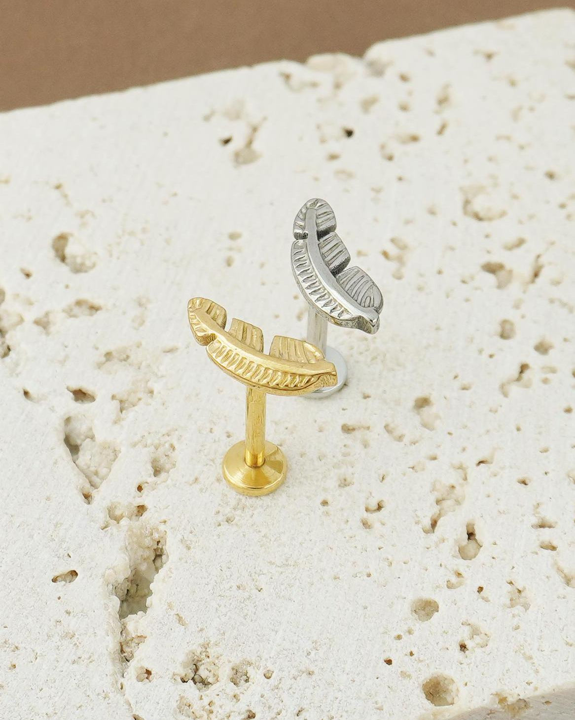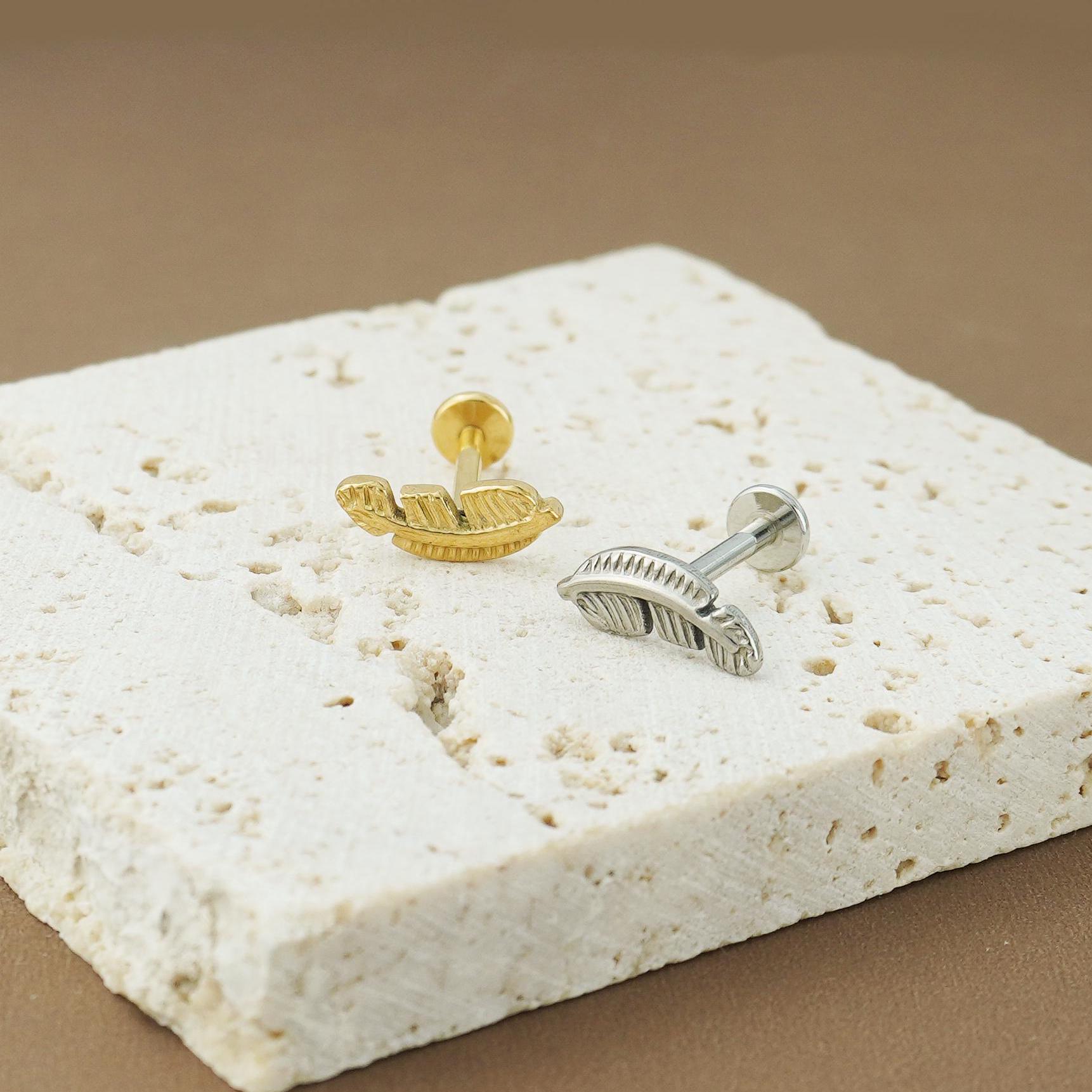 1 pc of Push pin Stainless Steel Flat Back Feather Stud Earring in Steel or Gold Finish