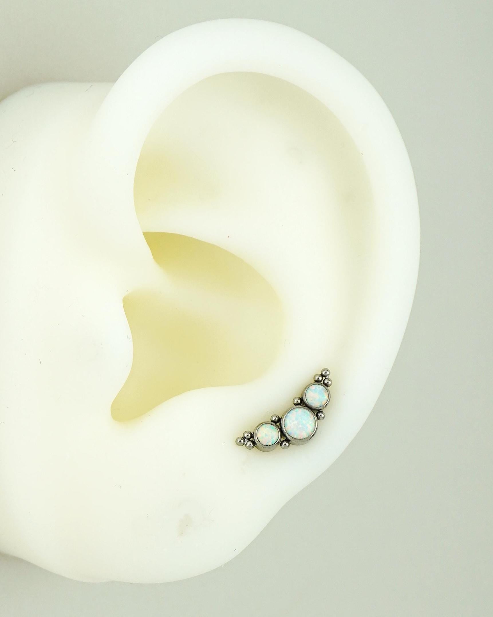 1 pc of Stainless Steel Opal Trio Stud Earring with Flat Screw Back, 3 Gem Cluster in Azure, Pacific Blue or White Stone