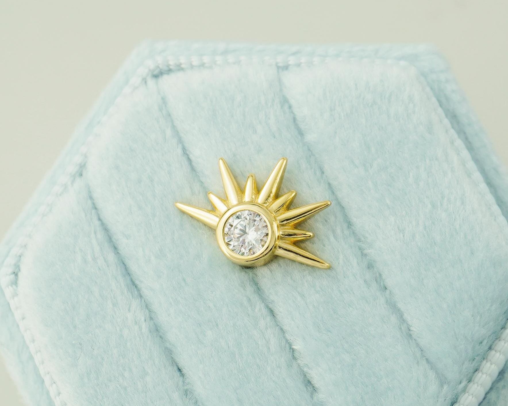 CZ Sunshine Stud Earring, 18ct Gold Plated over Sterling Silver, Celestial Sunburst Jewelry