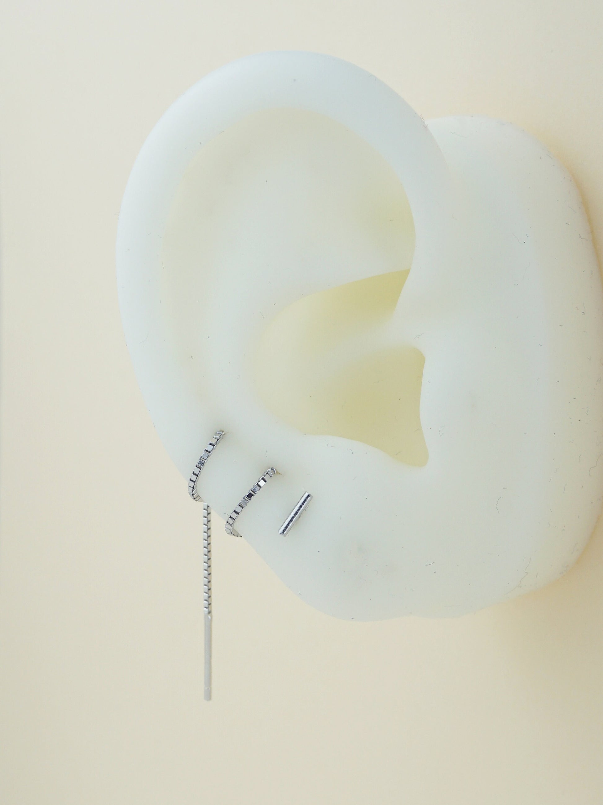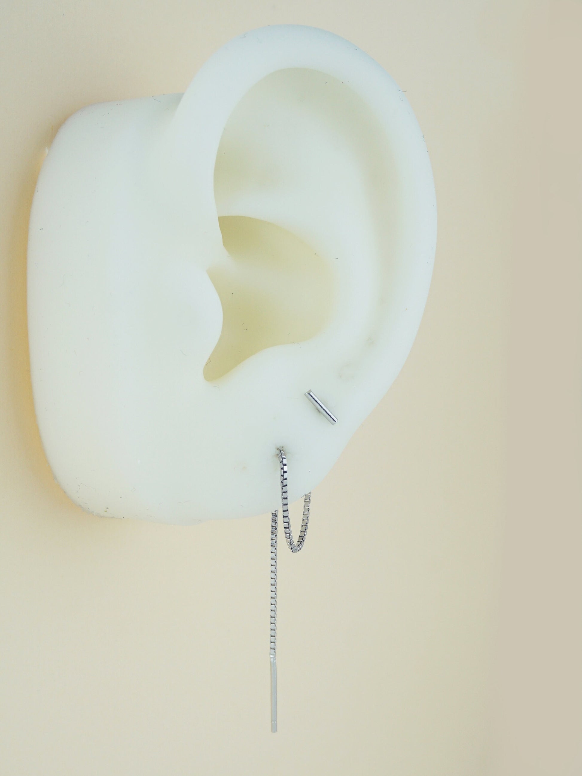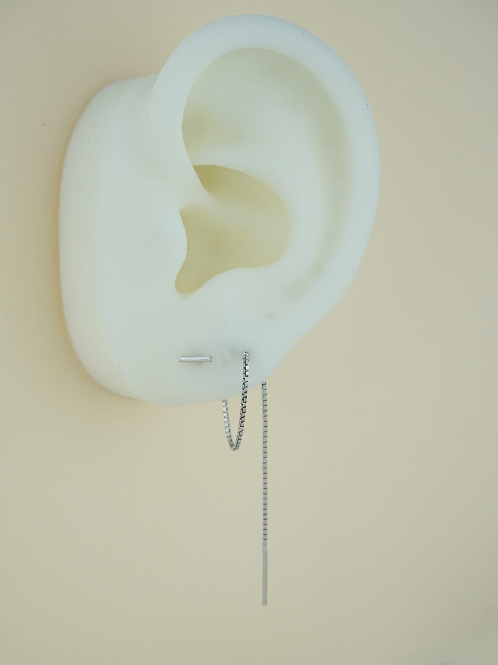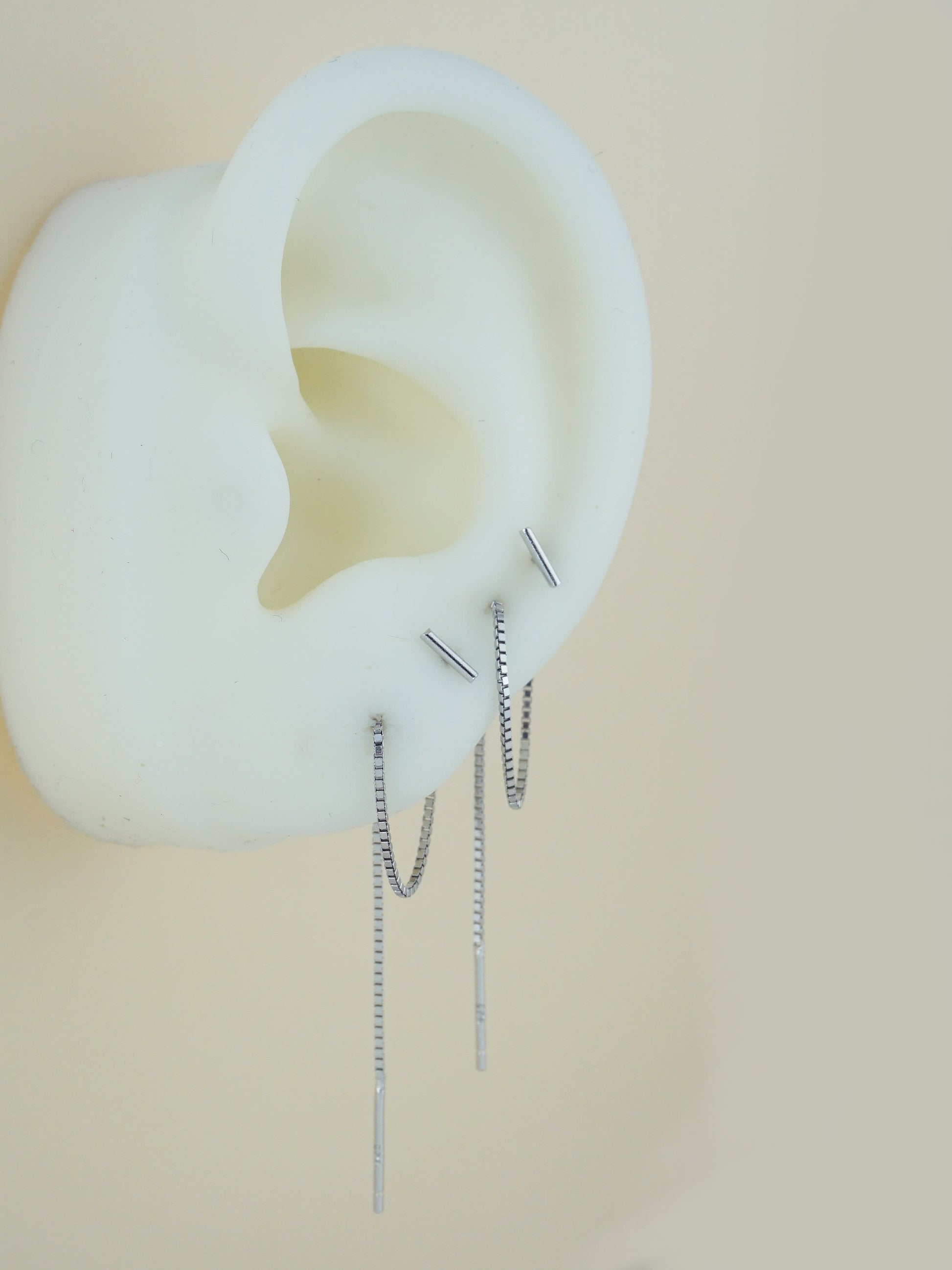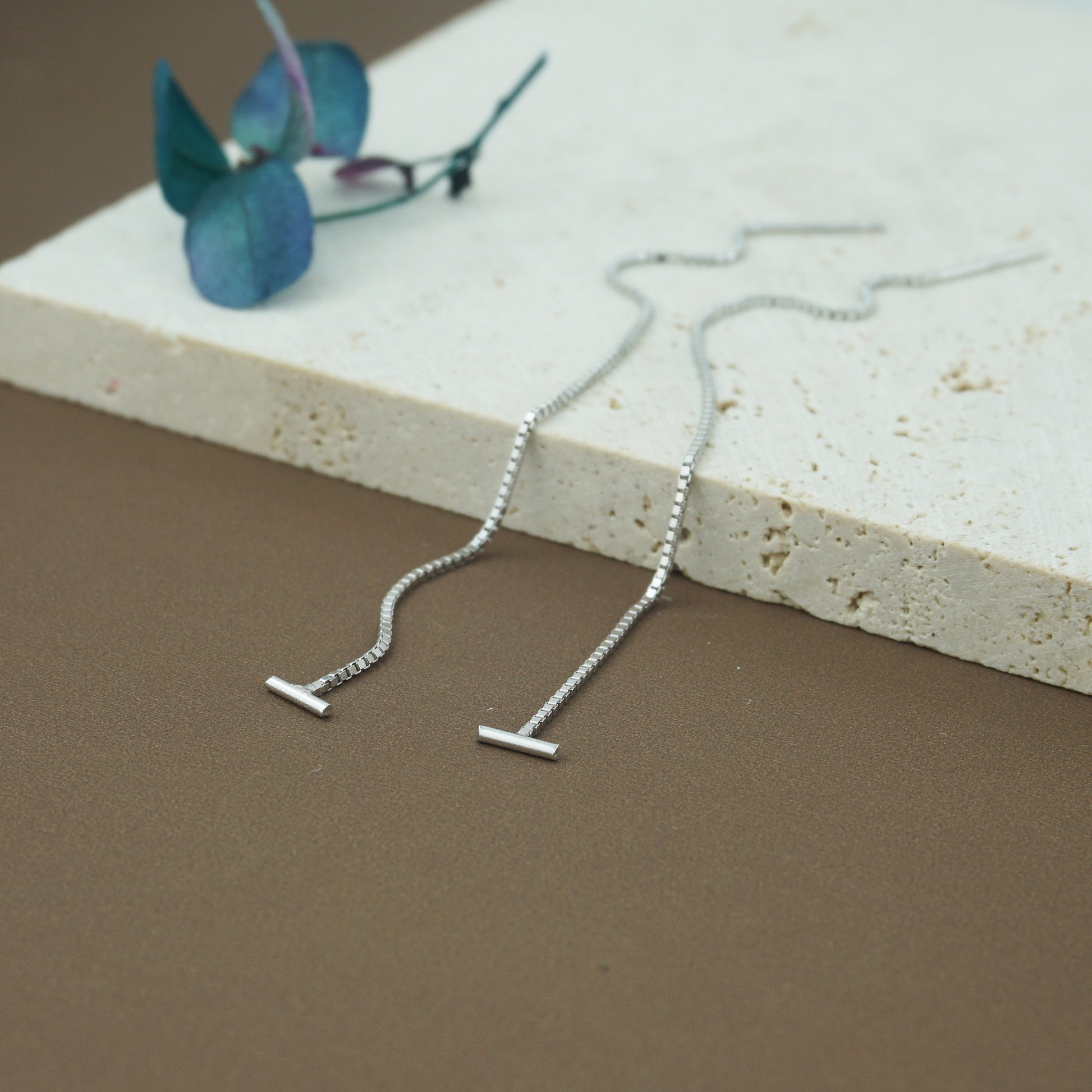 Pair of 5mm Short Bar Head Dangle Threader Earrings in Sterling Silver or Plated Gold, Dainty Dangly Chain, Minimal Delicate Ear Wire