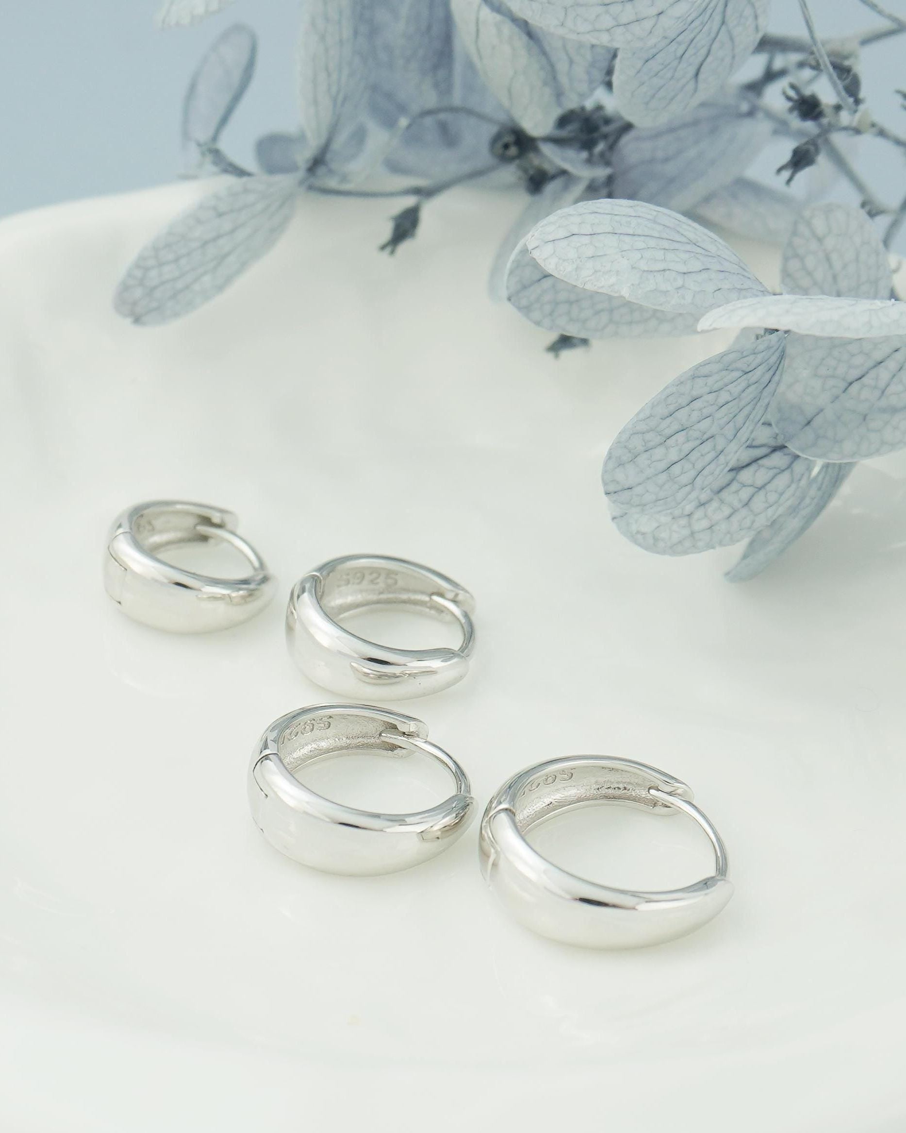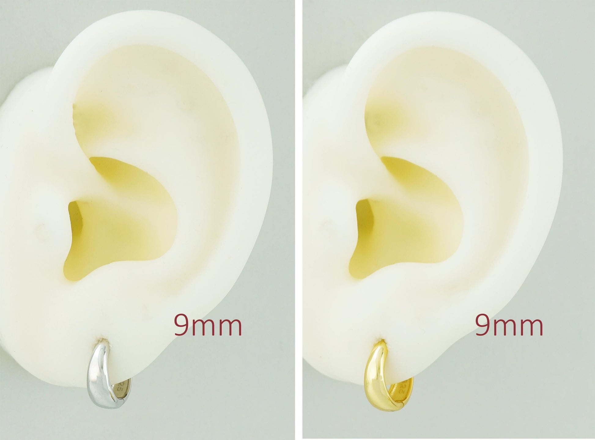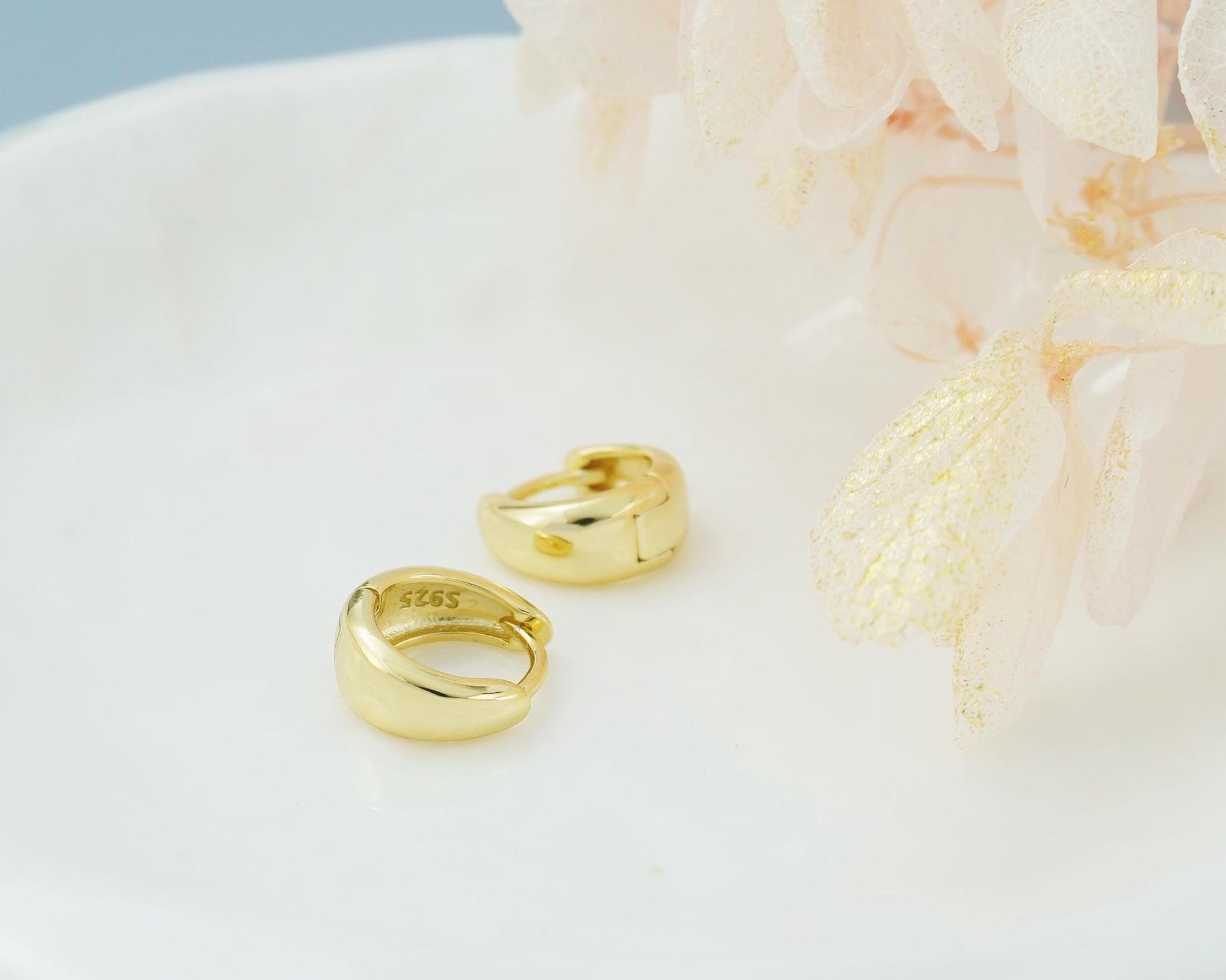 Pair of Chunky Huggie Hoop Earrings, 4 Loop Sizes in Sterling Silver or Plated Gold, Chubby Circle Ear Stacking Jewelry, 7/8/9/10mm