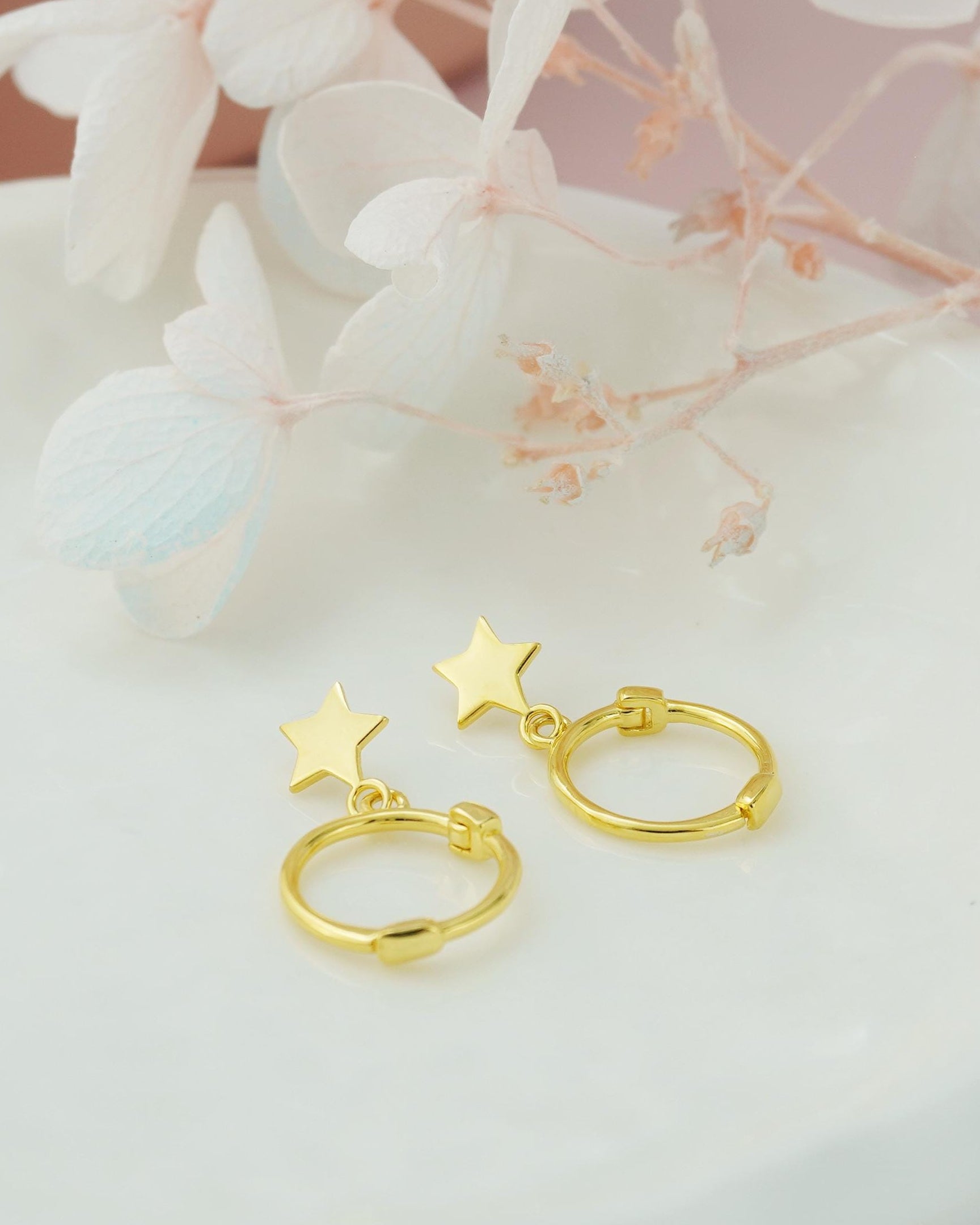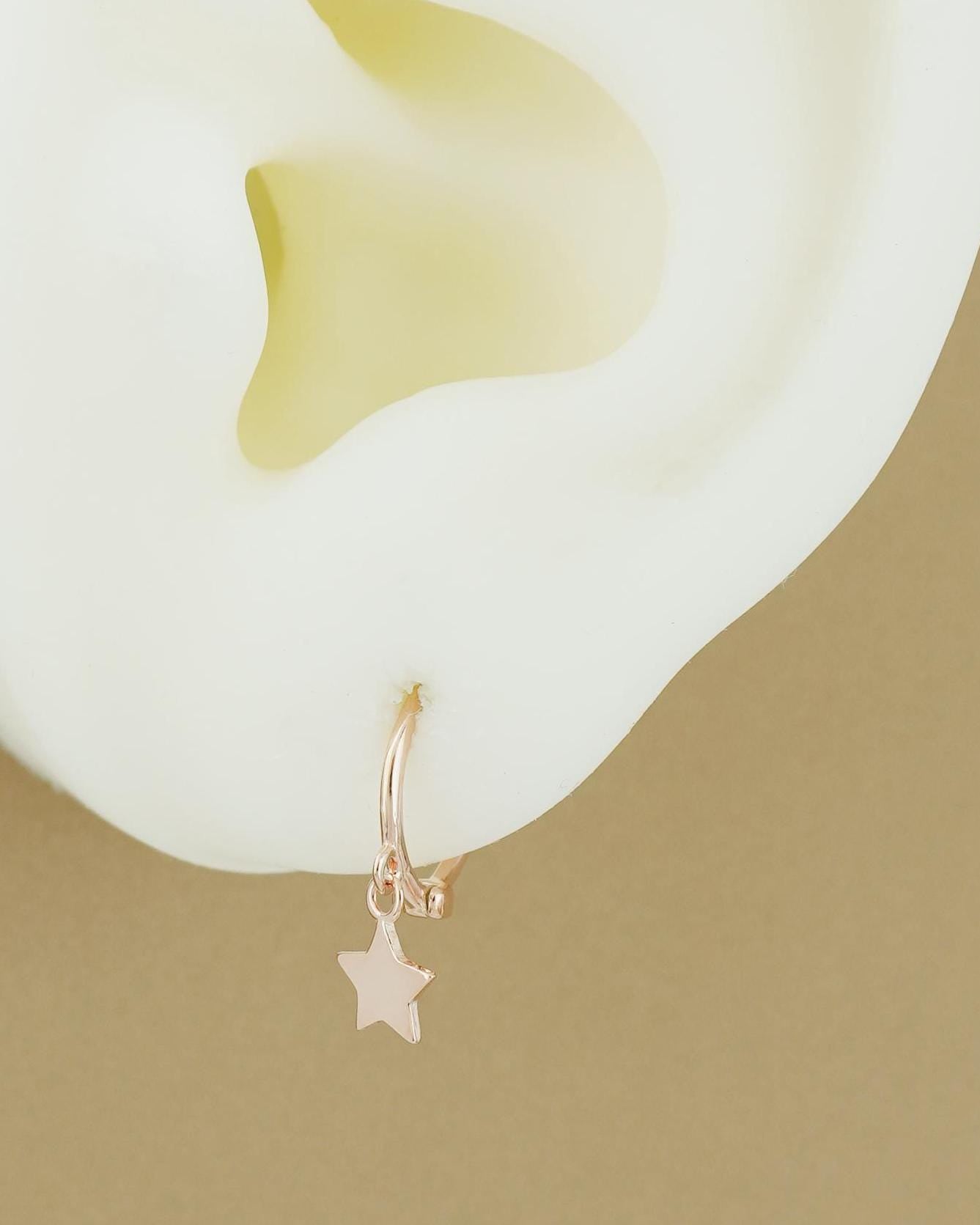 Pair of Tiny Sterling Silver Dangly Star Huggie Hoop Earrings in Rhodium, Gold or Rose Gold Plated, Dainty Stacking Jewelry