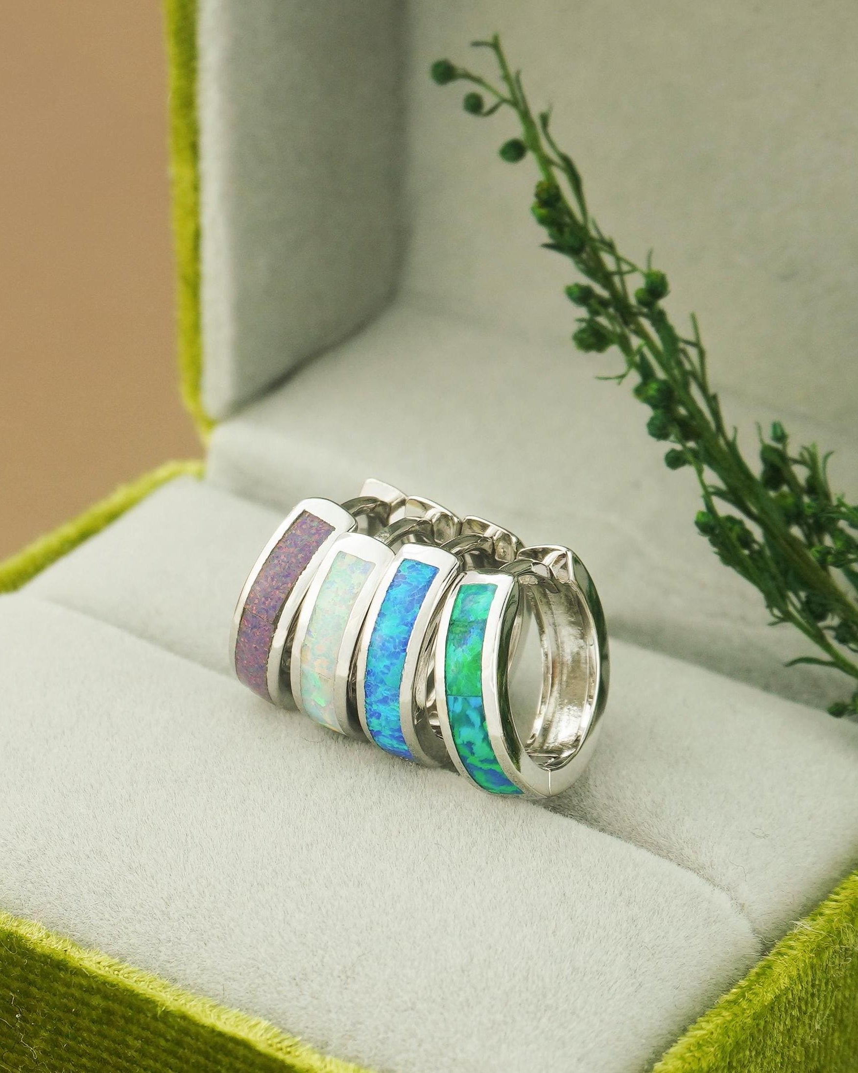 Also available in ✨Gold Plated✨: Pair of Elegant Opal Inlay Huggie Hoop Earrings in Gold Plated Brass, – SilverDrey