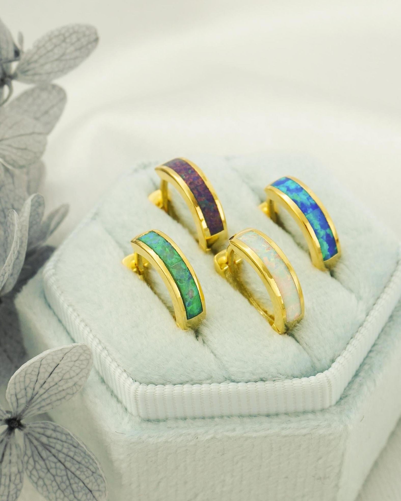 ★Handcrafted with brass, plated with gold. Available in 4 opal colours: milky white, garden green, deep blue and dark night.