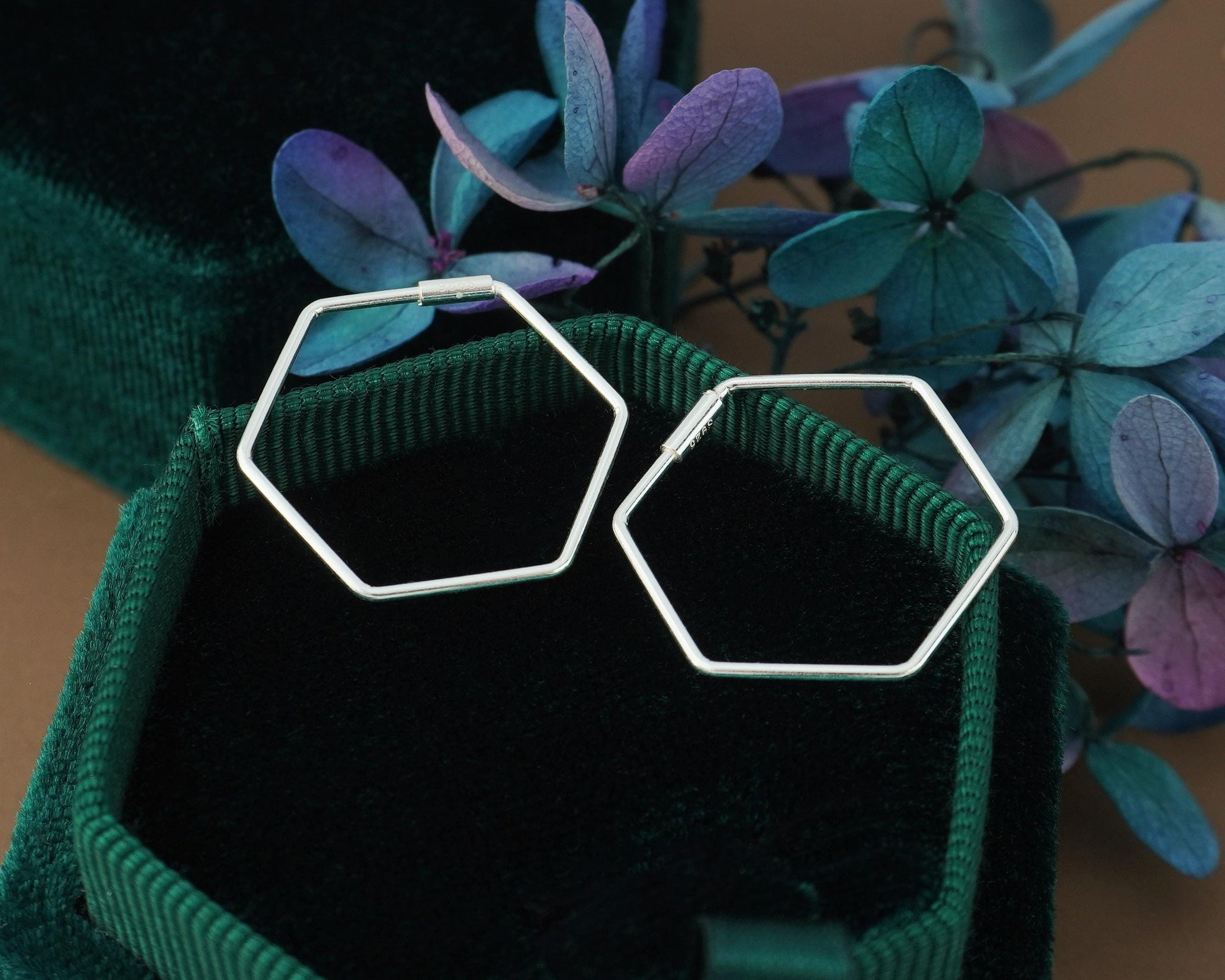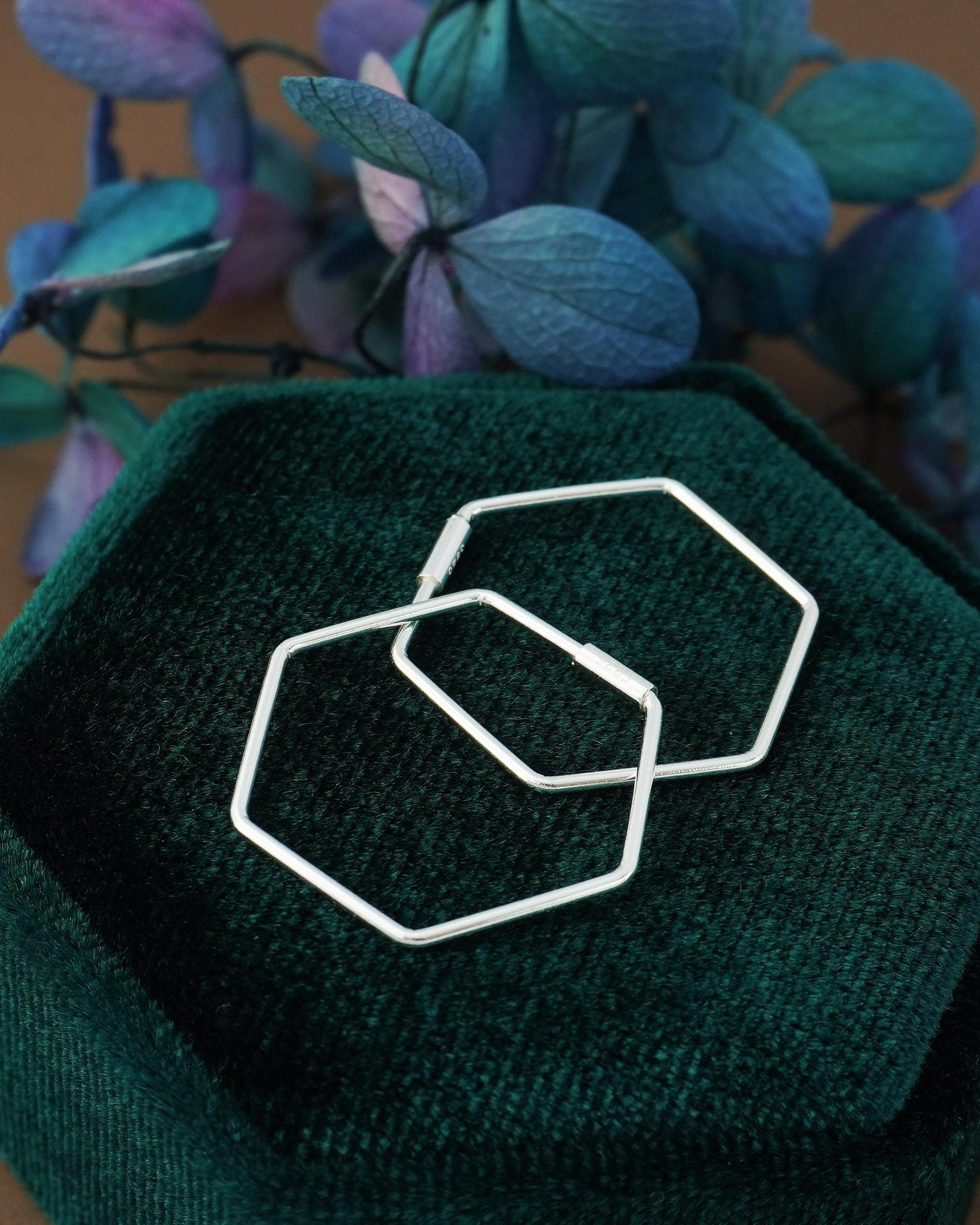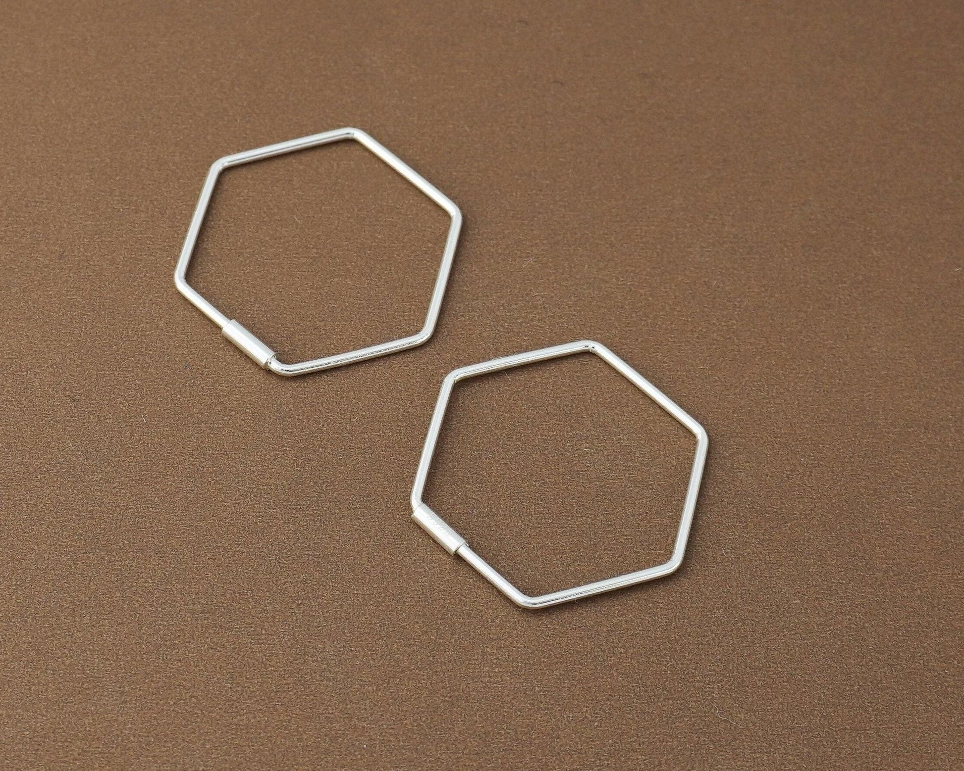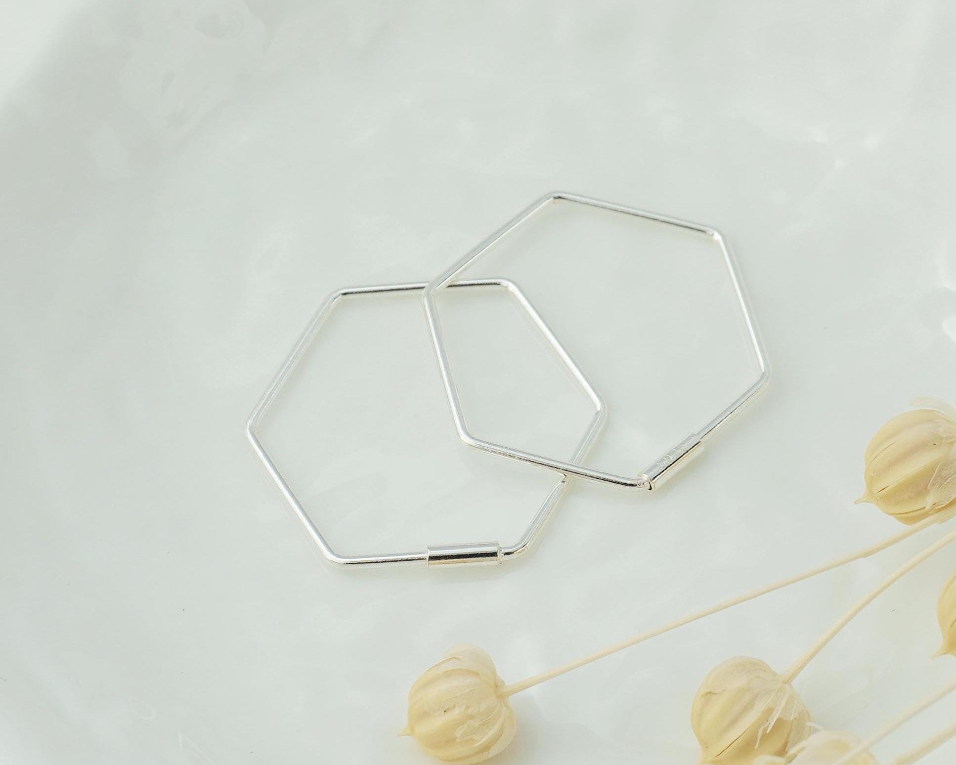 Pair of Hexagon Hoop Earrings in Sterling Silver, Minimal Lightweight Geometric Hexagonal Jewelry