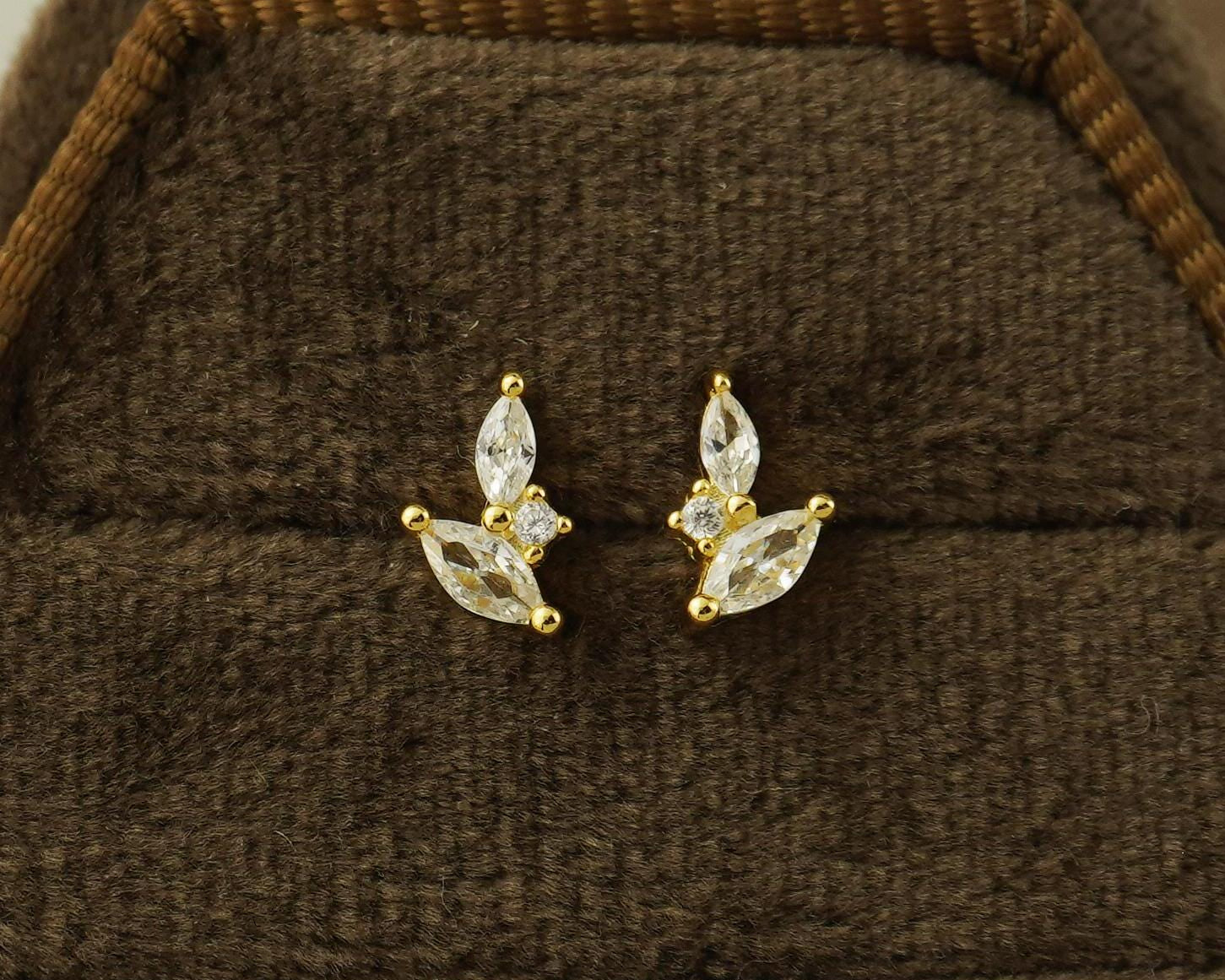 Pair of Marquise CZ Cluster Stud Earrings in Sterling Silver or 18ct Plated Gold, BUTTERFLY BACKS or SCREW BACKS
