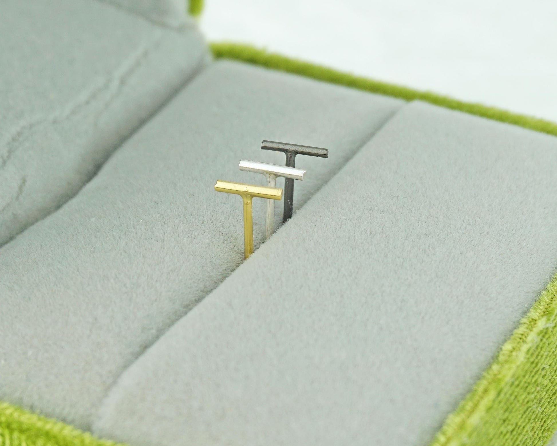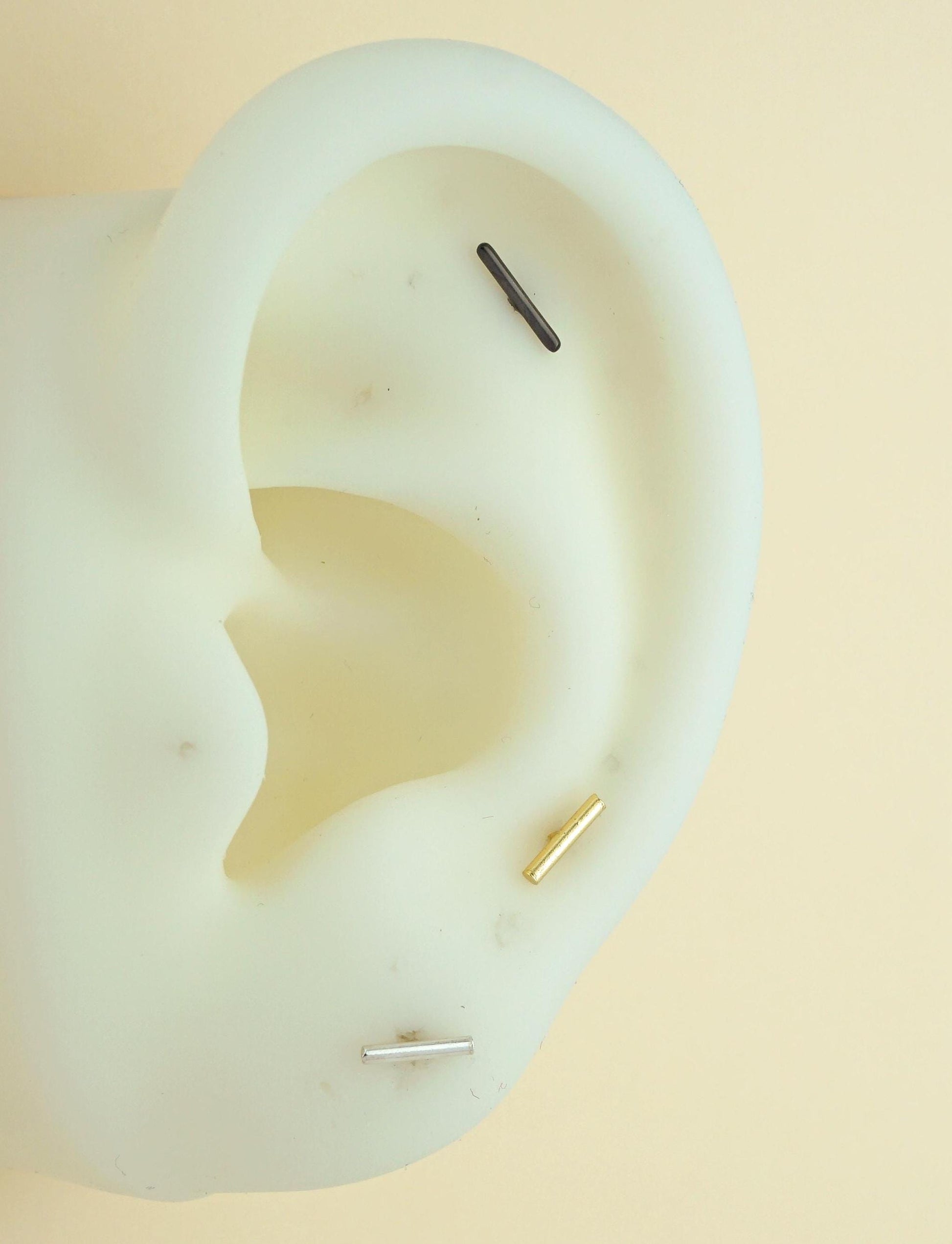 Pair of Skinny Round Bar Stud Earrings in Sterling Silver, 18ct Gold or Black Rhodium Plated