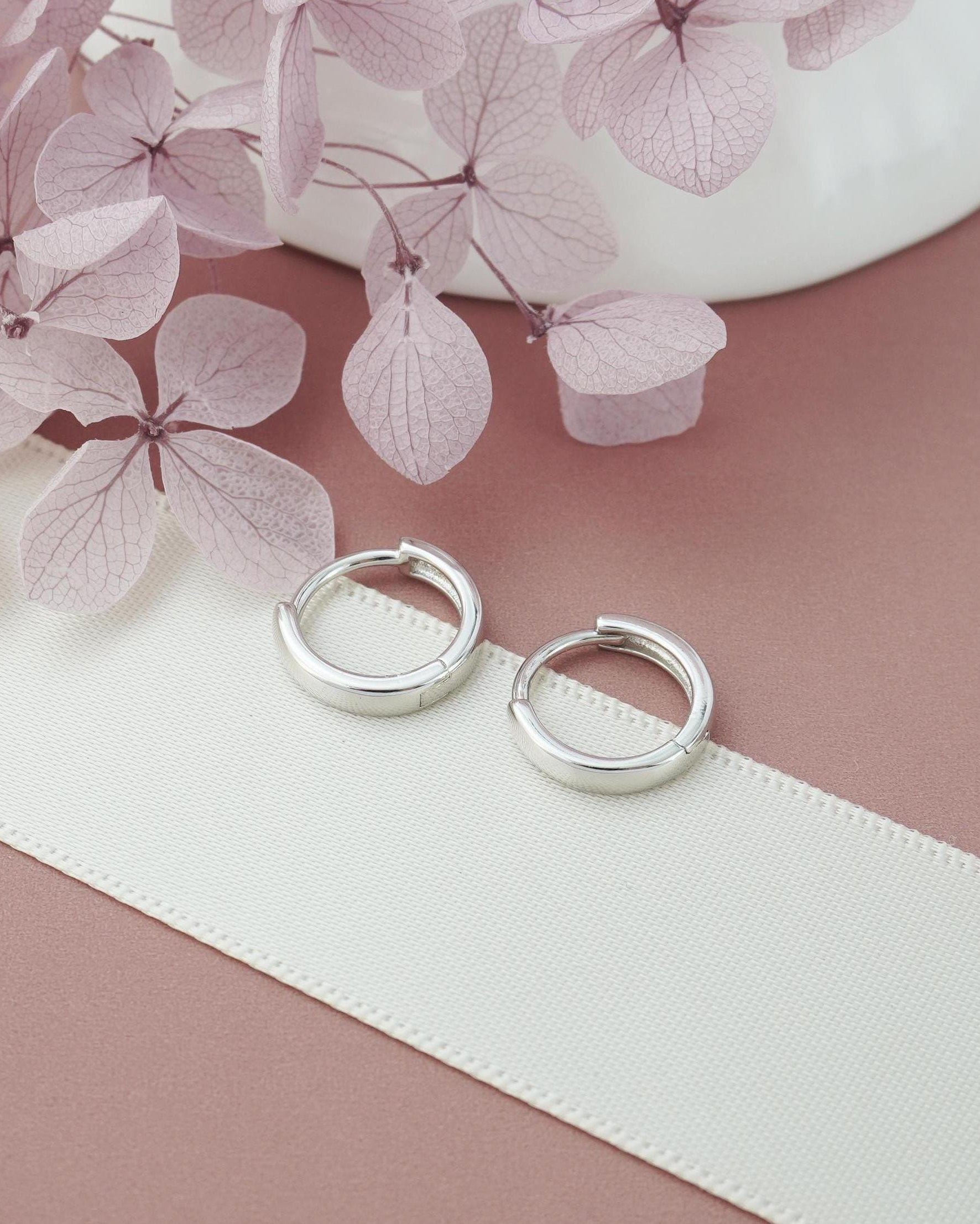Pair of Round Edged Huggie Hoop Earrings in Sterling Silver or 18ct Gold Plated