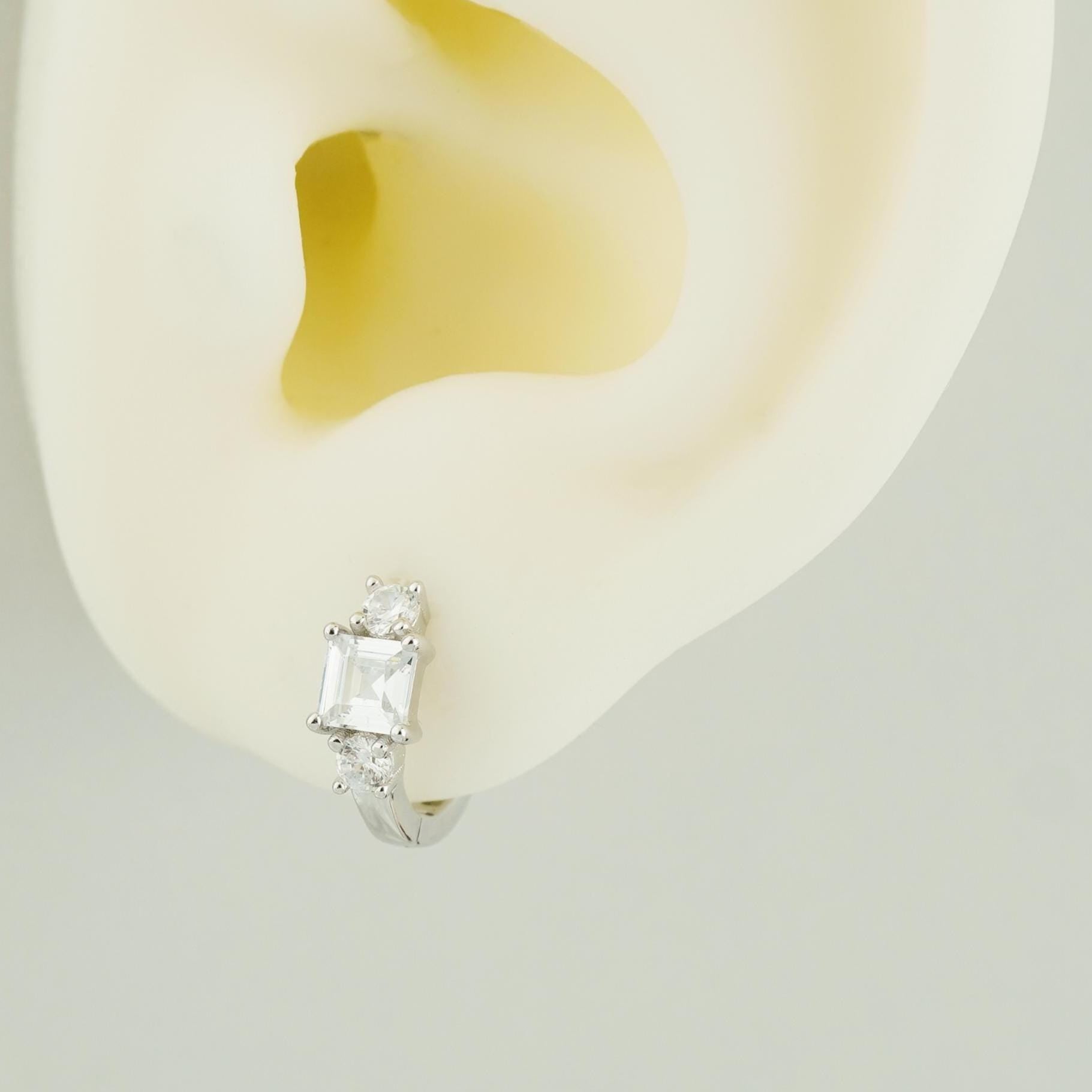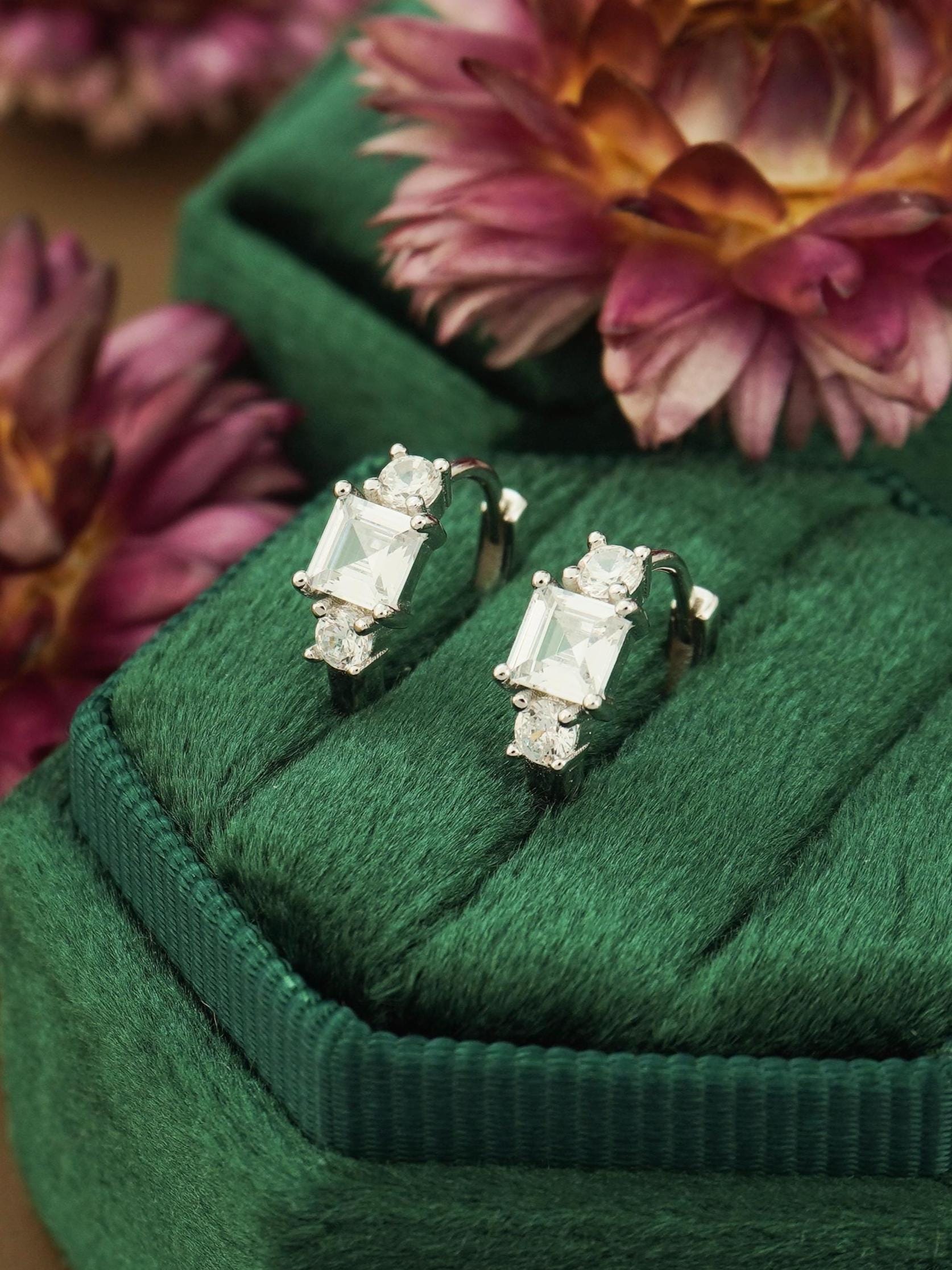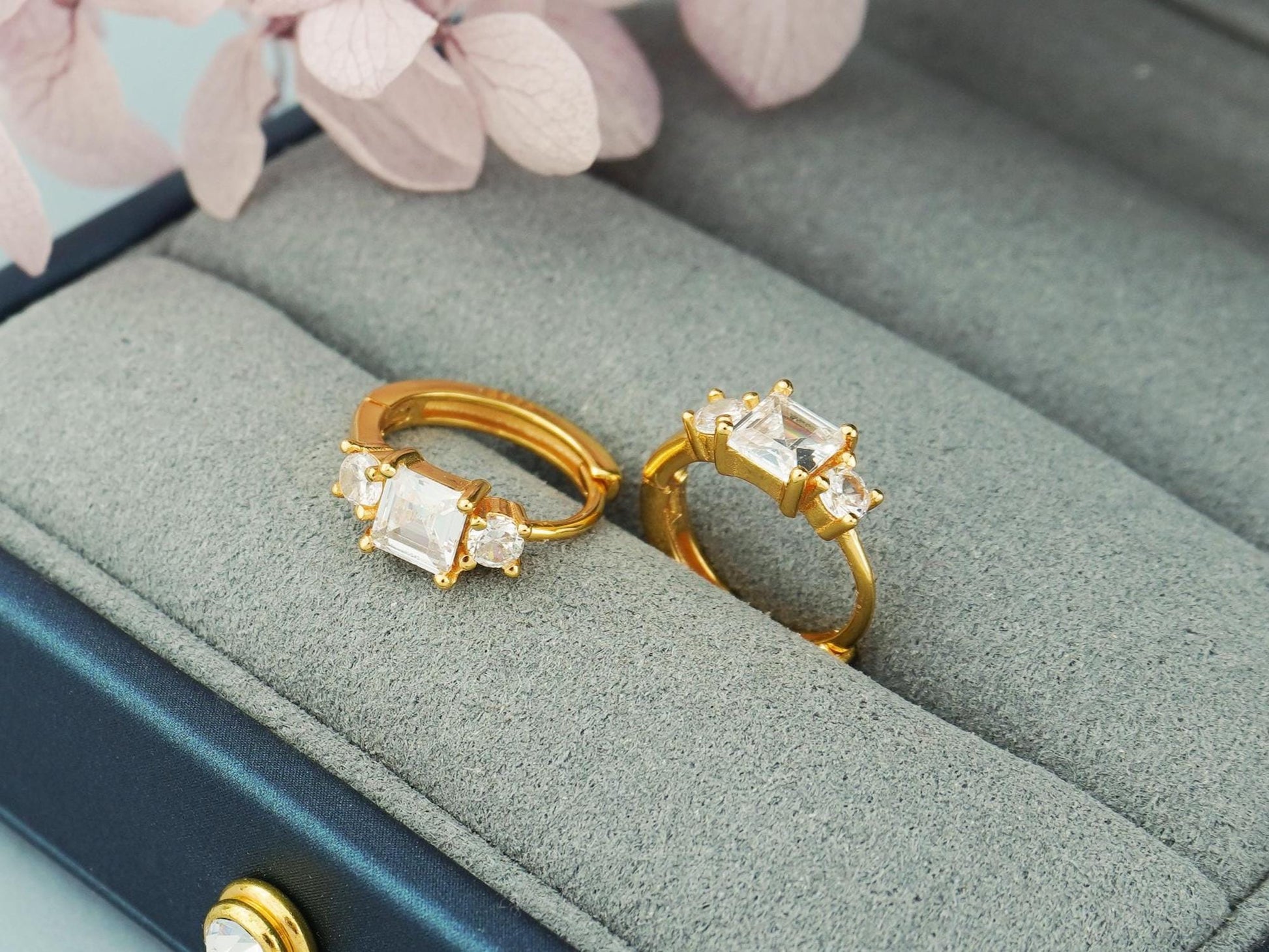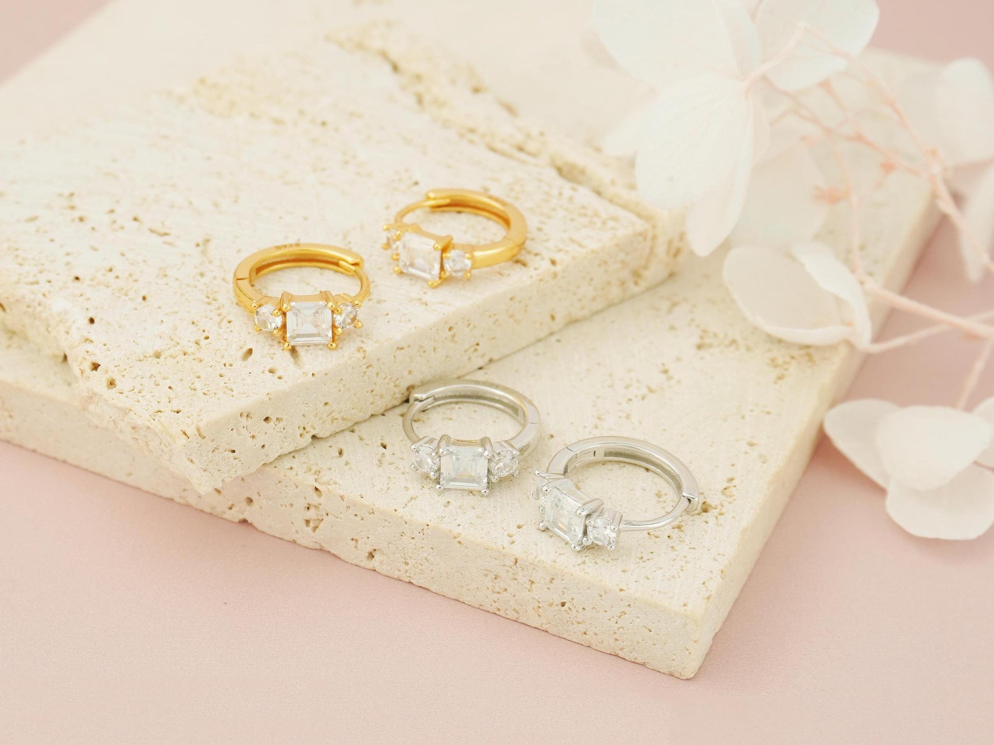 Pair of Square CZ Huggie Hoop Earrings in Sterling Silver or 18k Gold Plated, Elegant Sparkly Princess Cut Design