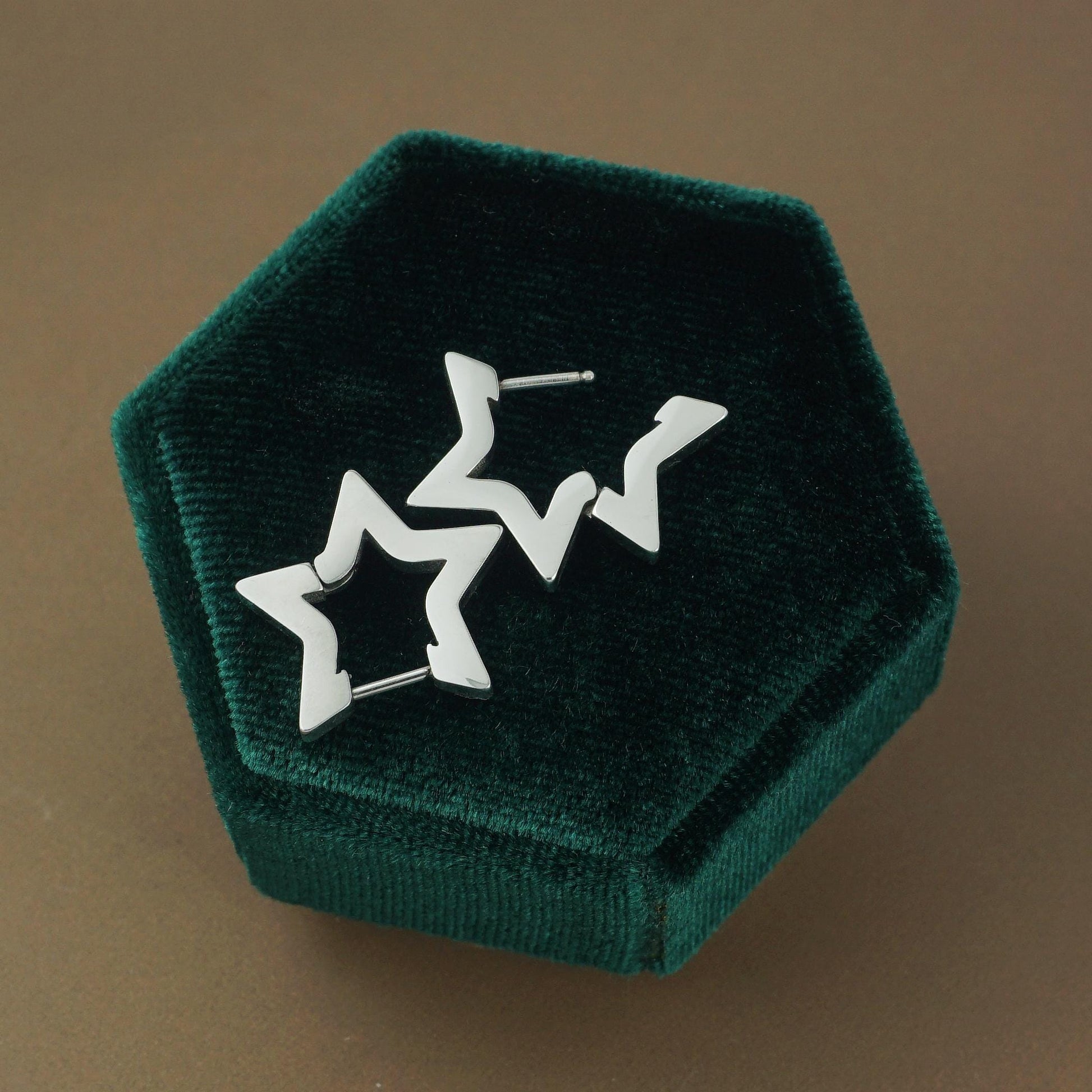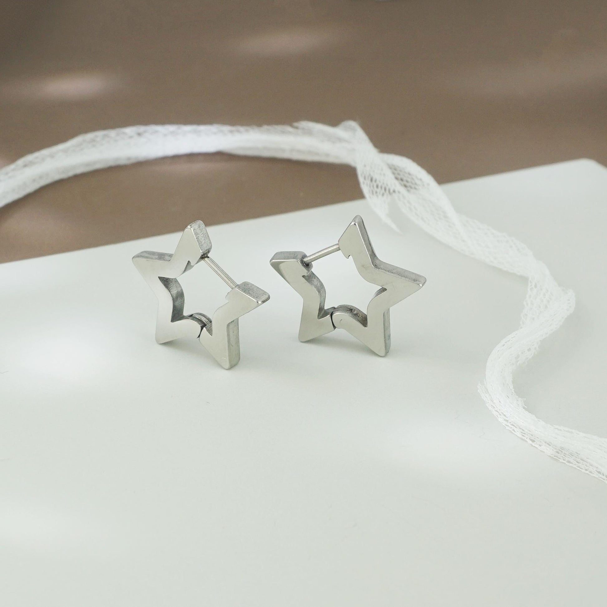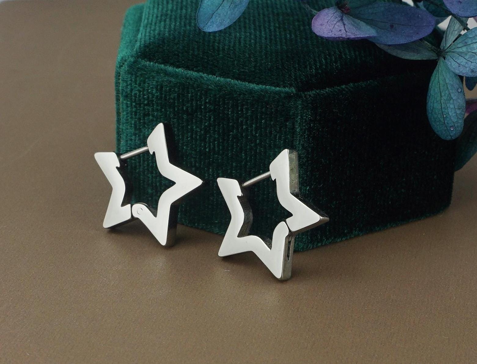 Pair of Star Huggie Hoop Earrings in Stainless Steel, Bold & Thick Statement Ear Jewelry