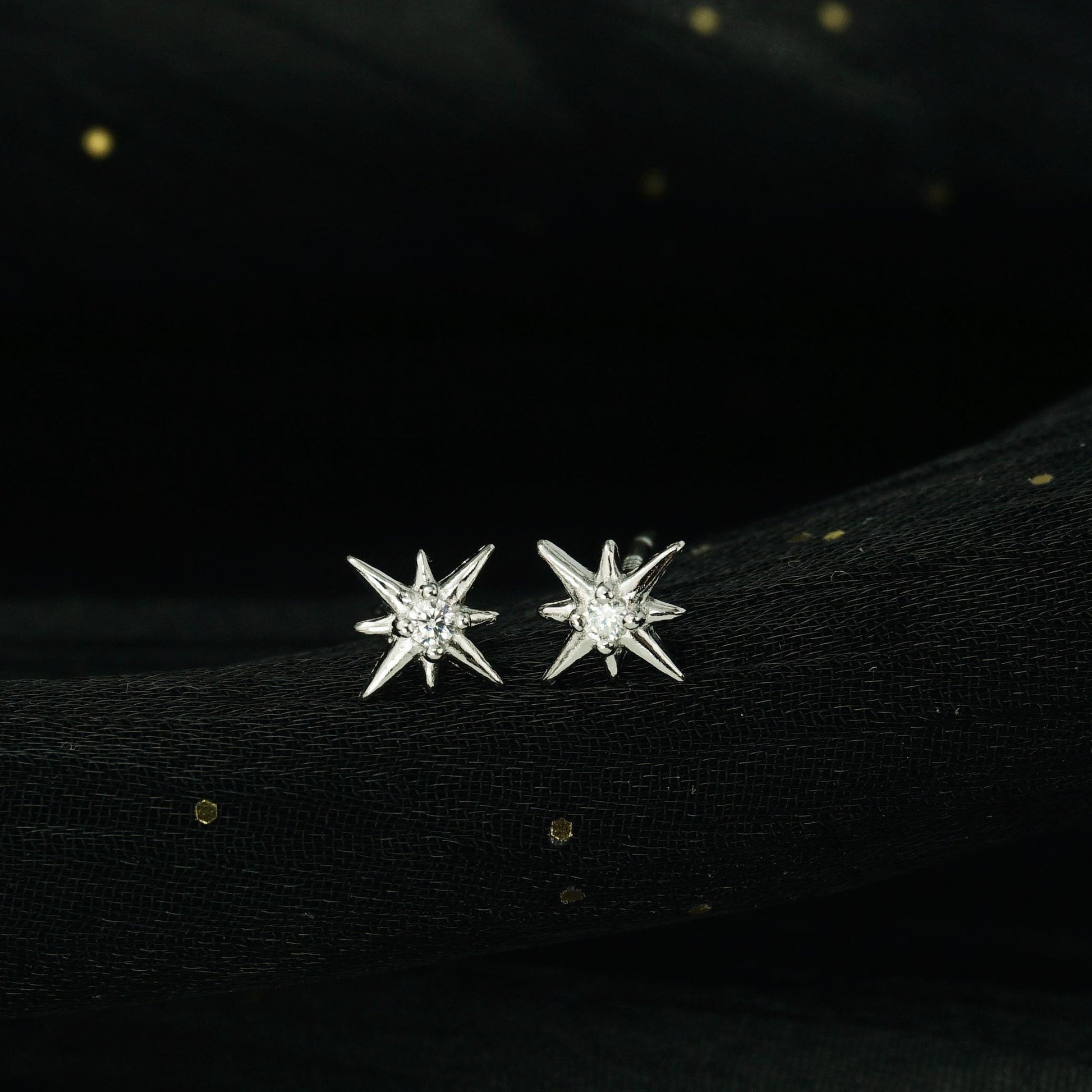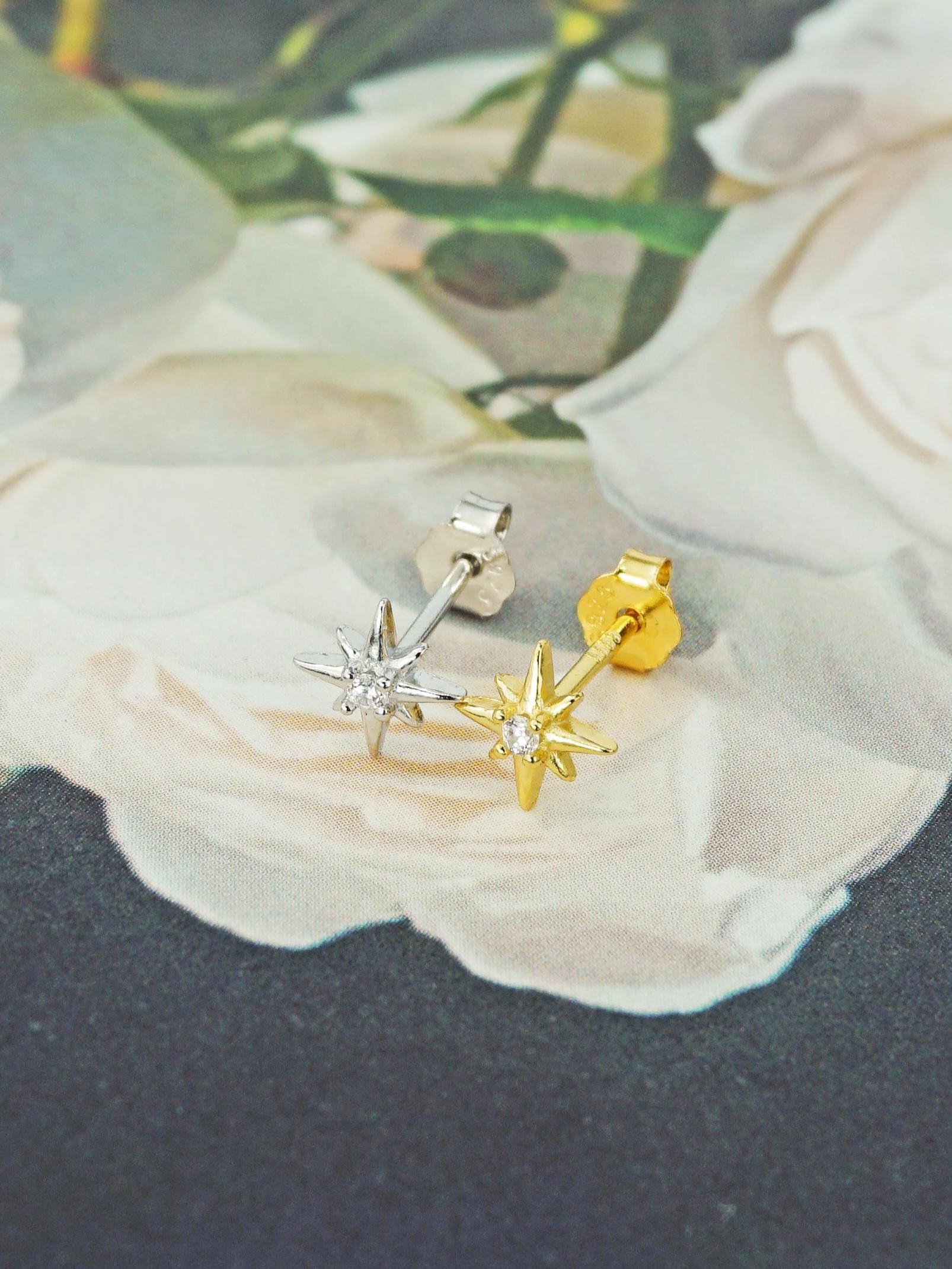 Pair of Starburst Stud Earrings in Sterling Silver or 18ct Plated Gold with CZ Crystal