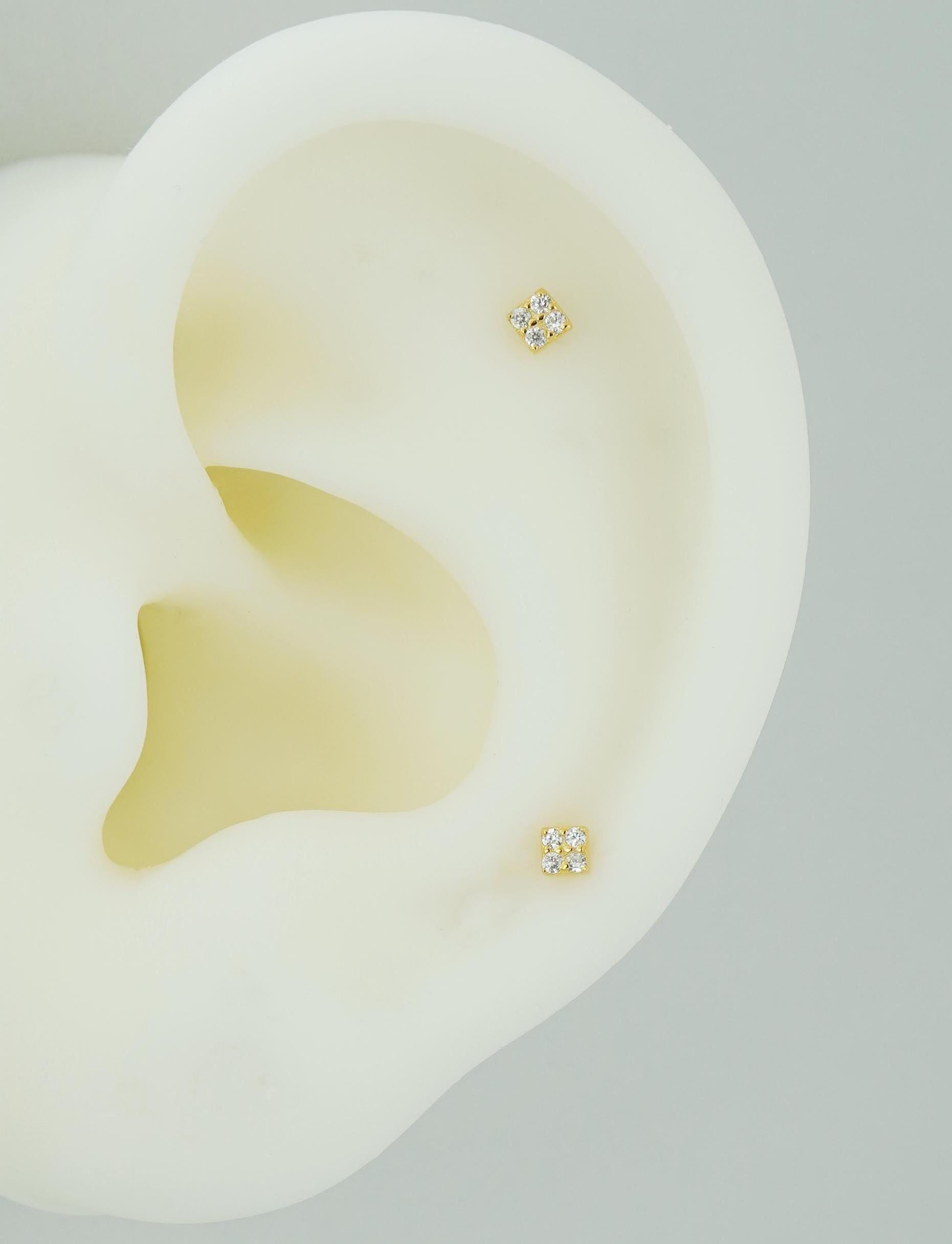 Pair of Sterling Silver Stud Earrings in Rhodium or Gold Plated, VERY TINY Square with Sparkly CZ Crystal Stones