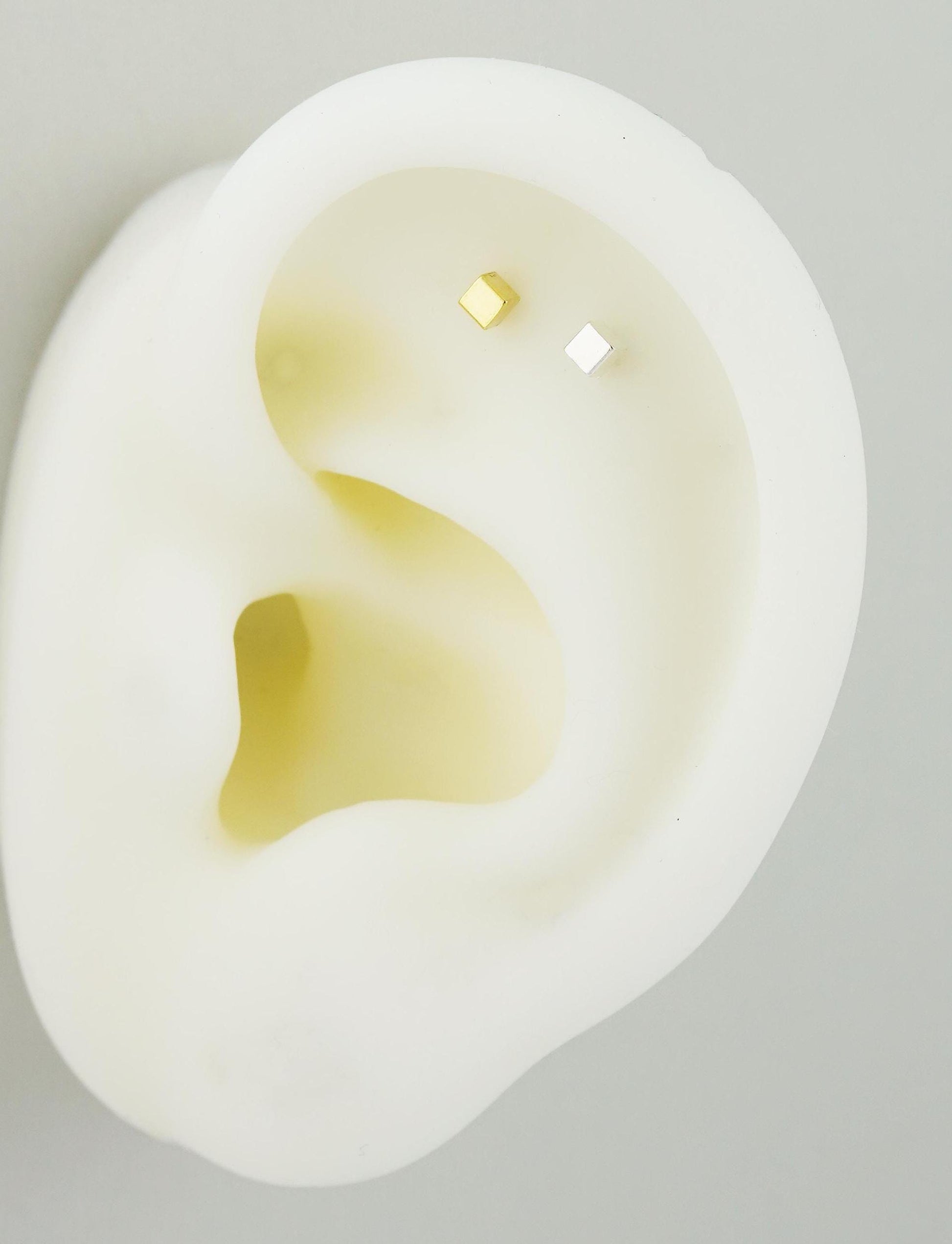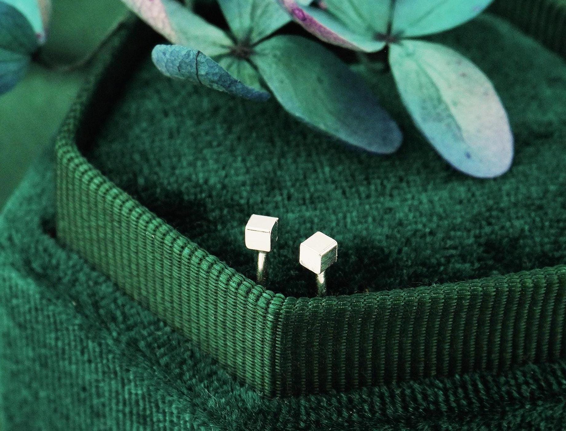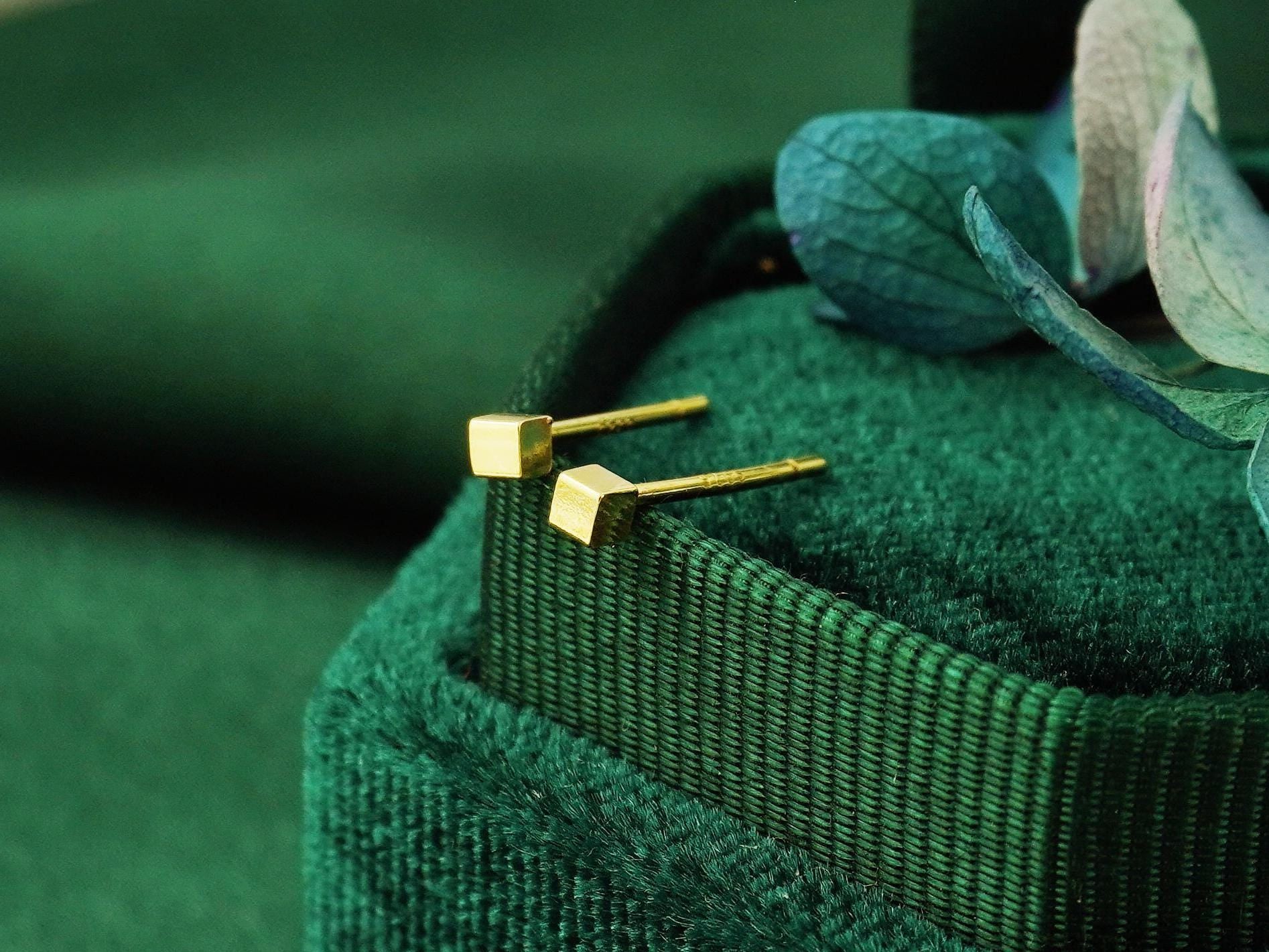 Pair of Tiny 2mm Square Cube Stud Earrings in Sterling Silver or 14ct Gold Plated
