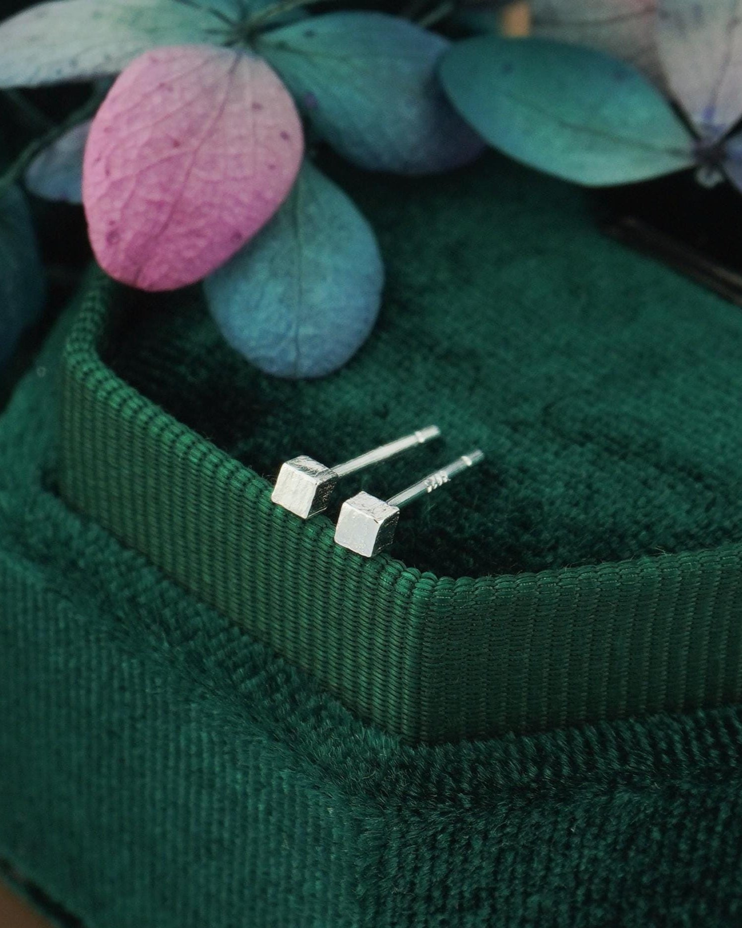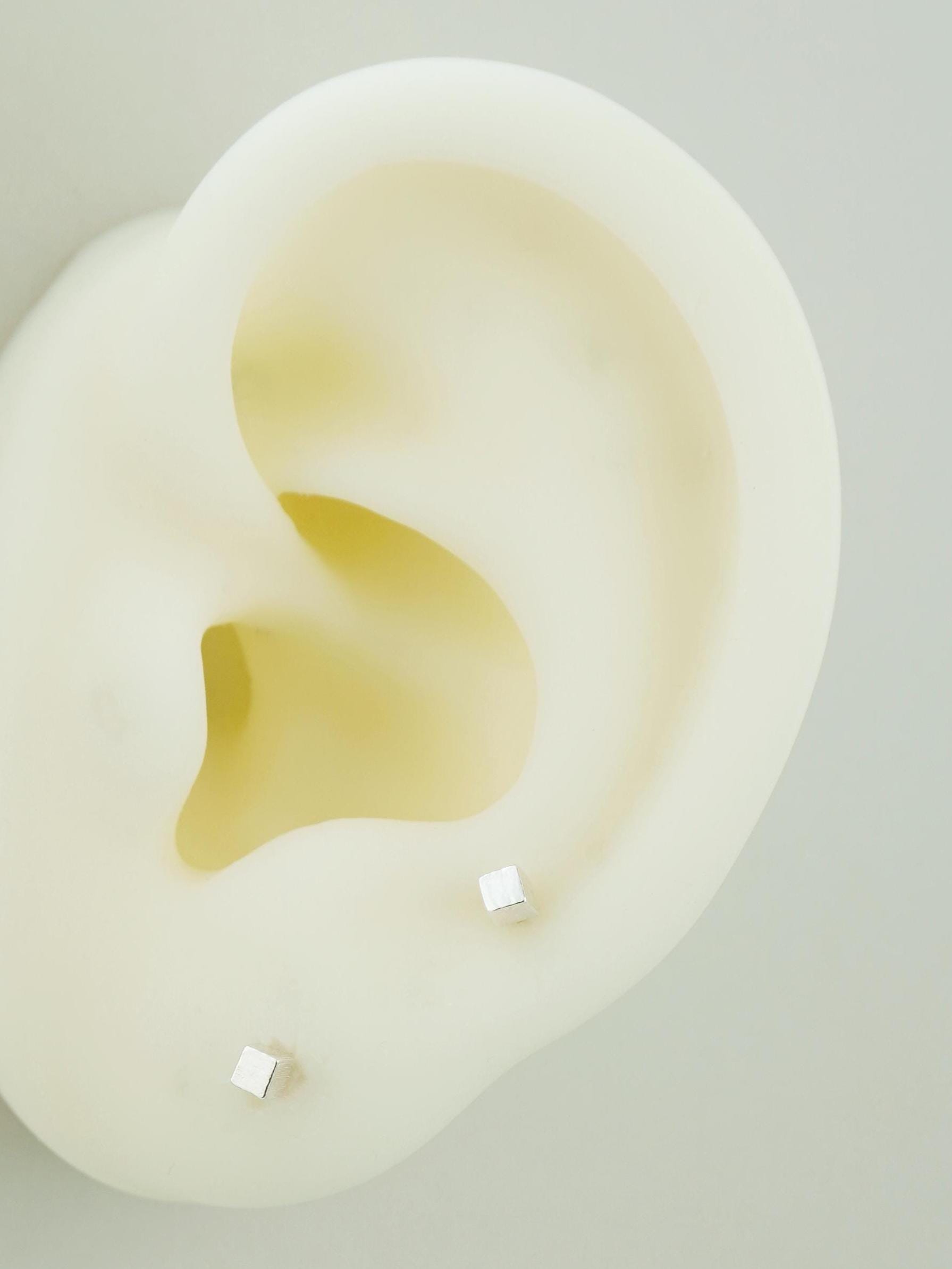 Pair of Tiny 2mm Textured Square Cube Stud Earrings in Silver, Gold or Black, Simple Minimalism Geometric Subtle Ear Stacking Jewelry