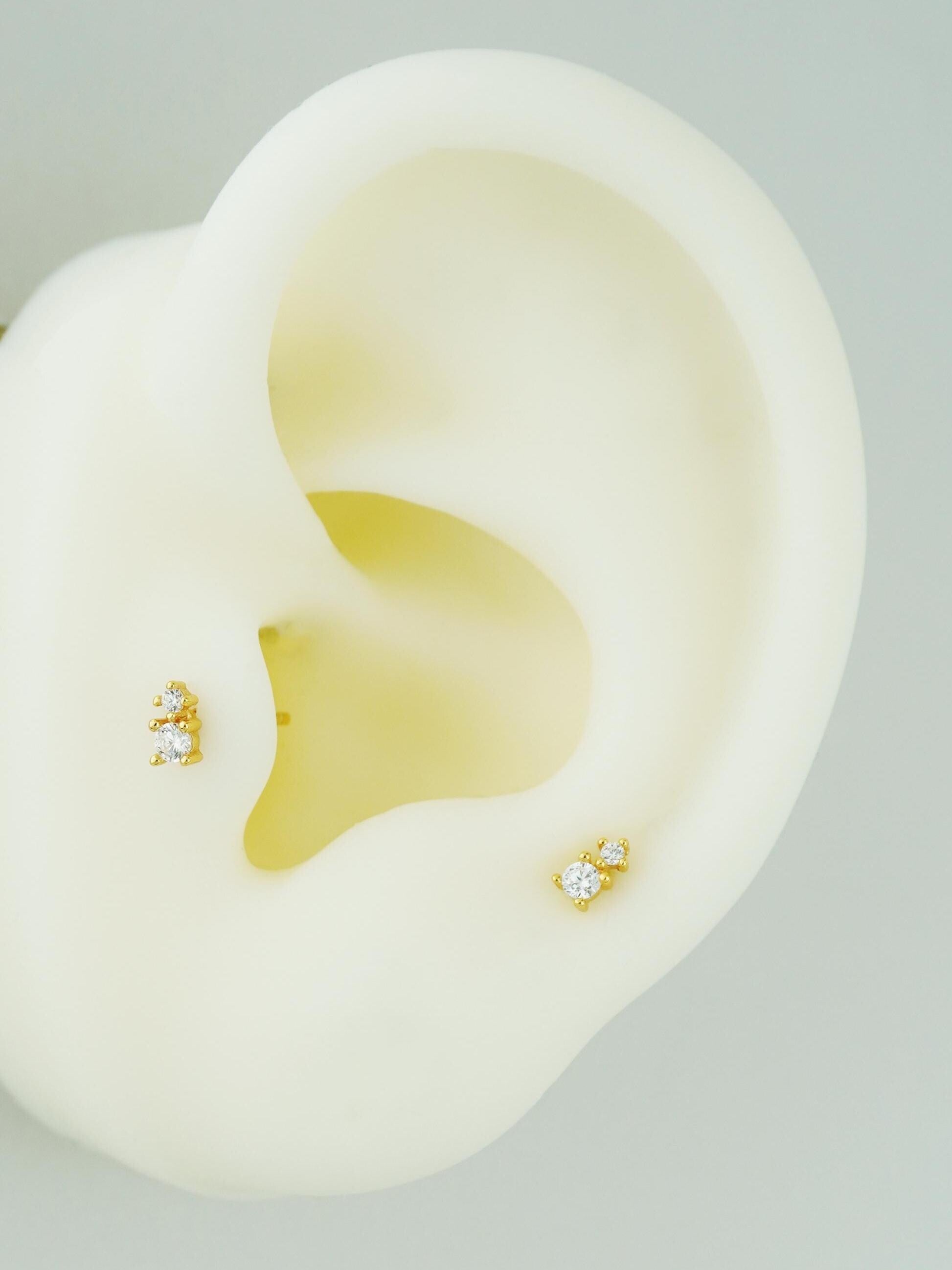 Pair of Tiny CZ Stud Earrings in Sterling Silver or 18ct Plated Gold
