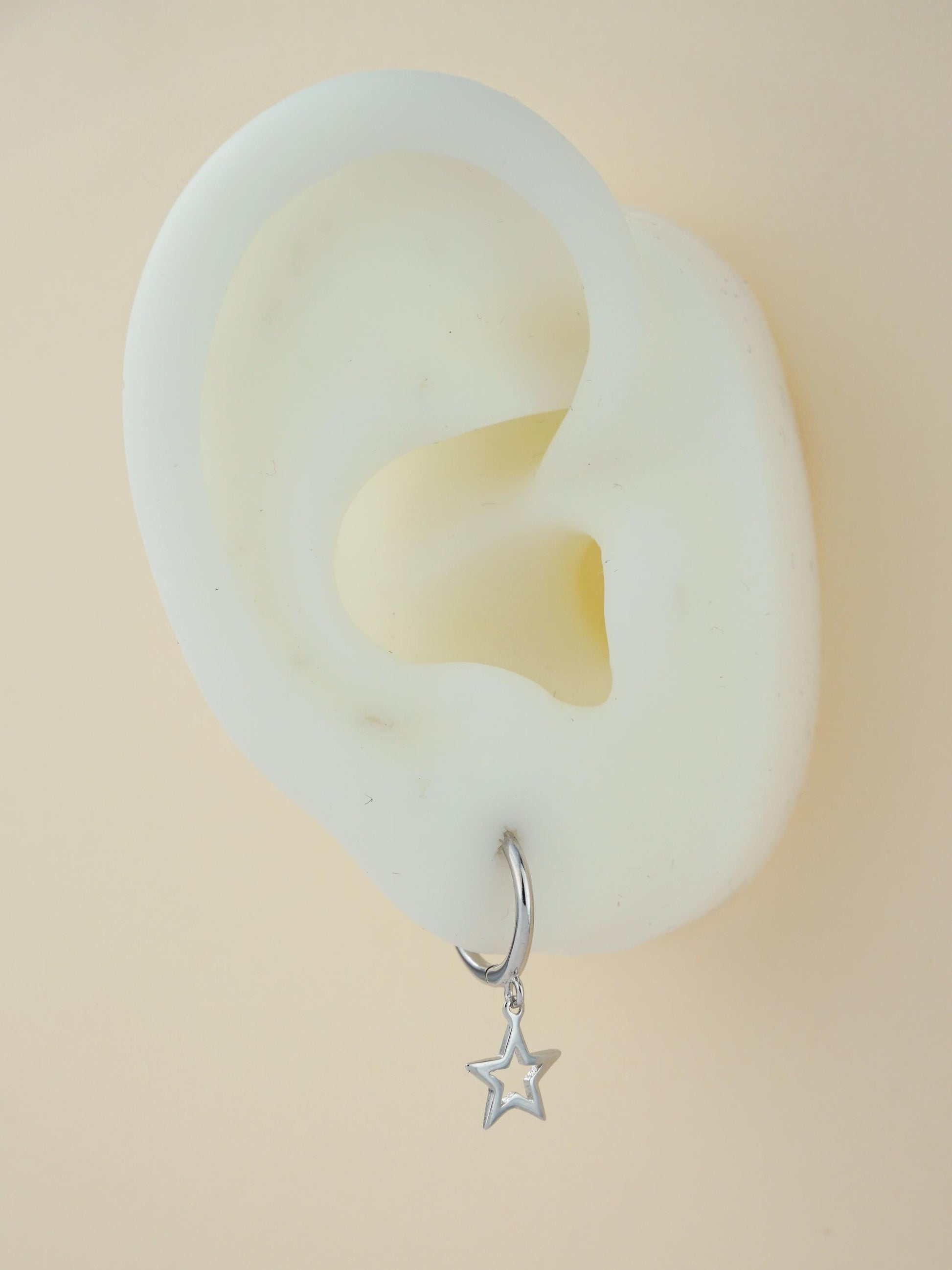 Pair of Dangly Open Star Huggie Hoop Earrings in Sterling Silver or Plated Gold