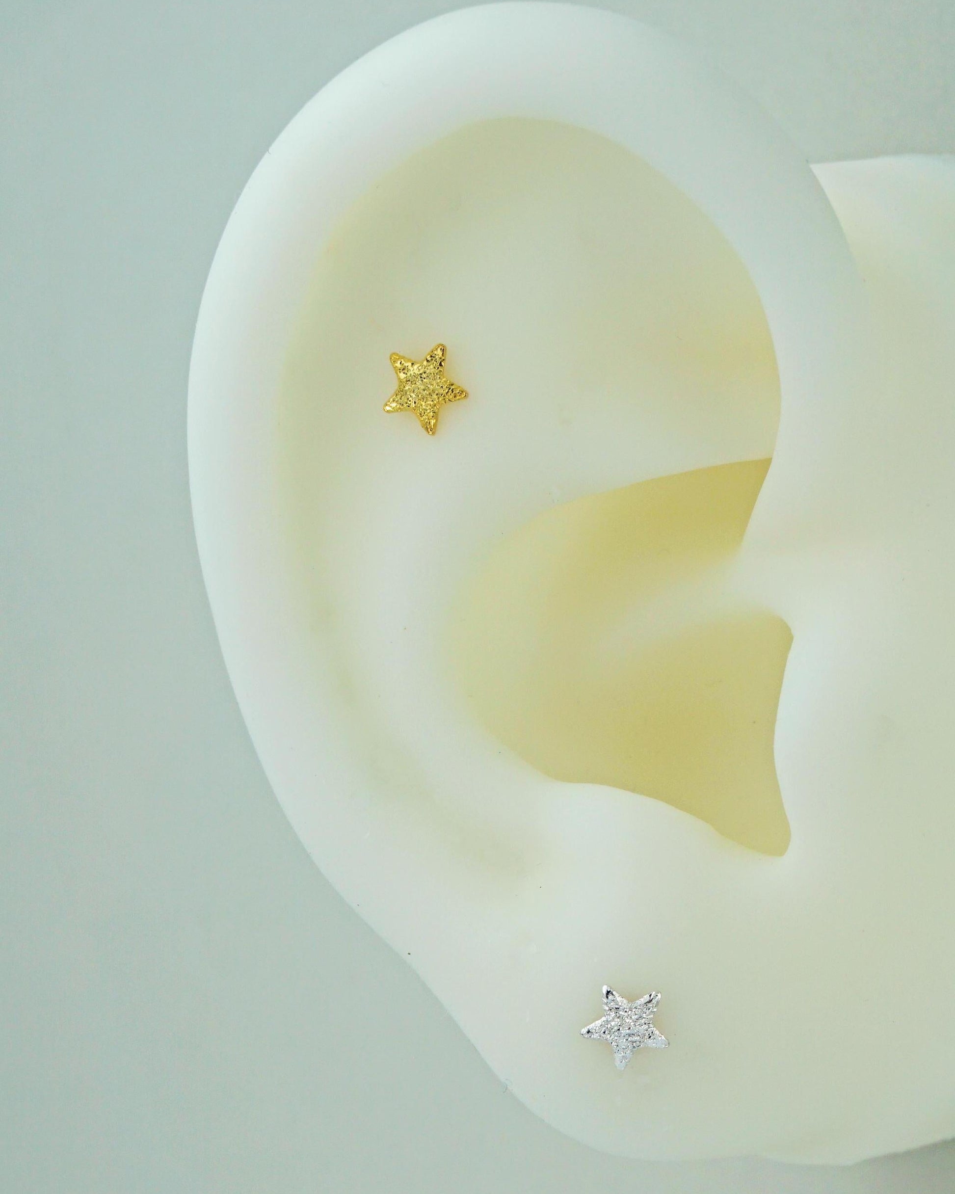 Pair of VERY TINY Frosted Star Stud Earrings in Sterling Silver or 14ct Gold Plated