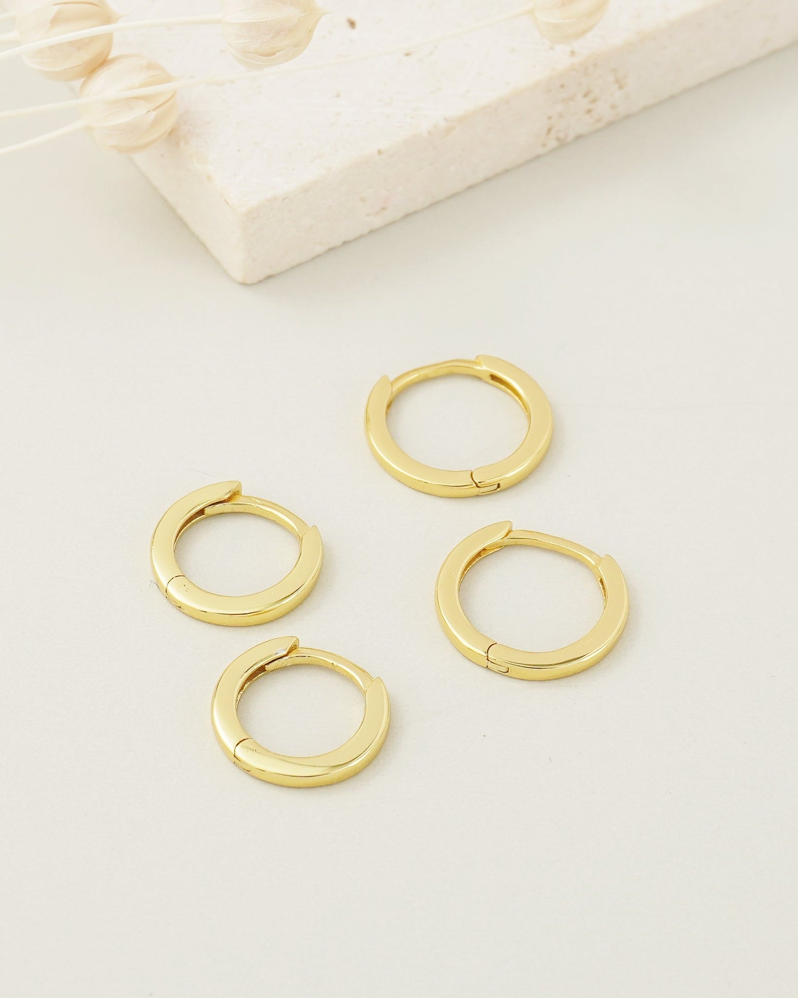 Pair of Skinny Square Edge Sterling Silver Huggie Hoop Earrings in Rhodium or 18ct Gold Plated, 2 Sizes