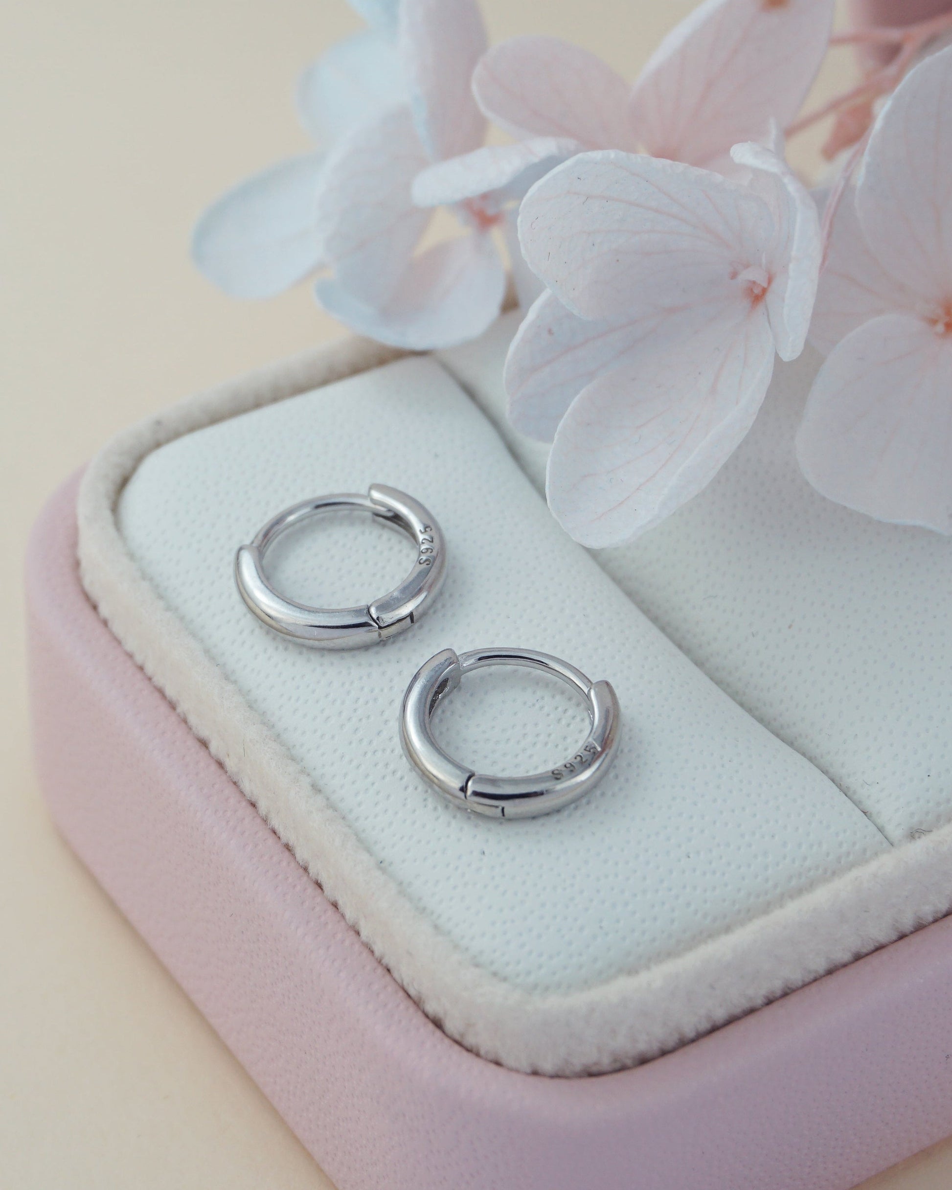 Pair of Tiny Round Edge Sterling Silver Huggie Hoop Earrings in Rhodium or 18ct Gold Plated, 2 Sizes