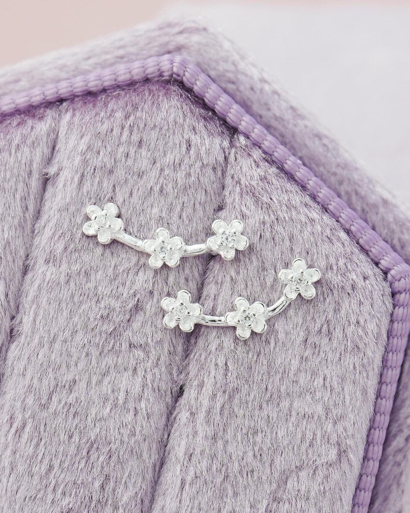 Pair of Tiny Trio Flower Climber Stud Earrings in Sterling Silver with Mini CZ Crystals