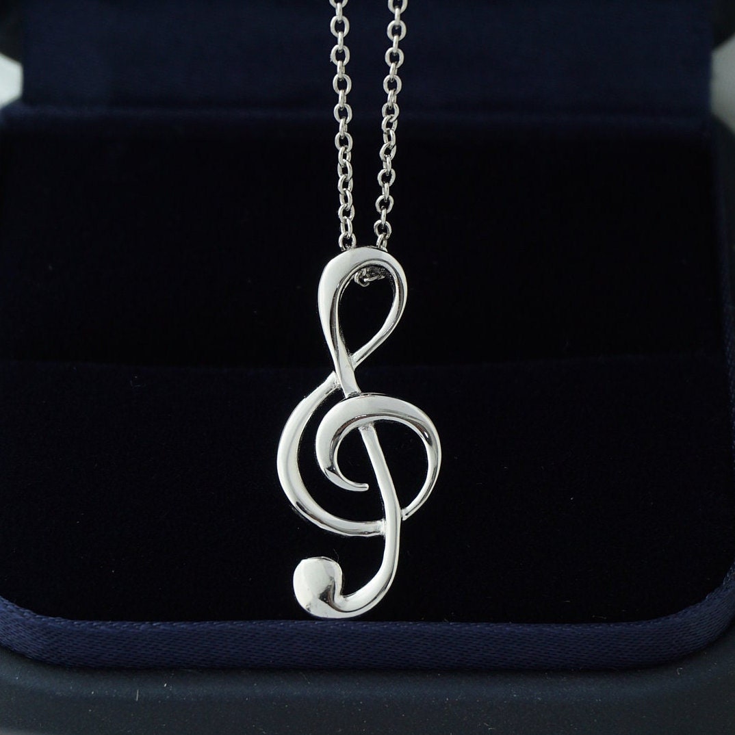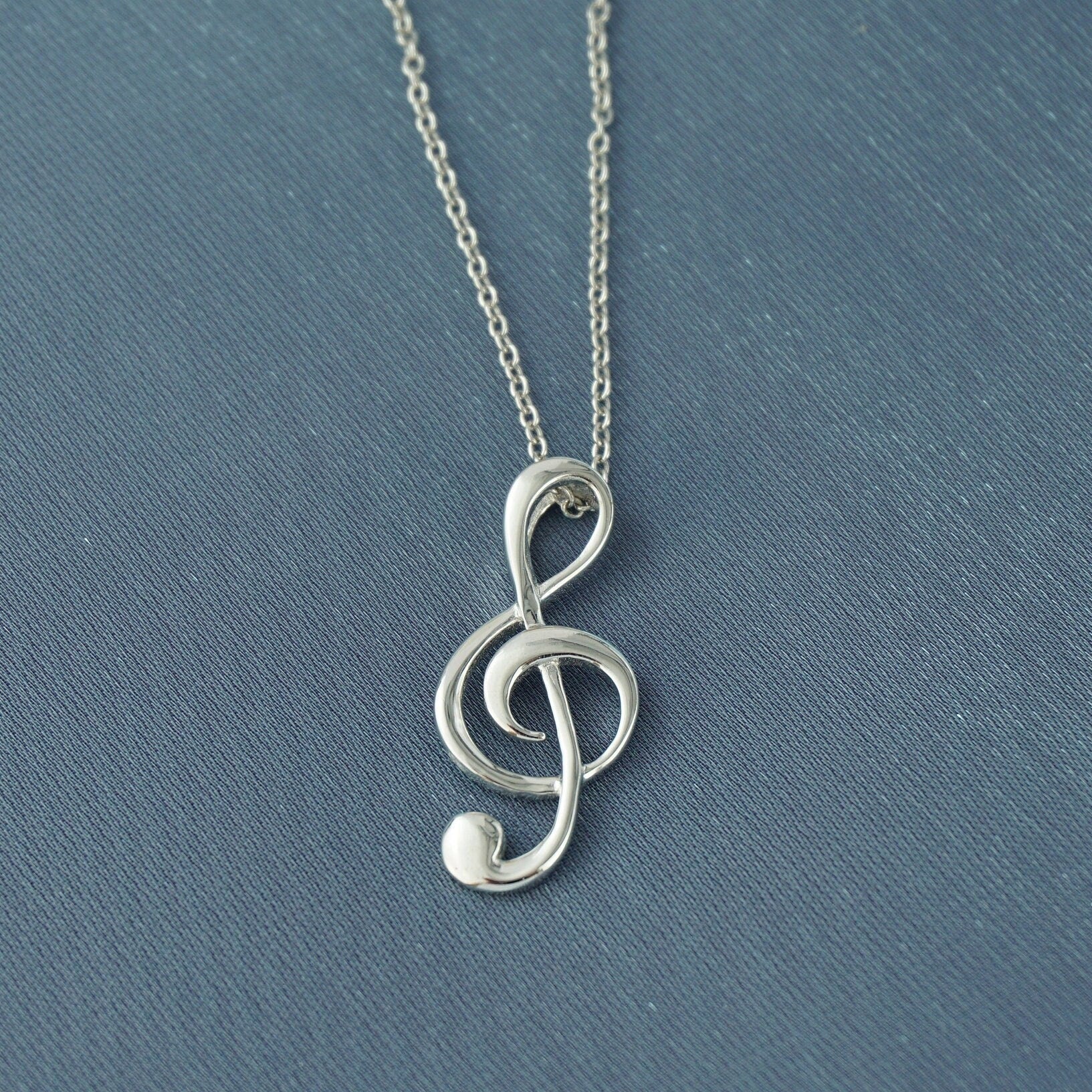 Sterling Silver Musical Note Pendant Necklace with 18 inch Cable or Box Chain, Jewelry Inspired by Treble Clef Music Tone